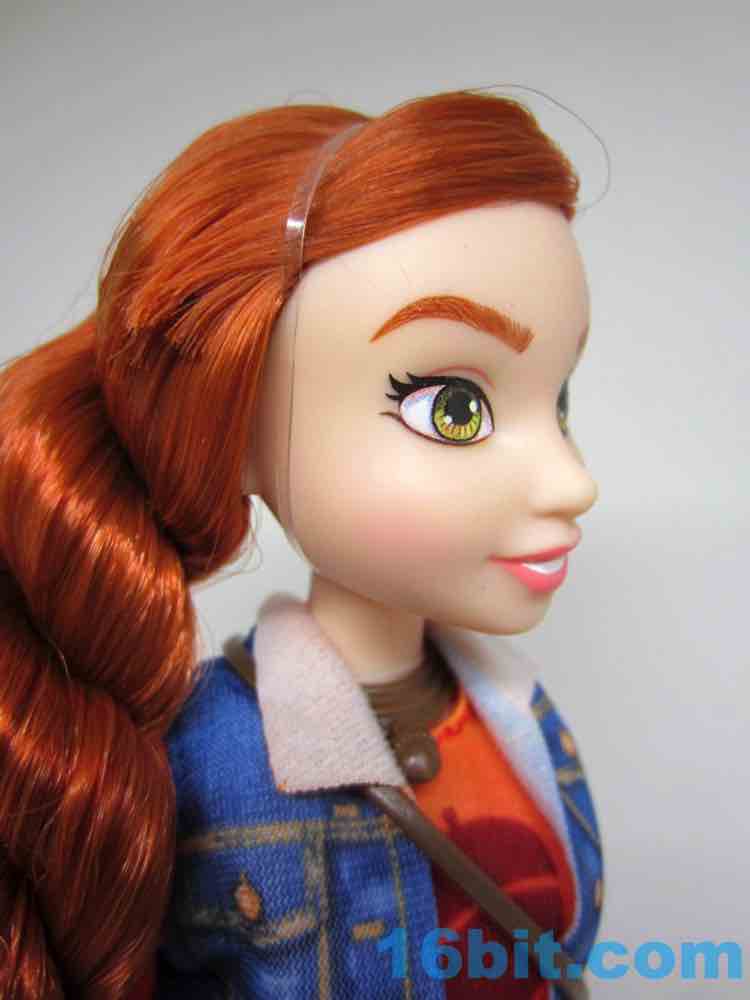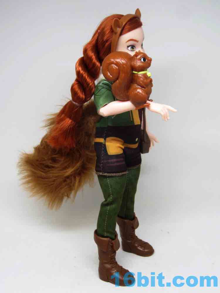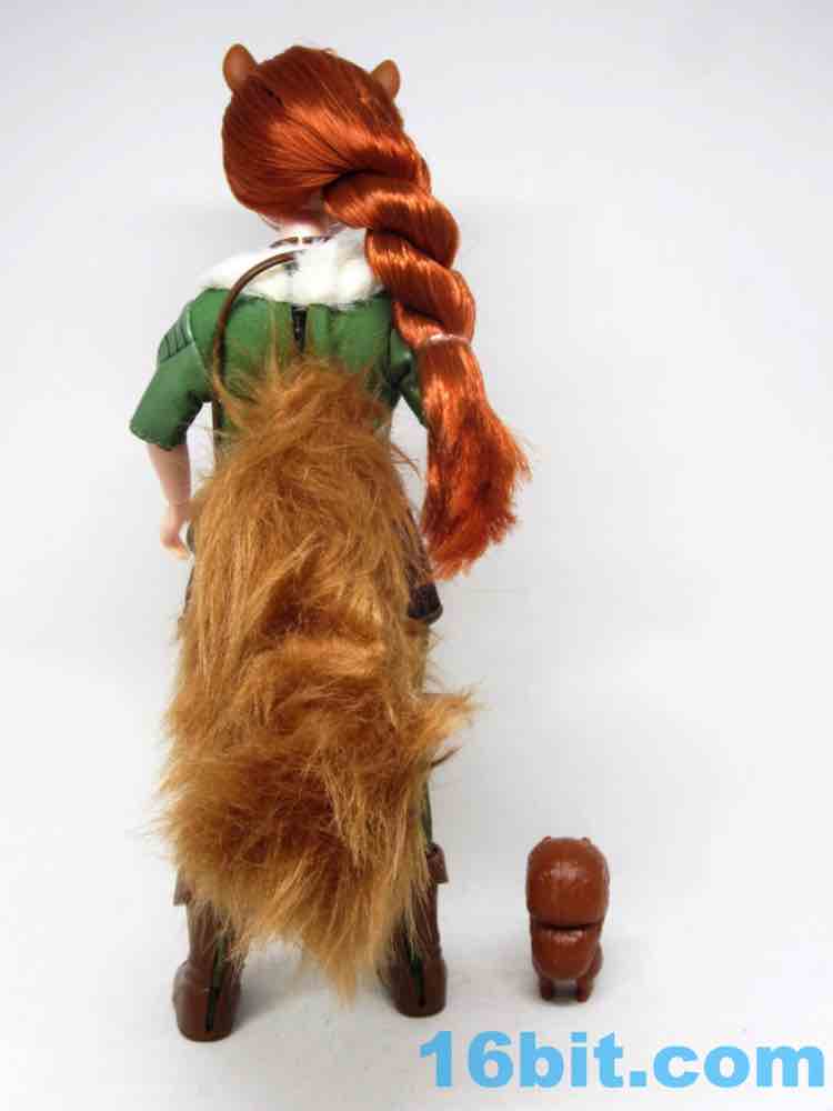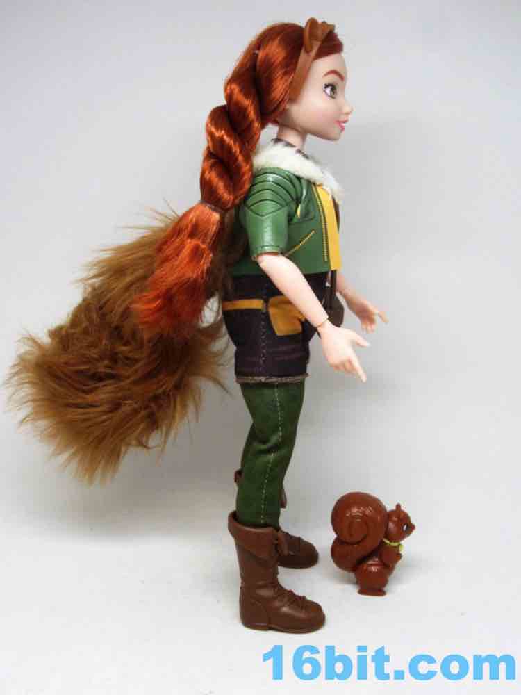 The 10 1/2-inch figure is more or less on the same level as the maligned, but technically proficient, Forces of Destiny adventure figures from Star Wars. You get things like good clothing, ball-jointed elbows, and one of the most notable features on any doll marketed to girls - feet large enough to allow figures to stand unassisted. Fellow men and people who grew up as boys - have you ever played with a Barbie? I had not - but since getting in the toy business, I noticed Barbies couldn't stand on their own, and the same was true of countless other fashion dolls thanks to tiny feet and small shoes. Doreen has sensible, butt-kicking boots that probably would've been the kind of thing you got at an Eddie Bauer when such things traded in camping and adventure gear, thousands of years ago at your mall. The costume is a lot more sensible than most - tights, shorts, boots, a jacket, and ears on a hair band. You could probably make this outfit at home and not get weird looks at the mall. (Well, maybe you'd need to leave the ears and tail at home.) The hair is in a Katniss-esque fishtail, wrapped somewhat tightly, and I fear unwrapping the ties inside because I would never get it back the way it was again. If you've seen me, I can't style my hair - I couldn't get a doll looking right to save my life. Trust me again when I say I've tried.