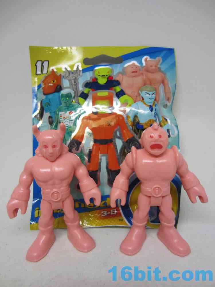 I don't see any names or branding associated with the M.U.S.C.L.E. Men, which are similar to but distinct from the 1980s Buffaloman and Muscleman figures in Mattel's US release of Kinnikuman. These figures make me wonder if Imaginext is done and this is saying goodbye by giving dads and collectors the best series ever. It's a 2-pack of rubbery, non-articulated figures for three bucks. I would buy dozens more.