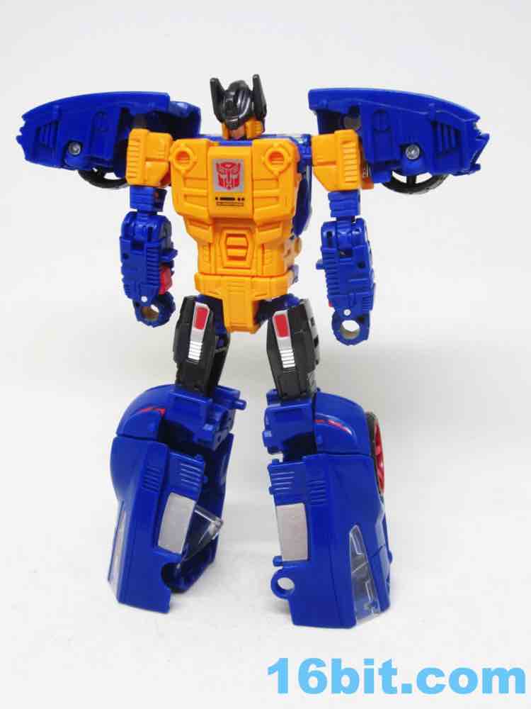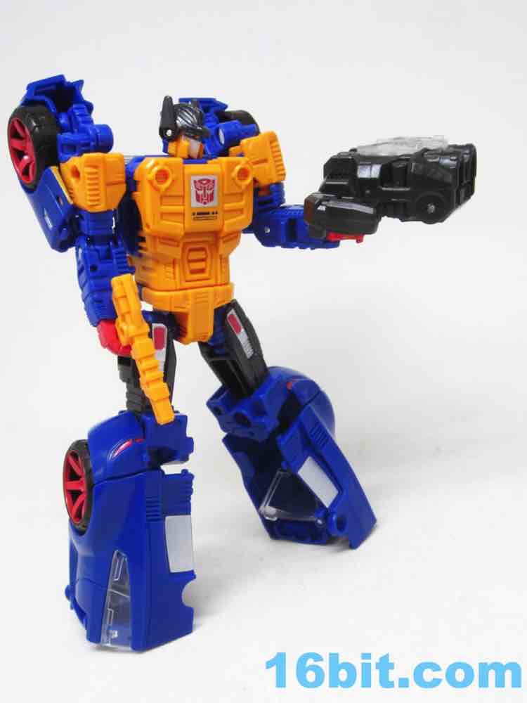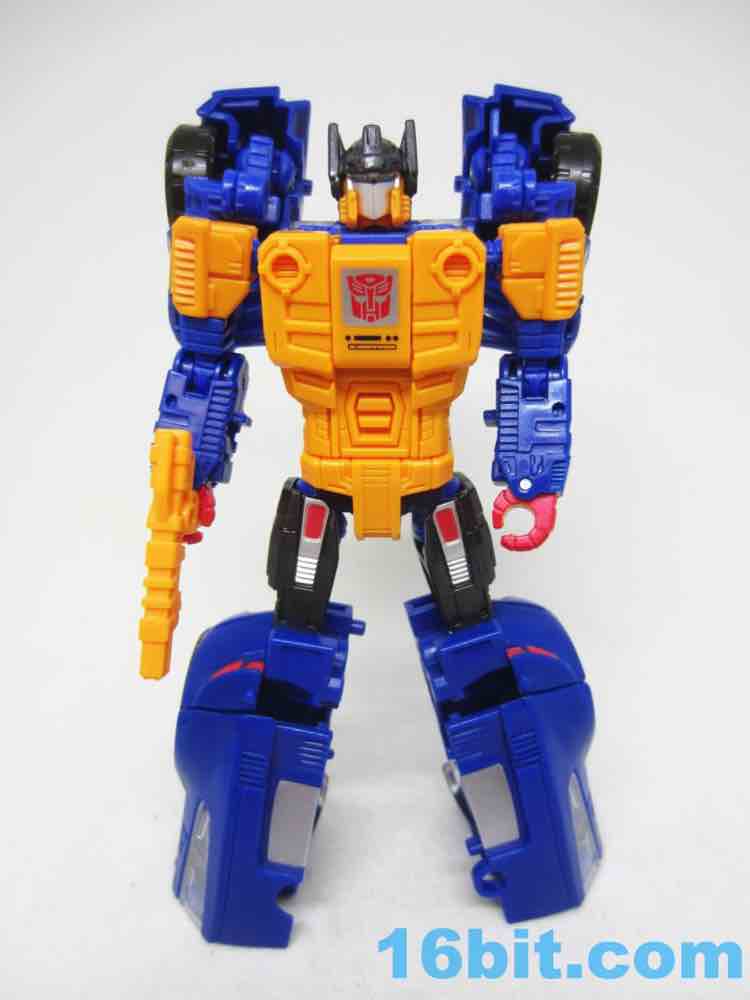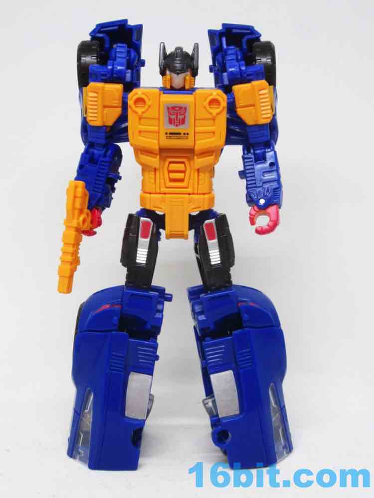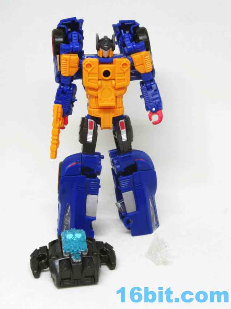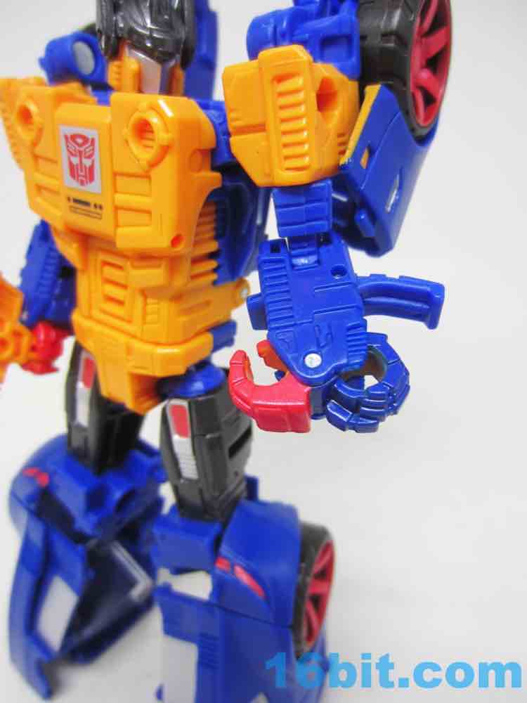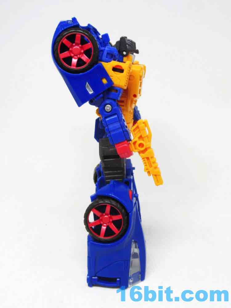 The toy has three modes - the robot is basically the same one flipped over, changing out the helmet position, the fists, and the shoulder pylons. Points to Hasbro and Takara-Tomy for engineering something that gives you a little more bot for your buck.