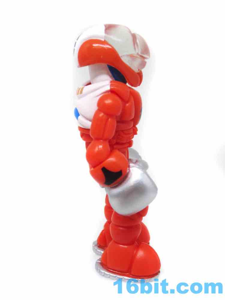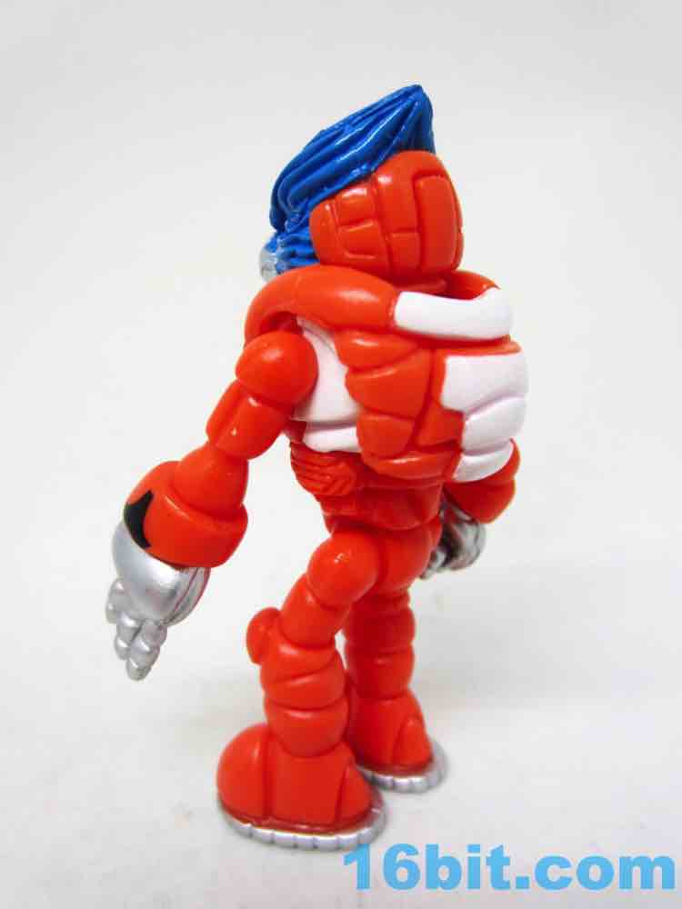 The big "3" of the original Interceptor pilot is now a non-specific symbol that vaguely looks like it might be a letter or a number, but is neither. It's on a white plane flanked by orange helmet sideburns, and the white runs down the back - again, like the original figure. Gold boxes and a blue stripe add to the color, making this a more distinctive-looking figure from behind than the front.