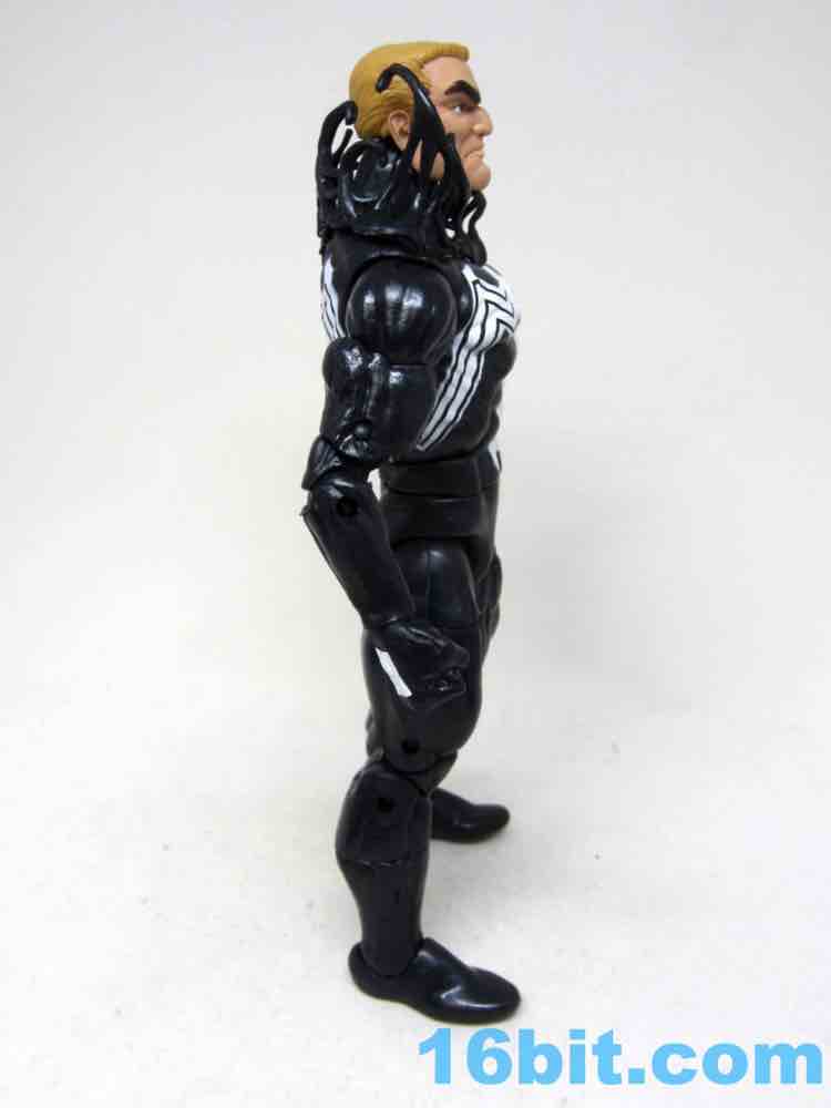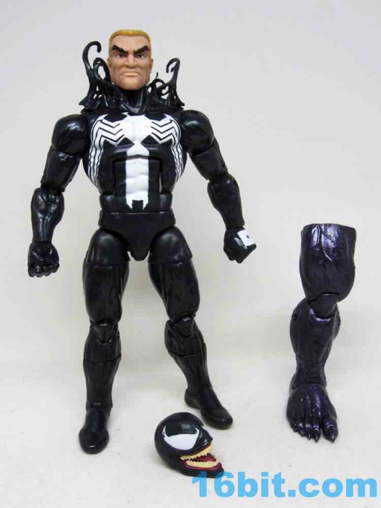 The 6-inch scale action figure is good, big, and a little dated. The big buck doesn't integrate some of the niceties of recent releases - the fists aren't swappable hands, for example. They do bend and swivel, but for fists that may not be as necessary of a feature. It's not like you have big, menacing claws with which to threaten other heroes. The feet are rather formless, smooth extremities with rocker movement so you can set Eddie Brock up for a brawl.