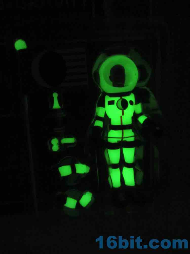 His uniform closely matches Terra Firma and Jack Asteroid, swapping out the Earth for the Moon and orange plastic for glow. The white stripe on Jack's chest is red on Zero's, but other than that they're largely quite similar with accessories adding in glow highlights. It's sharp and clean, with 13 points of articulation. He stands and sits well, but this is one of very few Glyos-compatible figures I've ever owned where I would say that the leg joints are a little loose. Not floppy loose, they're just not as tight as the many dozens - hundreds - of others I've seen over the years.