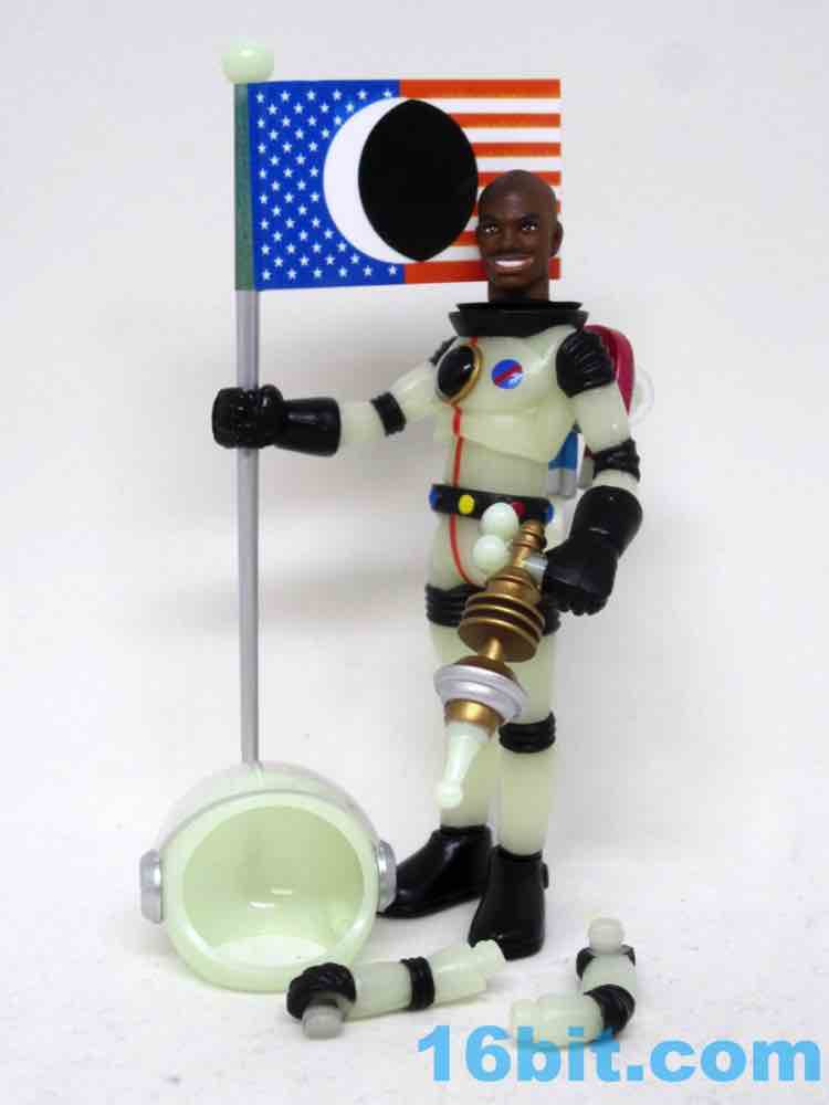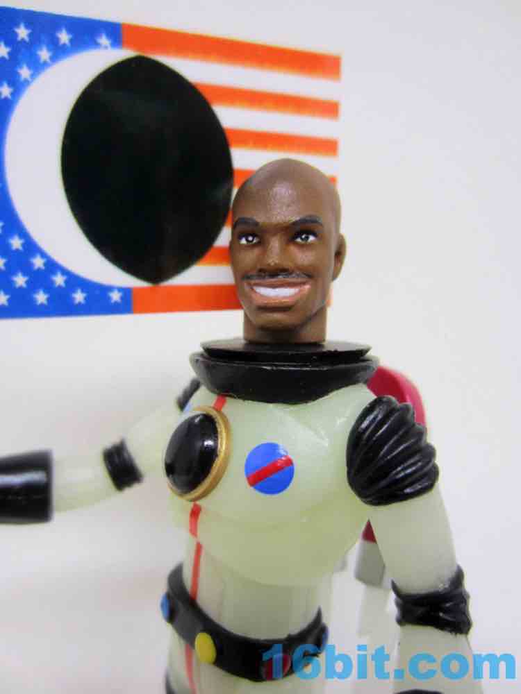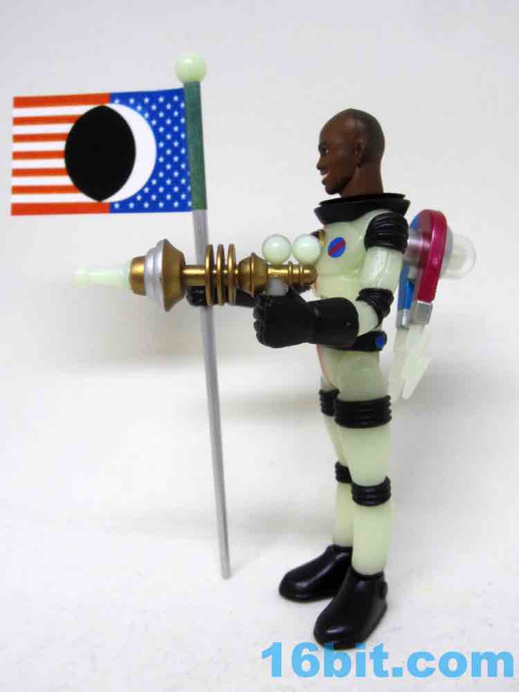 I like this figure - I flinched when I saw a black man from the dark side of the Moon, but his companion Luna Eclipse turned that back a bit. Science fiction has been around forever, but inclusion is still pretty poor and little things like who you cast in a specific role can be tomorrow's term paper or criticism. In this case, I think it was a good choice - he glows in the dark. He's the best human male in space. The figure itself does not offer a lot new compared to figures you've already possibly purchased, but the head gives you a new character and the space motif of the moon on a US flag really appeals to me. If you are buying any of these, add this to your next order. I'm hoping to see more humans in the sci-fi space race here - I've nagged people involved with the line about Soviet or Chinese adventurers with appropriate costumes, too.