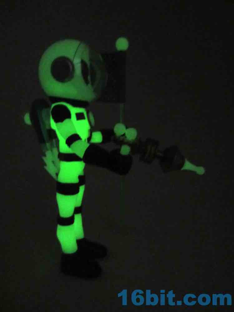 Item No.: n/a Manufacturer:The Outer Space Men Includes:3-part helmet, backpack, flag, Levity gun, alternate arms Action Feature:Pops apart, glows in the dark Retail:$30.00 Availability: ca. June 2018 - Five Points Festival Debut Other: Surprisingly Detailed Head