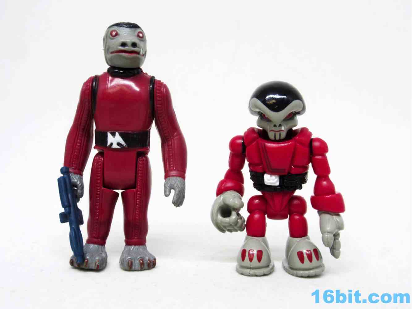 The color matching is impeccable as usual, except for the change in the belt buckle. The red shoulder rings are here, the short "hair" remains present as do the distinctive eye coloring, and the unpainted flap of Kenner's figure is represented here with a couple of deco lines.