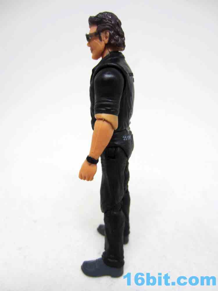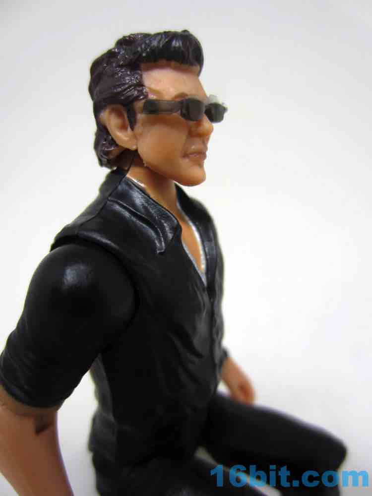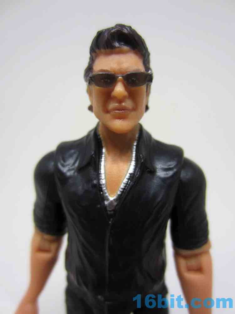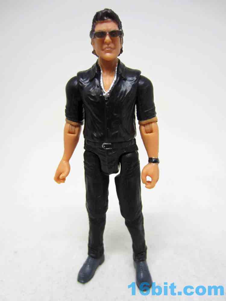 With clear smoky glasses, this figure has a pretty tip-top likeness. Mattel's sculptors did a wonderful job, and their painters applied enough detail to bring him to life. The rollde-up shorter sleeves without the blazer are a departure from the original Kenner toy, and it makes this figure al ittle more different than just shrinking down the same one we got 25 years ago. He lacks the character's ring from the costume, but the necklace and watch and pretty much everything else is there. While mostly wearing black, the figure has light grey shoes and a tiny bit of silver on the belt. I'd like to go into more detail, but it's a pretty good figure. The only thing I see missing seems to be the shirt pocket, which I would completely miss unless I was scrutinizing it for the review.