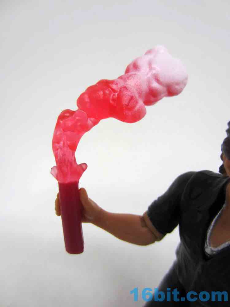 His flare is clear red plastic with white "smoke" paint as well as opaque red on the handle. The compy is a small, green death lizard with a tail that was designed to wrap around a human limb. I don't think I could ask for much more here.