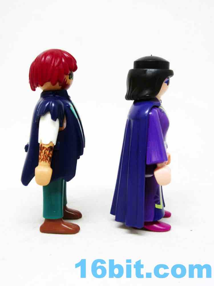 Each 3-inch figure is compatible with virtually every Playmobil toy for the past four decades. The traditional witch costume is strangely timeless, so she could fit in almost any theme you have. She can hang out in a castle, an arctic dinosaur dig, the old west, you name it. The wolfman seems very pre-20th-century. I don't think this figure could work in a modern theme unless it's Ren Faire. Get this set if you like creeps and spooks and the like.