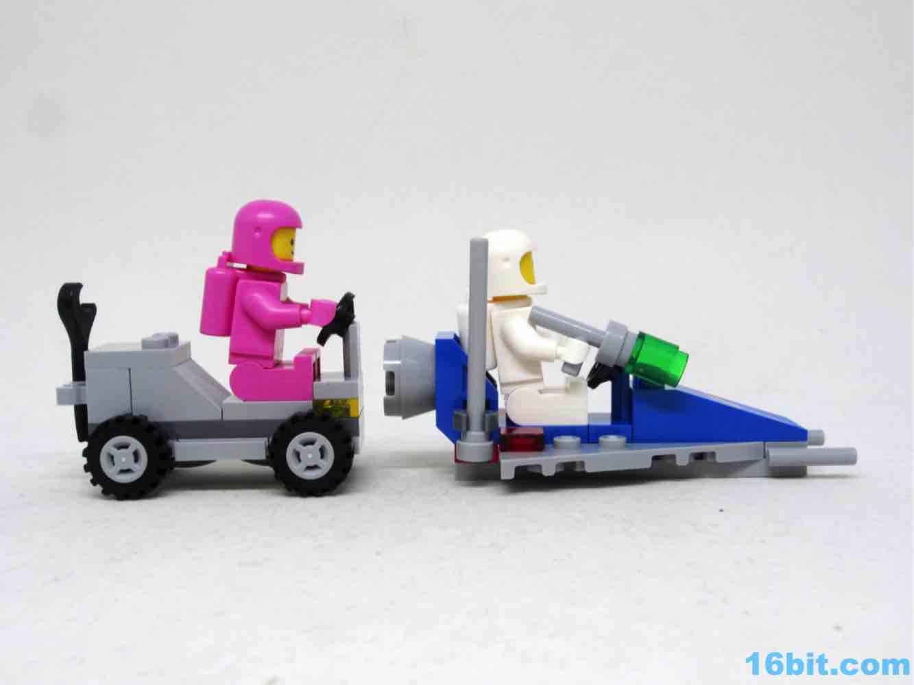 Also nifty is a small Lunar Rover. This is also new, but you've potentially seen a lot of grey rovers just like it. Back in the day we didn't get rounded disc pieces on the bottom of the wings or plates, so that's a new entry here. Some had gas tanks on the front, or big bulbous wheels, or claw arms, or other gizmos. This one has two clips on the back for accessories, standard tires, a step on the sides, and some clear square lights - which seemed pretty uncommon in the early 1980s. It's another cool, quasi-new, vaguely old vehicle that you would have lost your mind if LEGO sold it to you in a polybag for five bucks.
