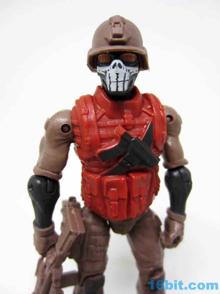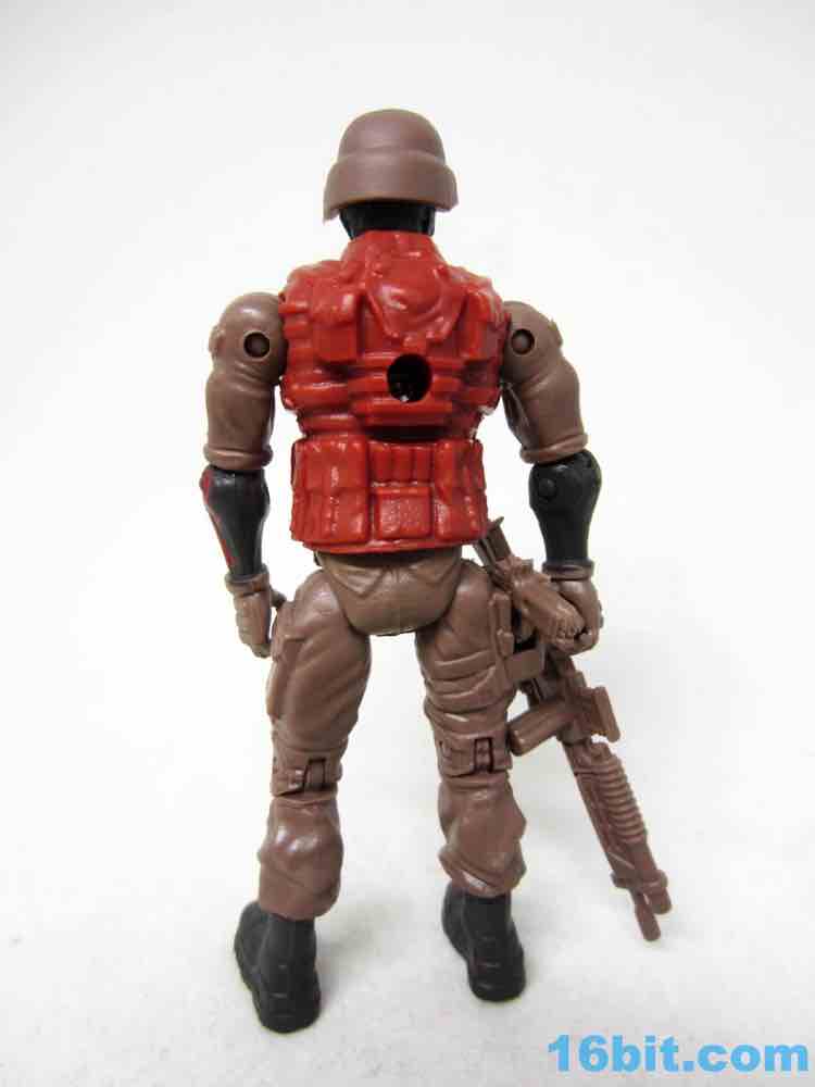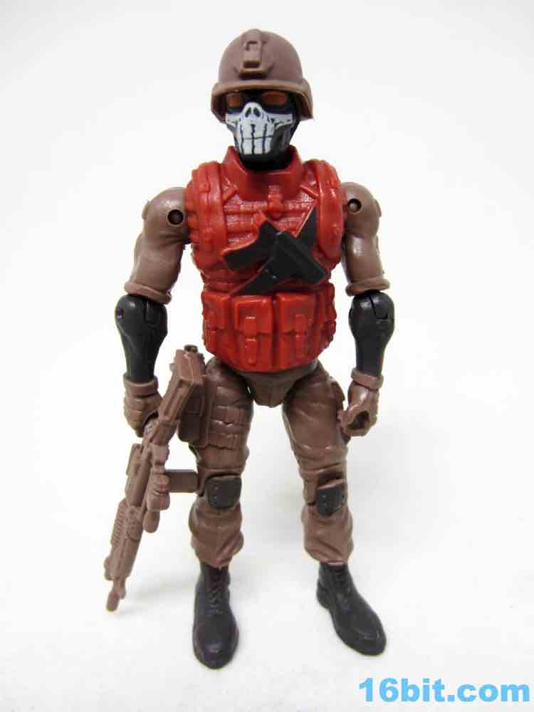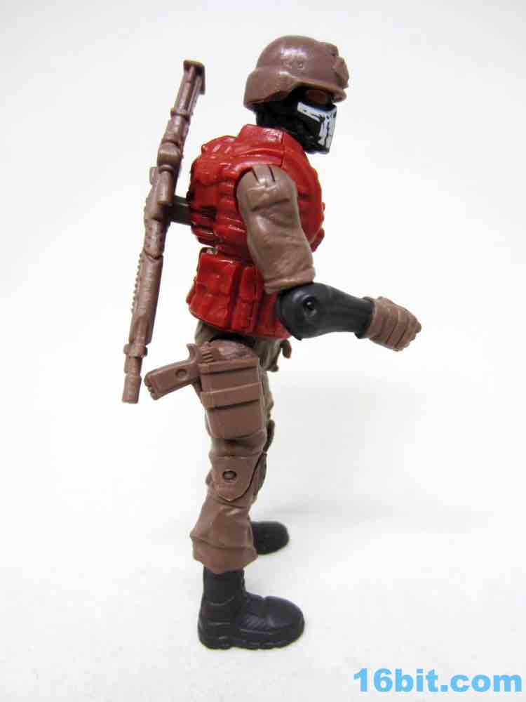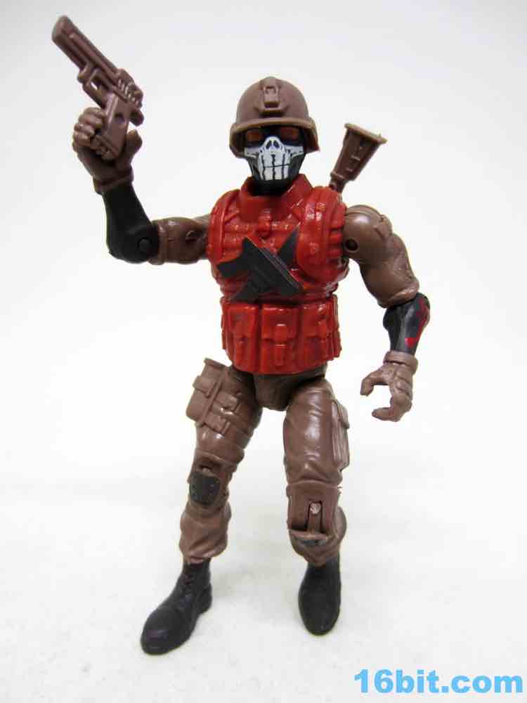 The figure is pretty neat - a skull-masked Shrapnel figure has a surprising range of articulation. It's also been sold several times before, so you might have it. You get 14 pretty great points of articulation, with a range of motion similar to the 1980s 3 3/4-inch G.I. Joe line. Maybe it's closer tot he 2002 relaunch - there's no O-ring, but you do get ball-jointed hips. It straddles the saddle nicely, but not perfectly - also there's nowhere for his hands to go. However, he has a rifle that plugs in his back and a pistol that fits in a holster, and I think that's just superb. Everything basically works together nicely, and why I need an evil military villain riding an extinct elephant I'll never know. But I like it.