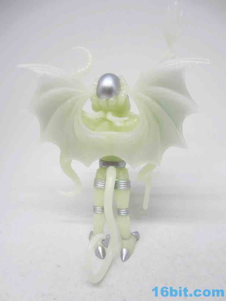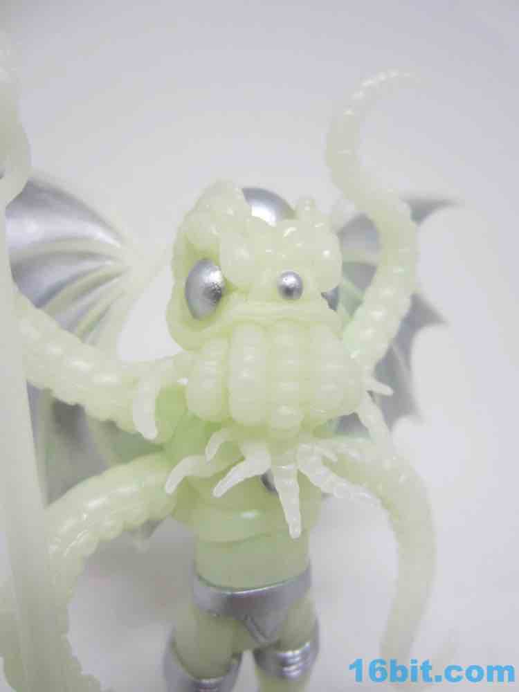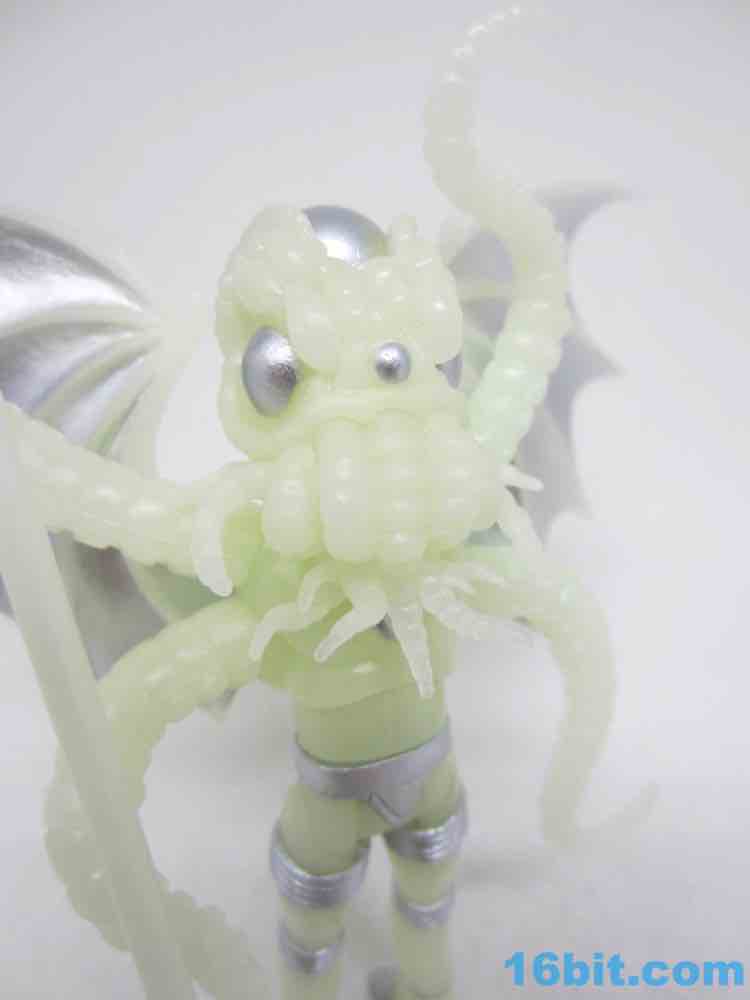 While we've looked at Infinity Edition [FOTD #2,015] and Rlyehzoth [FOTD #2,055] figures, this one is different! But how? Well, it glows - and it differs from previous Cosmic Radiation figures, too. The wings have painted silver linings this time, whereas Cosmic Radiation Mystron was left undecorated. Conversely, the suction cups on the arms are left unpainted with Cthulhu-Nautilus, while Astro-Nautilus had his fully painted in silver. Cthulhu also has silver toes and various silver eyes, coming together as a nice package.
