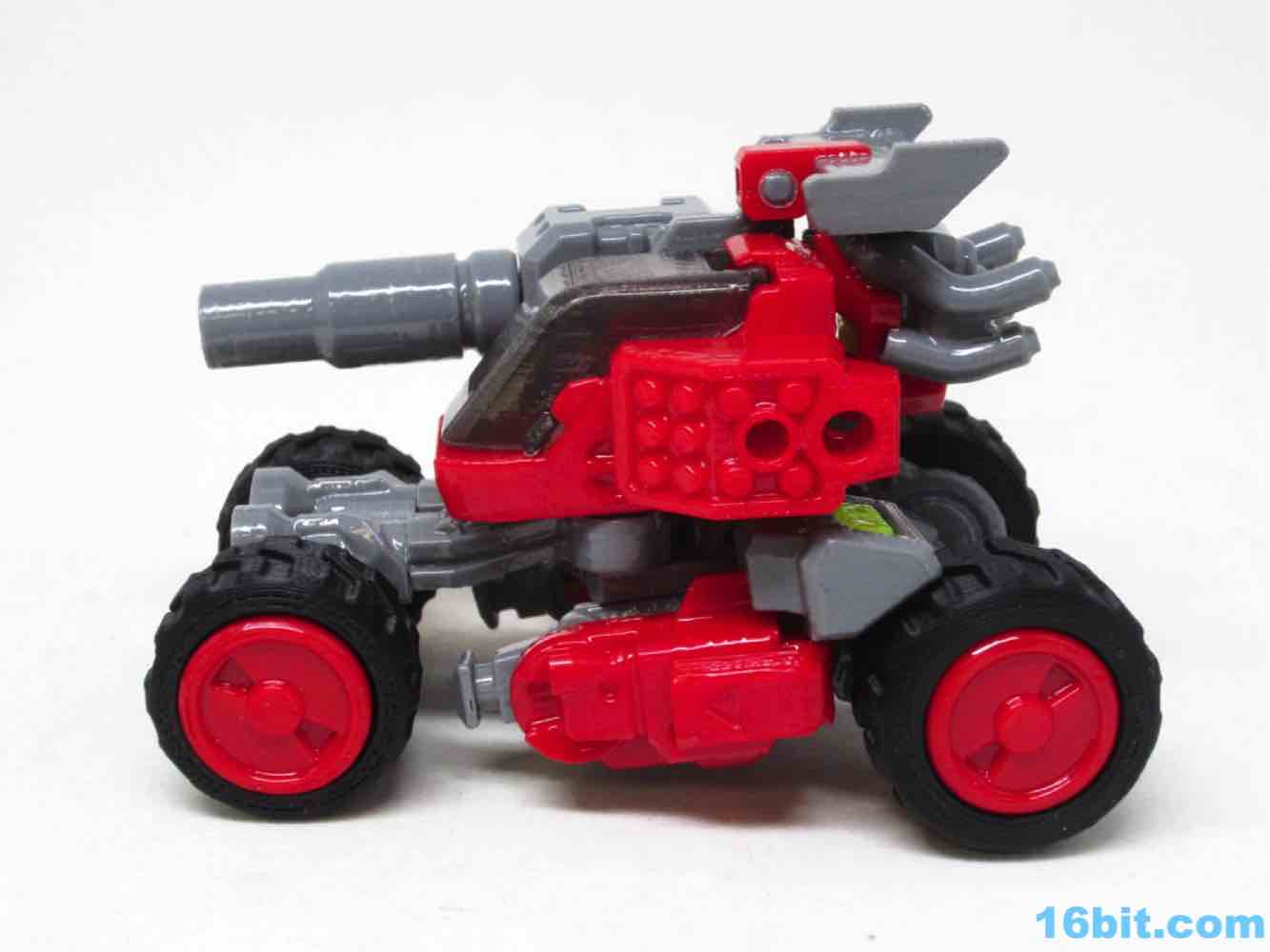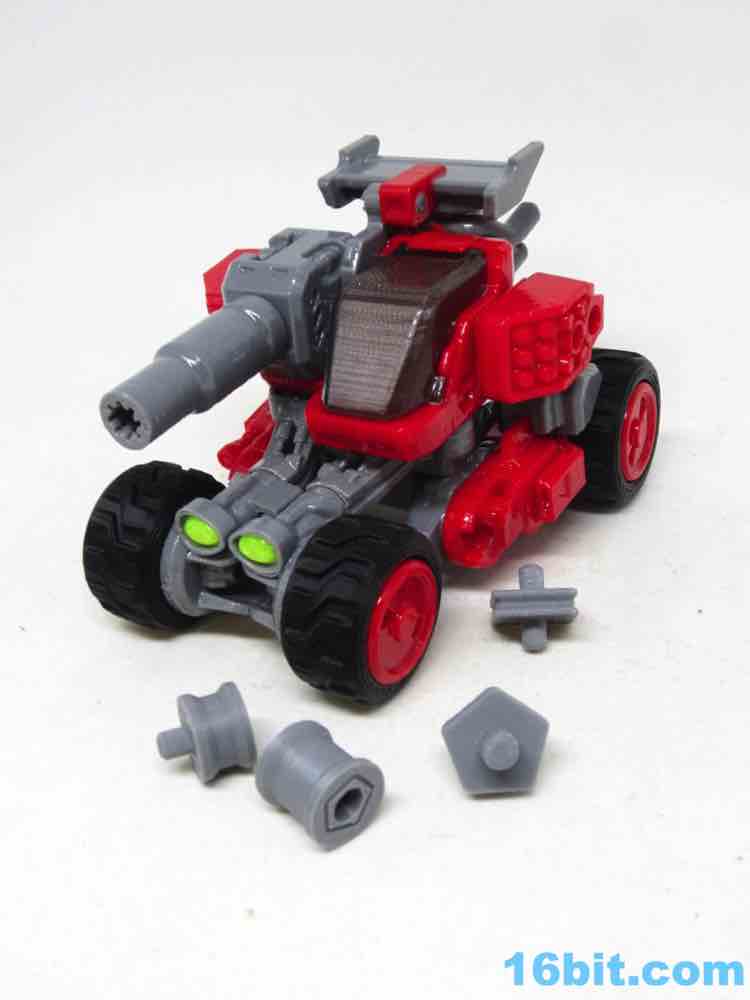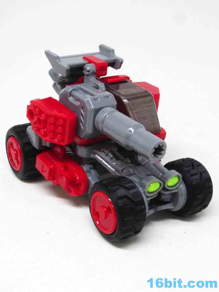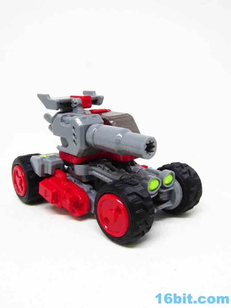 It's sort of maddening how good this is - because it's hand-made and 3-D printed (and discontinued for reasons I cannot fathom), the shiny, sturdy item has been buffed to a nice sheen. There's a clear driver window, and the wheels spin better than most toys I've bought these days. As they are printed on demand and hand-modified, your mileage may vary - but these are some fine wheels. I've bought a lot of Transformers, and this tends to be a bit better than many in that respect. After you plug in some optional missile pods, it's pretty much ready to go out of the baggie - the wheles turn and the cannon can raise. The turret can also rotate, with the wheels moving a bit in a quasi-"jump" position. The various parts and pieces connect mostly by 5mm and 4mm pegs, giving this piece a feel of a lost 1980s toy line. If you told me this could have been a prototype for something Tomy didn't pursue, I'd agree with you.