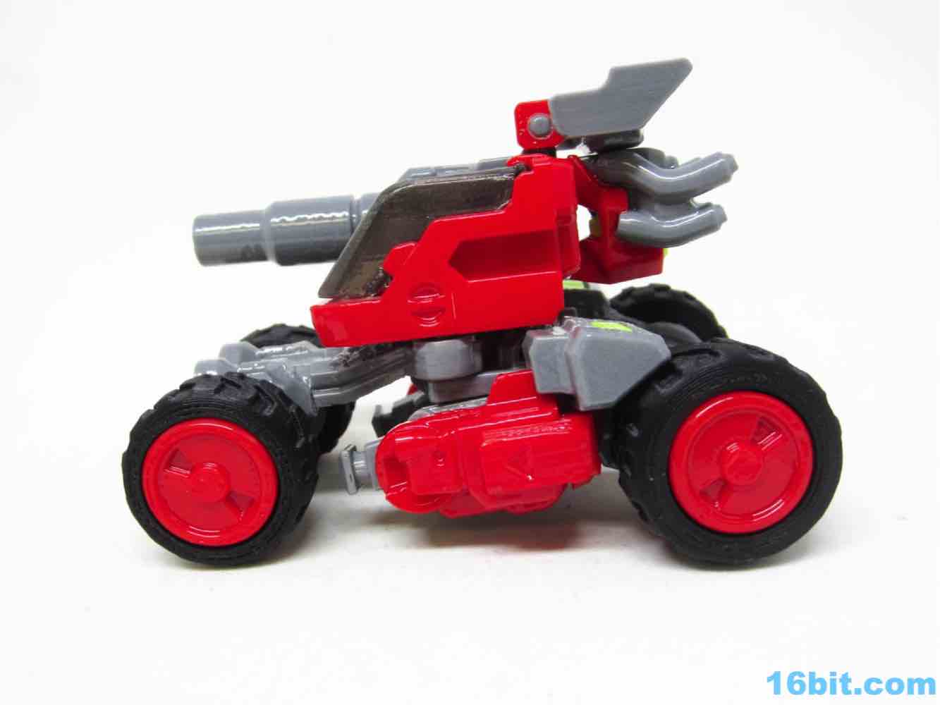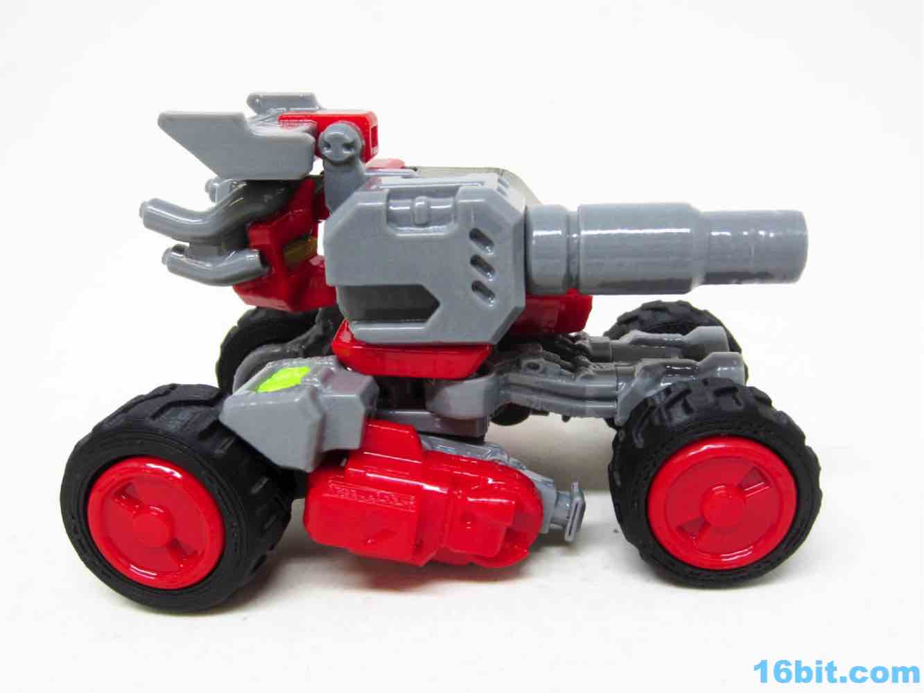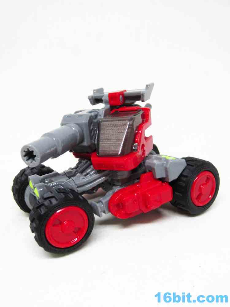 It's sort of maddening how good this is - because it's hand-made and 3-D printed (and discontinued for reasons I cannot fathom), the shiny, sturdy item has been buffed to a nice sheen. There's a clear driver window, and the wheels spin better than most toys I've bought these days. As they are printed on demand and hand-modified, your mileage may vary - but these are some fine wheels. I've bought a lot of Transformers, and this tends to be a bit better than many in that respect. After you plug in some optional missile pods, it's pretty much ready to go out of the baggie - the wheles turn and the cannon can raise. The turret can also rotate, with the wheels moving a bit in a quasi-"jump" position. The various parts and pieces connect mostly by 5mm and 4mm pegs, giving this piece a feel of a lost 1980s toy line. If you told me this could have been a prototype for something Tomy didn't pursue, I'd agree with you.