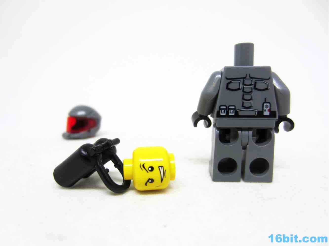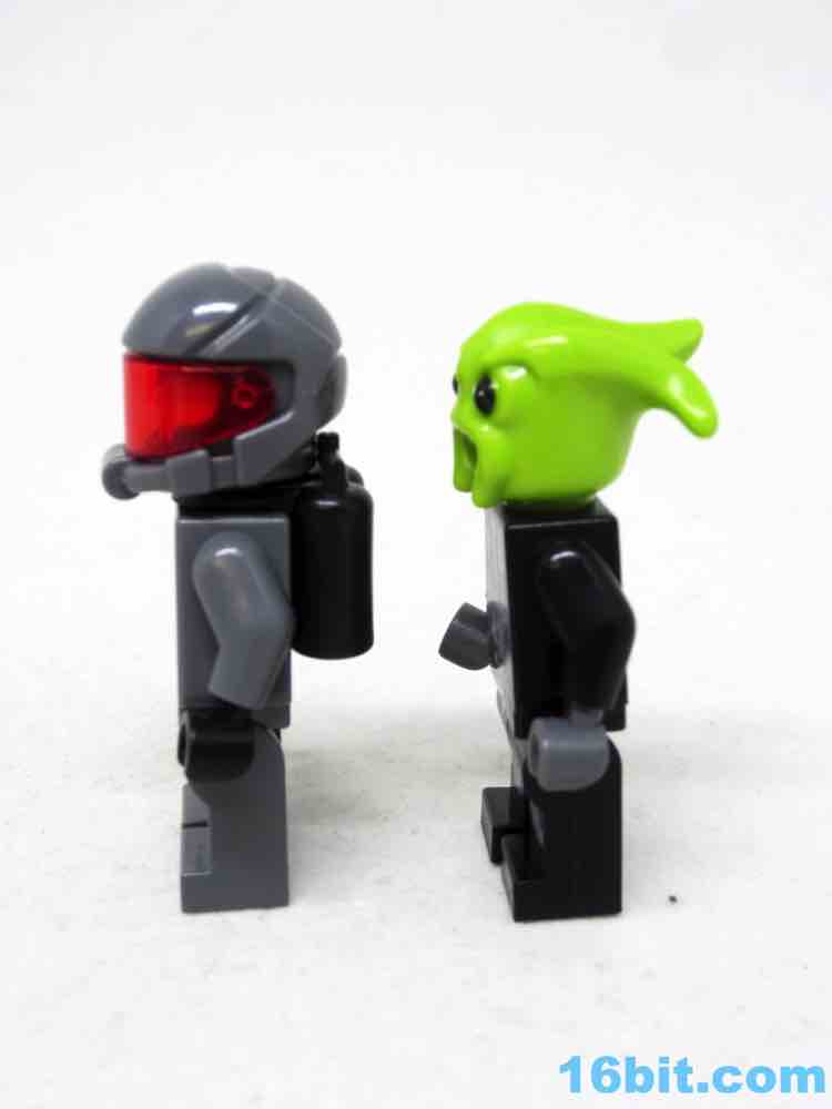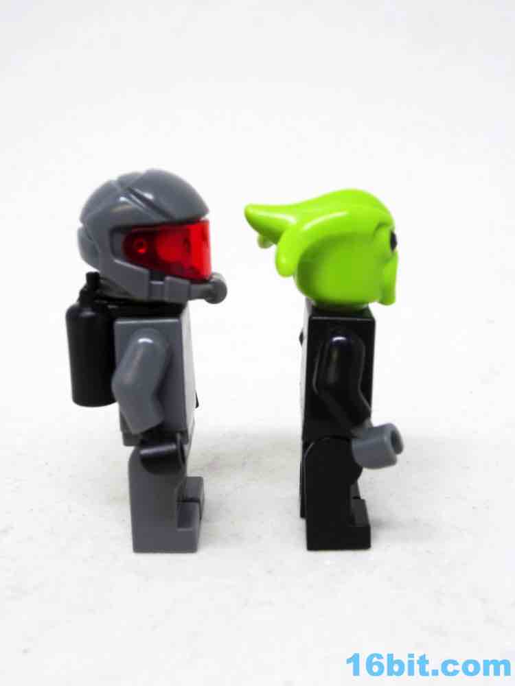 The figures are good. The Space Police Commando has two faces, just rotate it around to change his mood. The red visor reminds me of the original Space Police sets I had as a kid, but the dark grey uniforms are new. They're also not really specifically referencing any particular police uniform of which I am aware - it works as an adventurer too. There's a badge brinted on his torso, plus you'll see tons of pockets on a printed-on belt. The figure has a black air tank, plus printing on both sides of his body. It's a good one - the same parts were used for some other blind bag space figures later on.