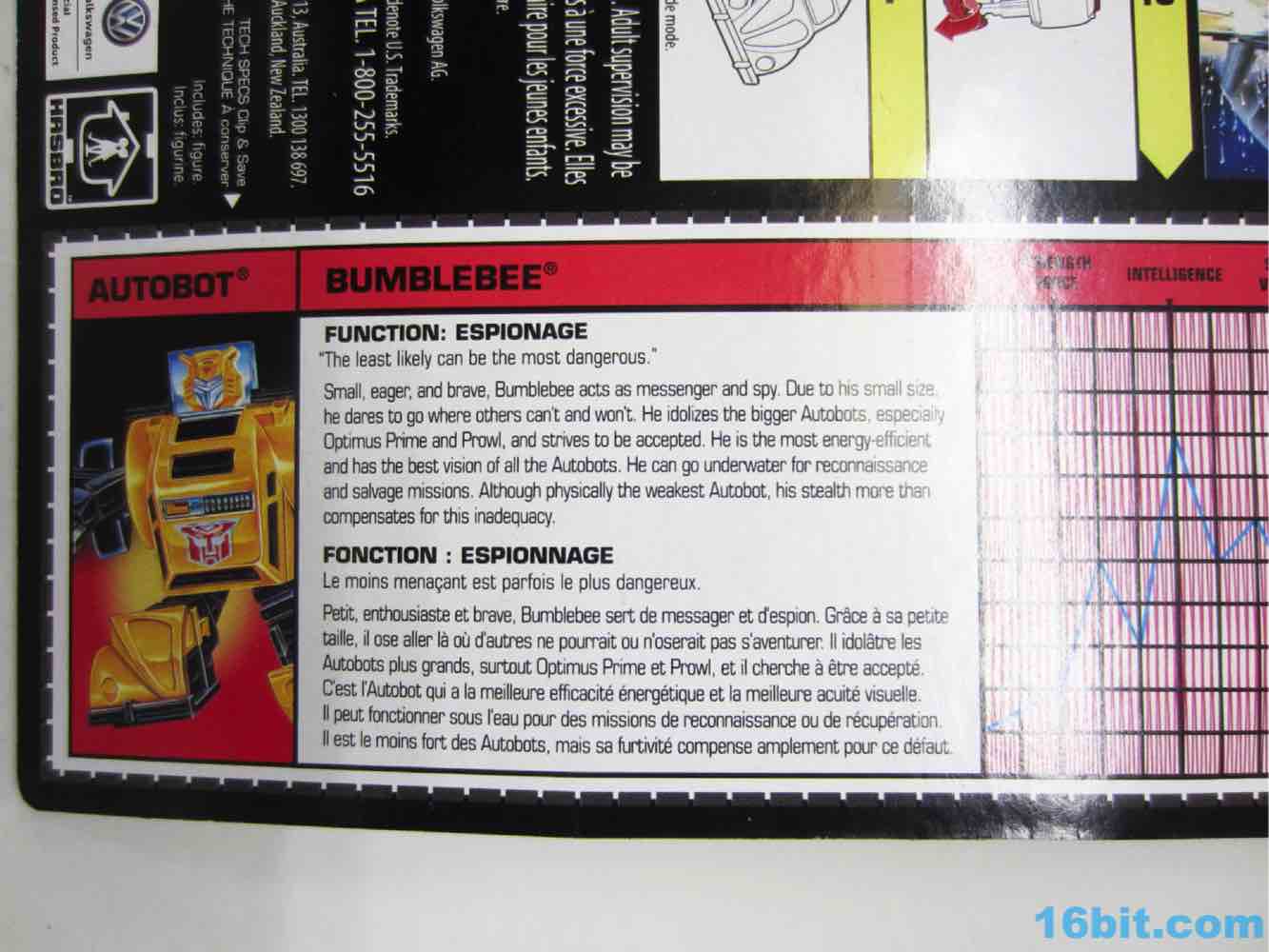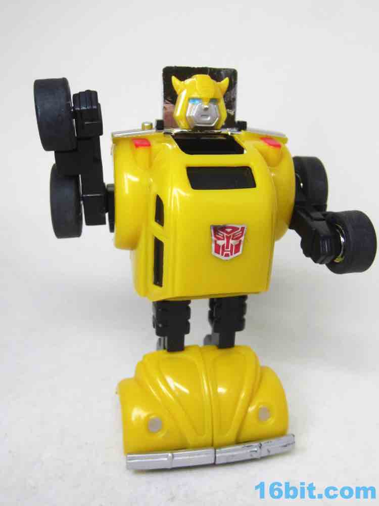 I like the black windows and the general construction of the toy, and what's amazing is that for $8 it doesn't seem too far off from what I would expect of a toy in 2018. A $5 toy is a simple, tiny gun with a couple of joints. A $10 toy is a couple of small cars with acceptable articulation. With these old minibots, the deco is generally good and details like Bumblebee's rubber tires, a little paint, and a license, it's not at all odd for it to be a decent $8 toy. The packaging is no slouch either, although I do miss Hasbro's prettier English-only cardbacks. Considering the size of the Canadian market, I don't get why they don't just ship Canada some European packaging and do something that looks more like the all-English 1980s packaging for the USA. But that's me. If you want a Bumblebee, $8 is a deal.