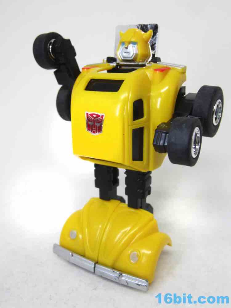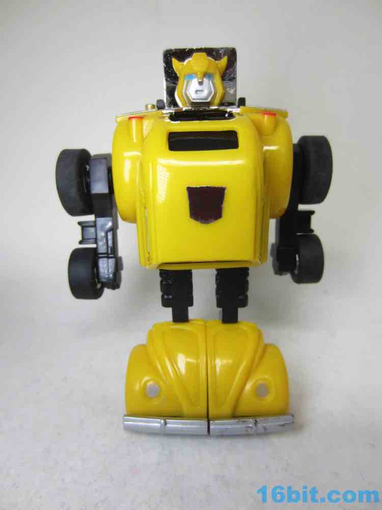 Getting the original Bumblebee was a big deal - the Autobots and Decepticons on the TV show The Transformers tended to skew big early on, so getting a show character - let alone a major one - was quite a get. The toy didn't match the TV character's face until 2004, when an Encore reissue in Japan retooled the face so you could get it to look more like you remember, rather than how it actually was.