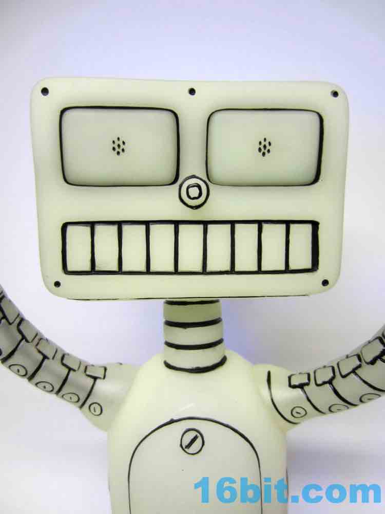 Dating back to 2006, this figure came about when Urban Vinyl was new to the mainstream press, warranting newspaper articles about how they were the next big thing - despite the fact runs were very low and nobody you personally knew owned one. They were charming, clever, weird, fun, arty, and unique - much like this fellow. He sems like an old robot, hand-drawn in some kid's notebook pages. Big teeth, boxy eyes, tentacular arms, and various panel lines bring it to life as sort of a freak creation. A lot of really cool figures came out back then, some of which - like this one - sadly didn't sell through. It's a nice chunk of vinyl for the asking price.