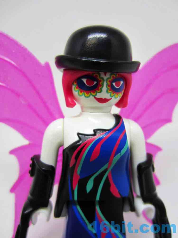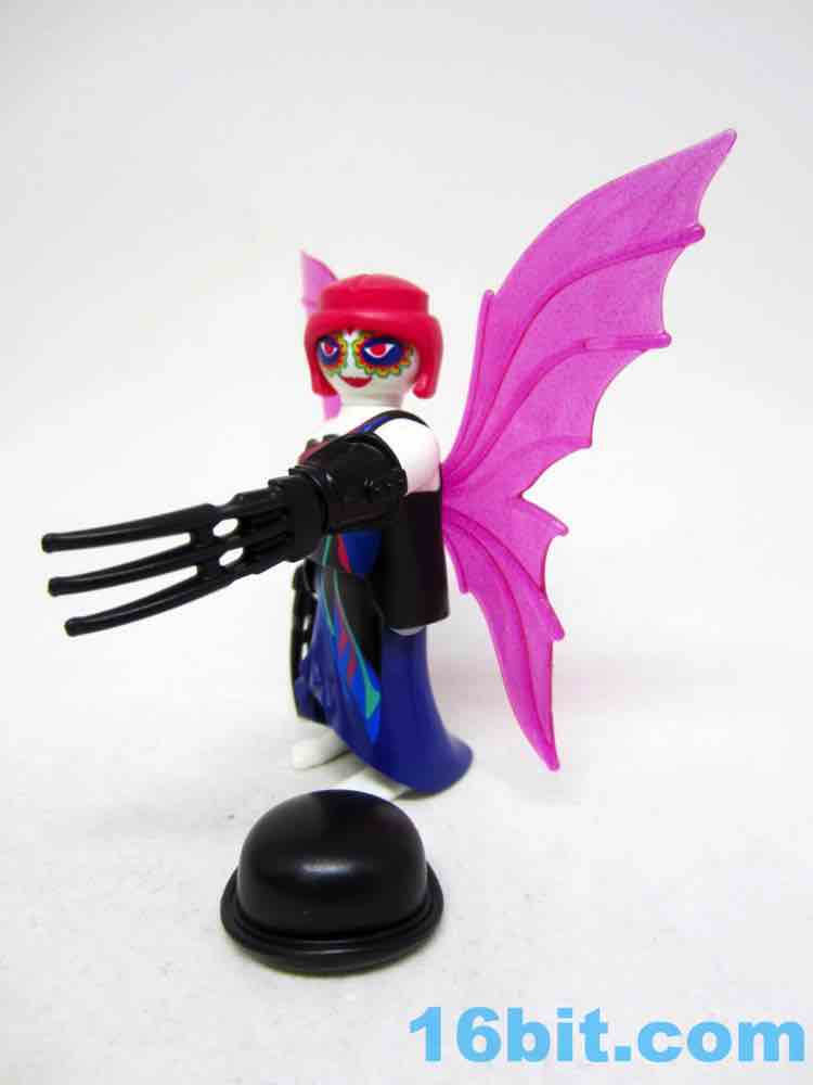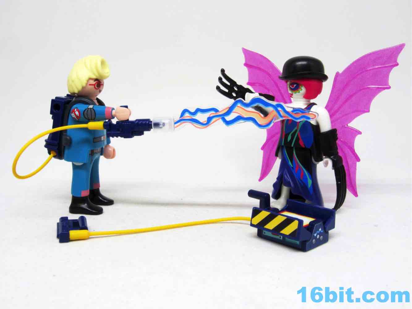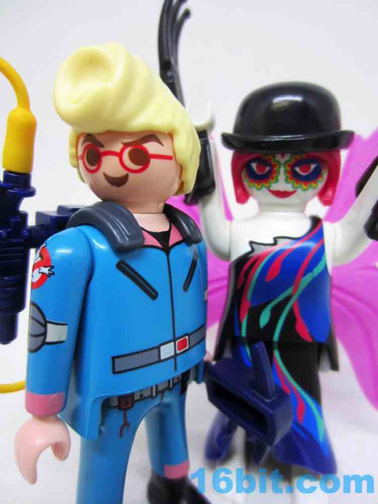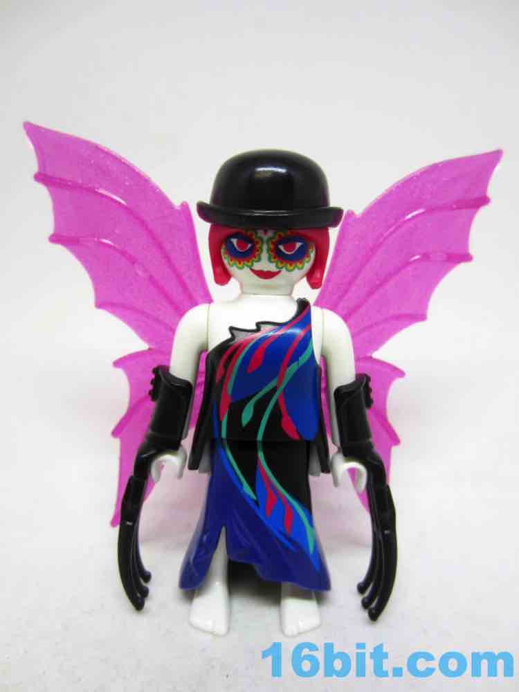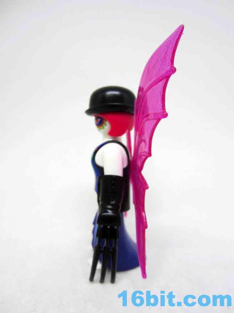 The story on Playmobil's earliest designs were to mimic children's drawings - hence, figures don't have noses or ears since children rarely included them in their art. It's possible this Ghost was the result of some kid somewhere put together a pale white woman with pink hair, crazy energy eyes, a bowler hat, clear pink fairy wings, Wolverine's claws, and a dress that looks like a toga had a baby with a special kind of detergent. It's amazingly weird and truly in the spirit of Kenner's old fabrications, but it works here.