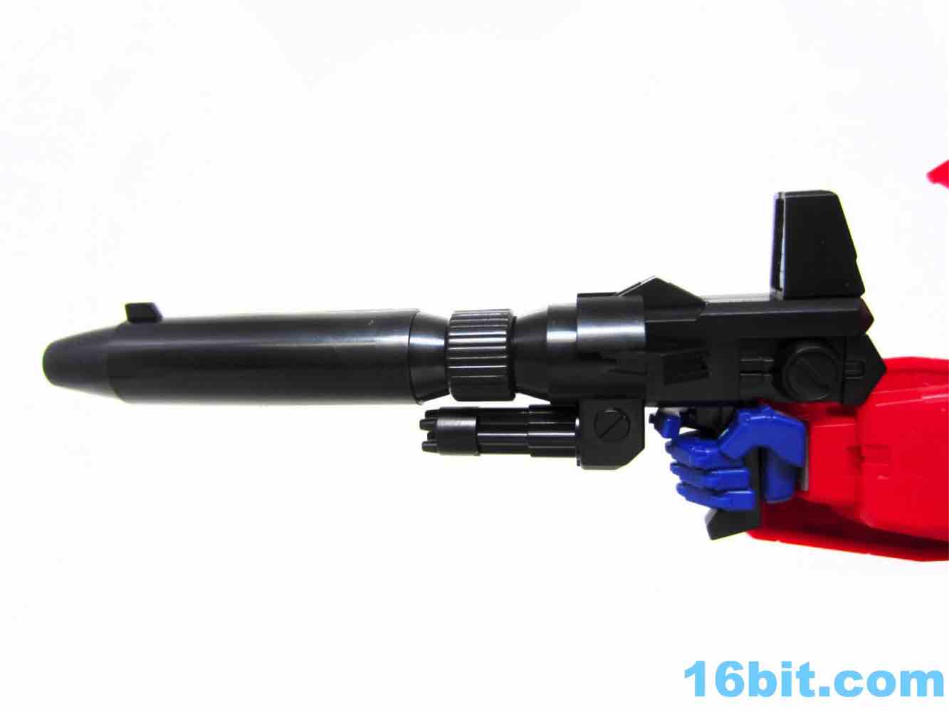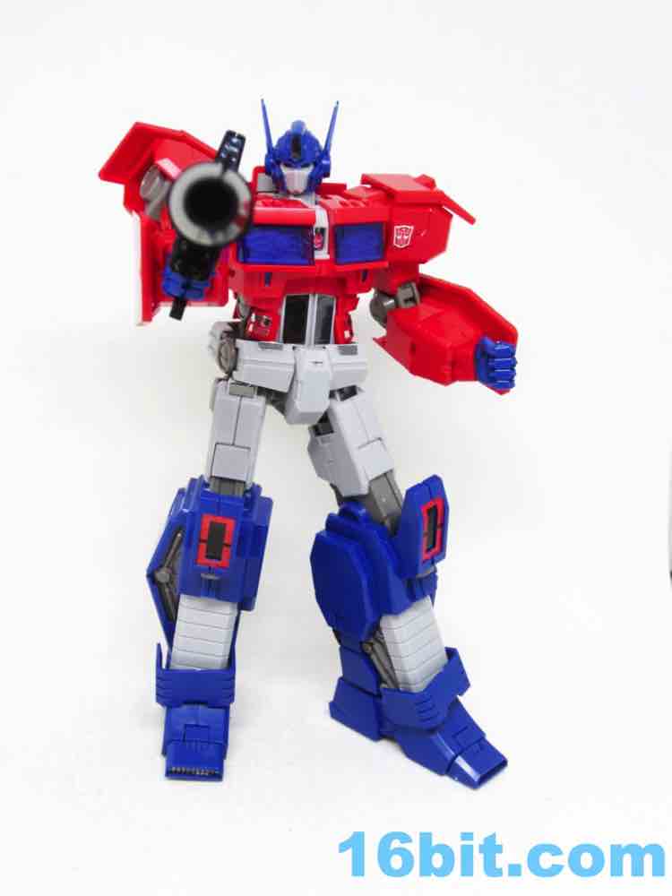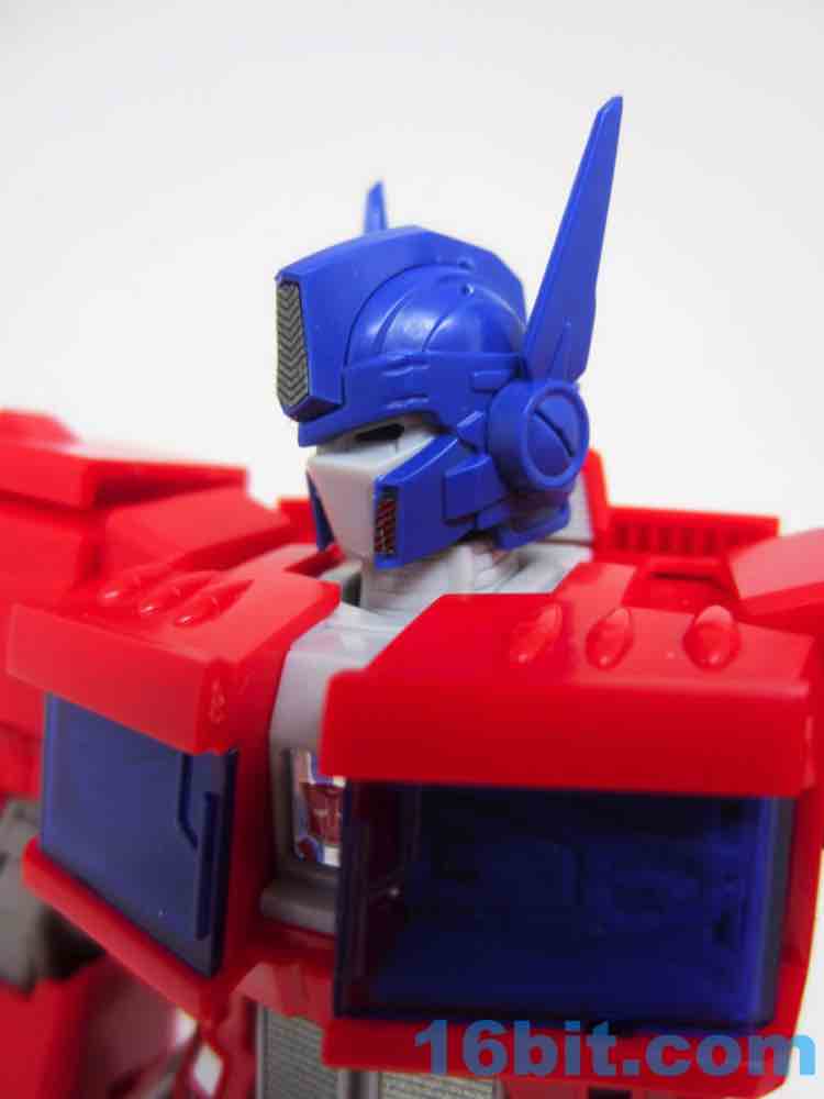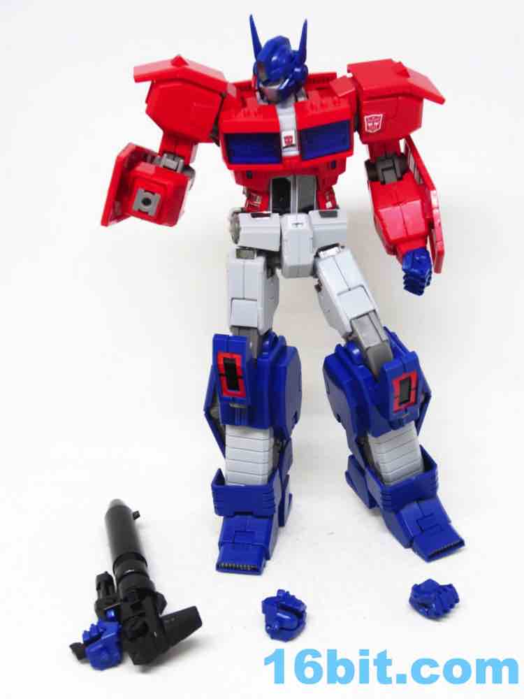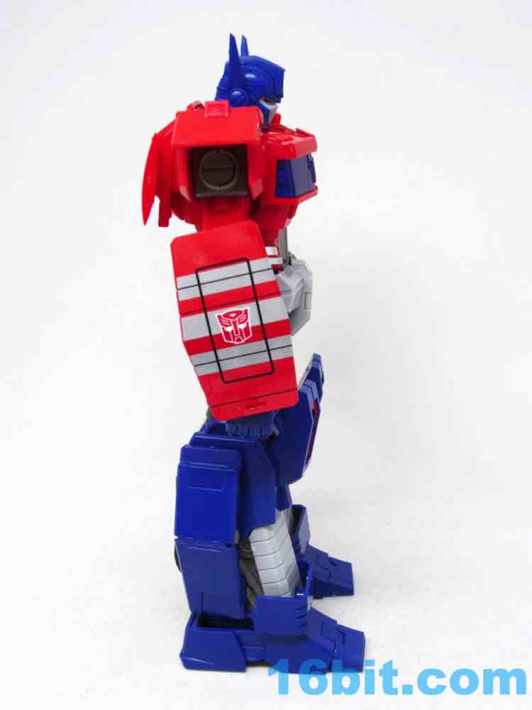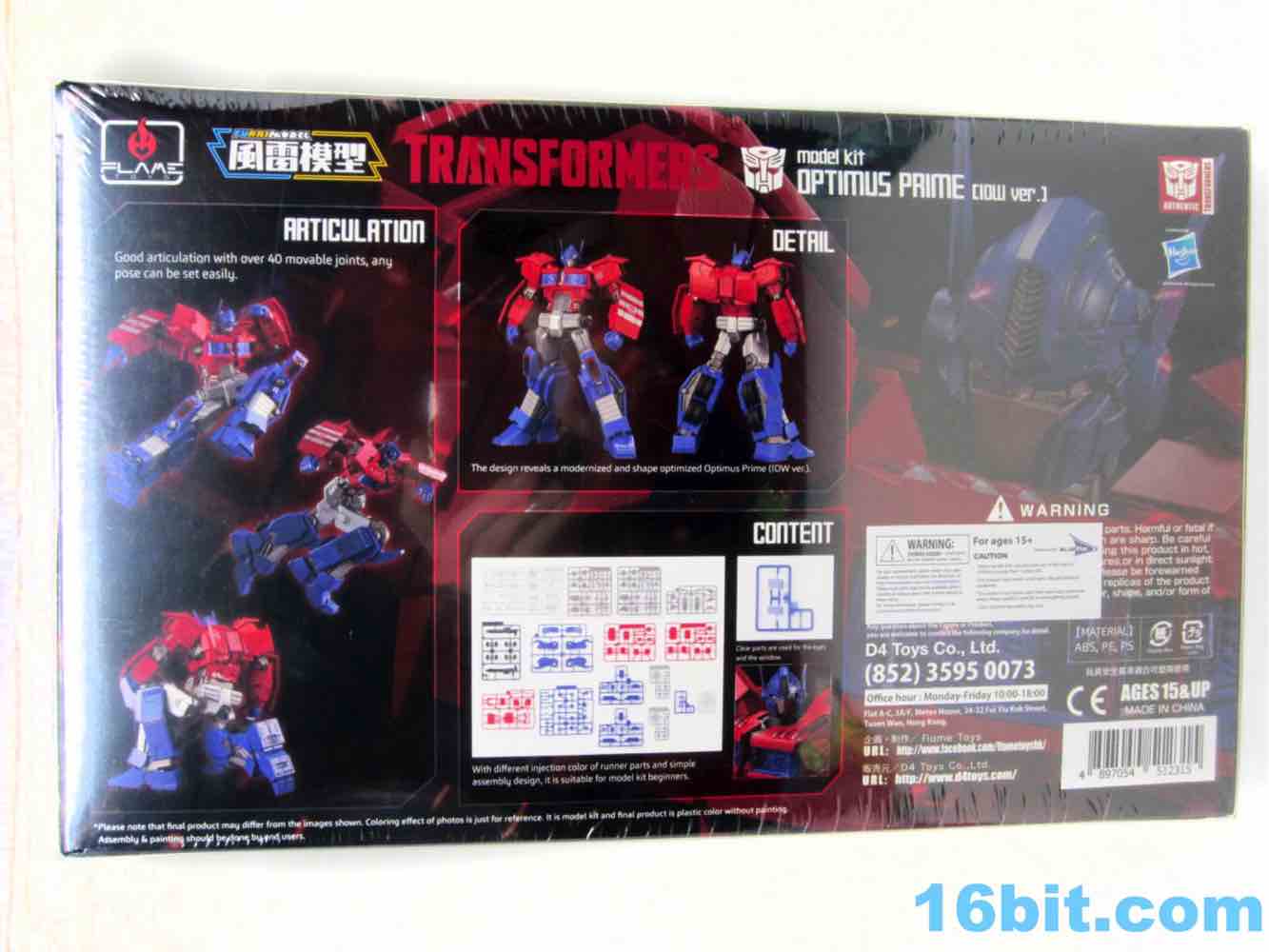 Many of Flame Toys' Transformers kits follow their own original designs, inspired by a pastiche of Generation One 1980s influences and giant, exaggerated thrusting-forward crotches. This Optimus instead conforms to the proportions of the comic books, which puts it squarely on the block-like look favored by Hasbro these days. It looks like it could transform, but it can't - you'll find vestigial wheels on the back of the legs as well as kibble on the back and arms. There is no sig of the smokestacks, but you'll see the truck mode's cab on the chest as well as other elements throughout. It's a real fake licensed Transformers kit, the likes of which I would have loved to have seen Hasbro tackle as a transforming toy if such a thing were to be possible. Articulation is on par with most modern 6-inch action figures, with things like swappable hands, rocker ankles, and lots of arm joints to give you multiple poses and moods for a faceless character. Hands can point, hold a blaster, or be a fist.