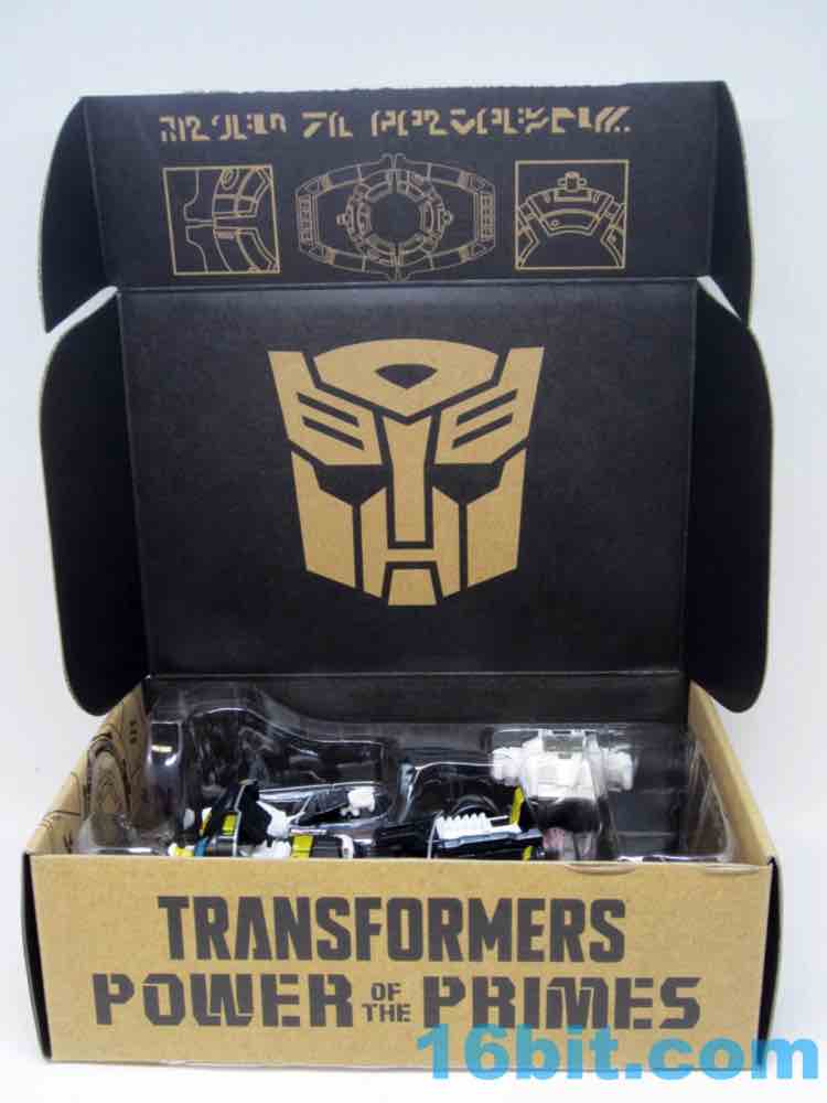 The packaging is pretty much the same as Red Swoop's with an added sticker to tell them apart - it's plain cardboard and probably a smidgen greener. Inside the box is a tray holding the figure in place, with Power of the Primes written everywhere - including the instruction sheet. The sheet seems to be a barely-changed Jazz manual, so there's no "WFC" number or wacky names for the toy's weapons. It's like a bonus release from the line that ended in 2019.