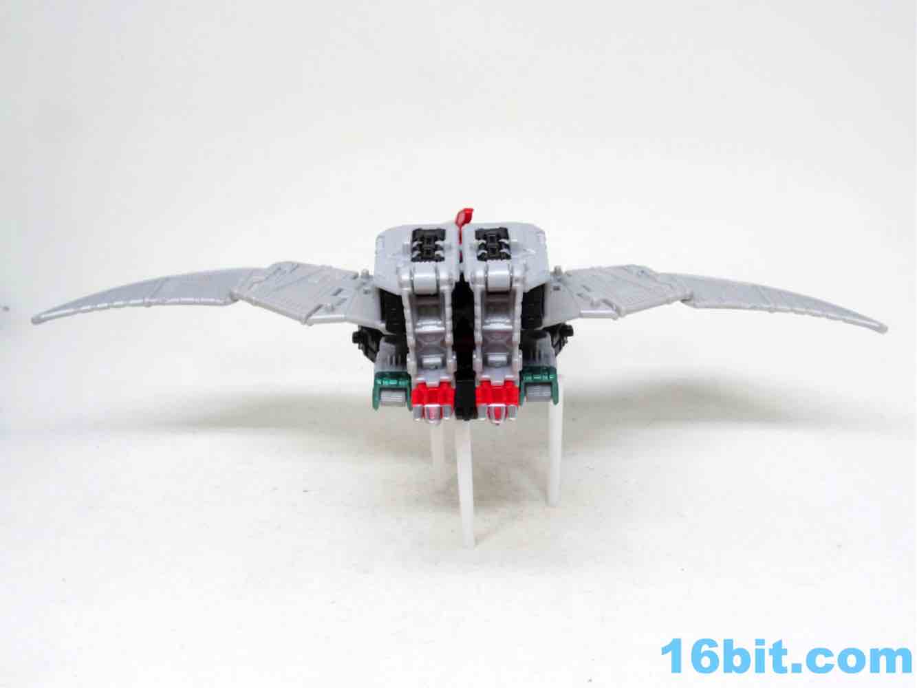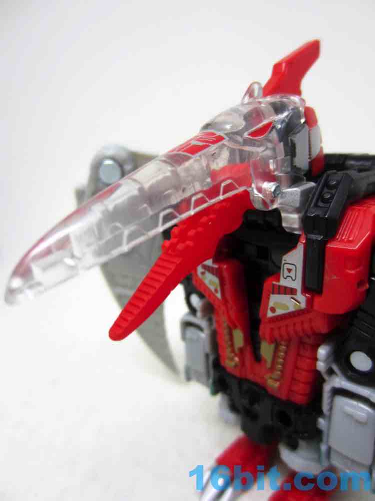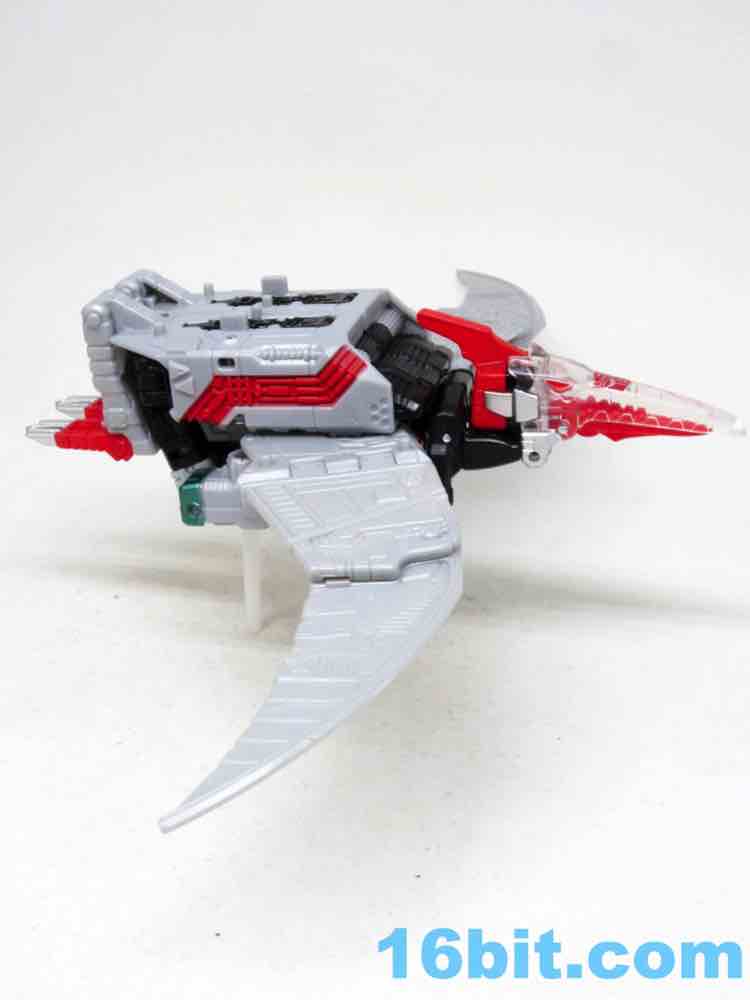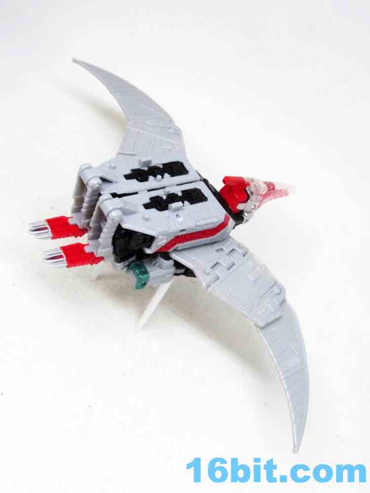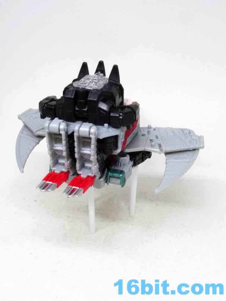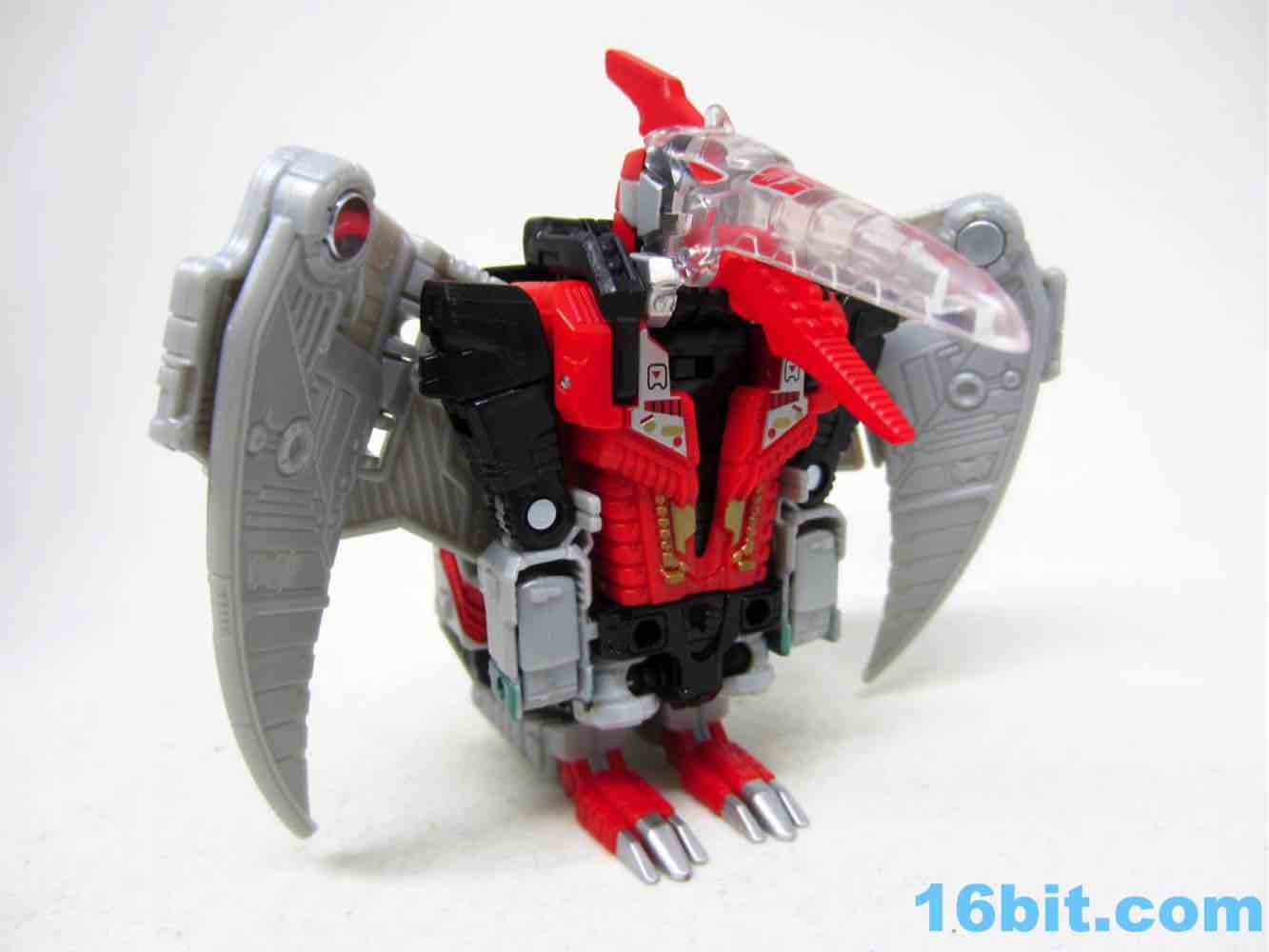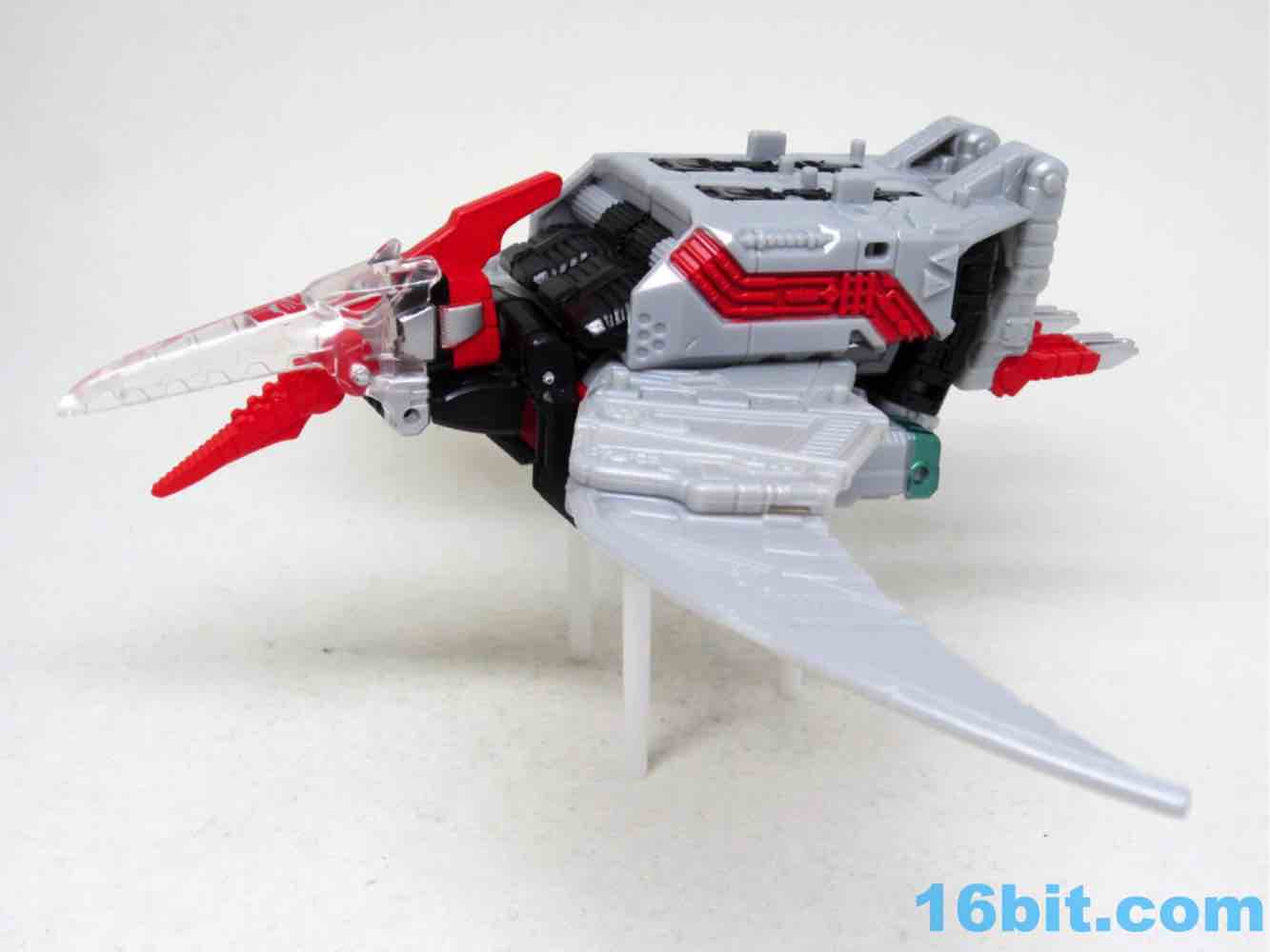 The flying creature mode is very similar to the original release - the grey is a little lighter and they dropped the gold head, but it's otherwise functionally identical. You can have it stand or "fly," with an articulated neck and jaw. The Prime Armor can fit on the back, and the sword stores under the jaw.