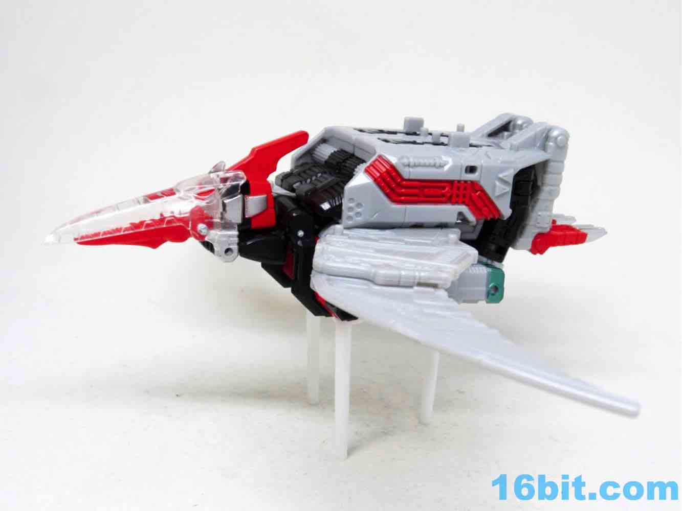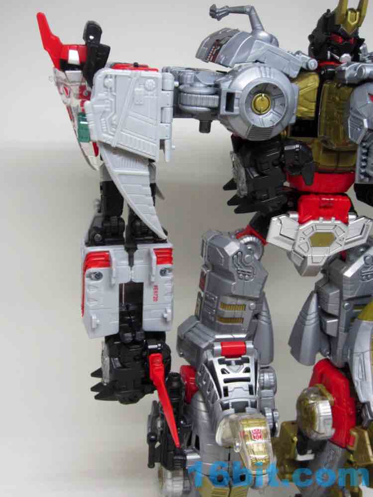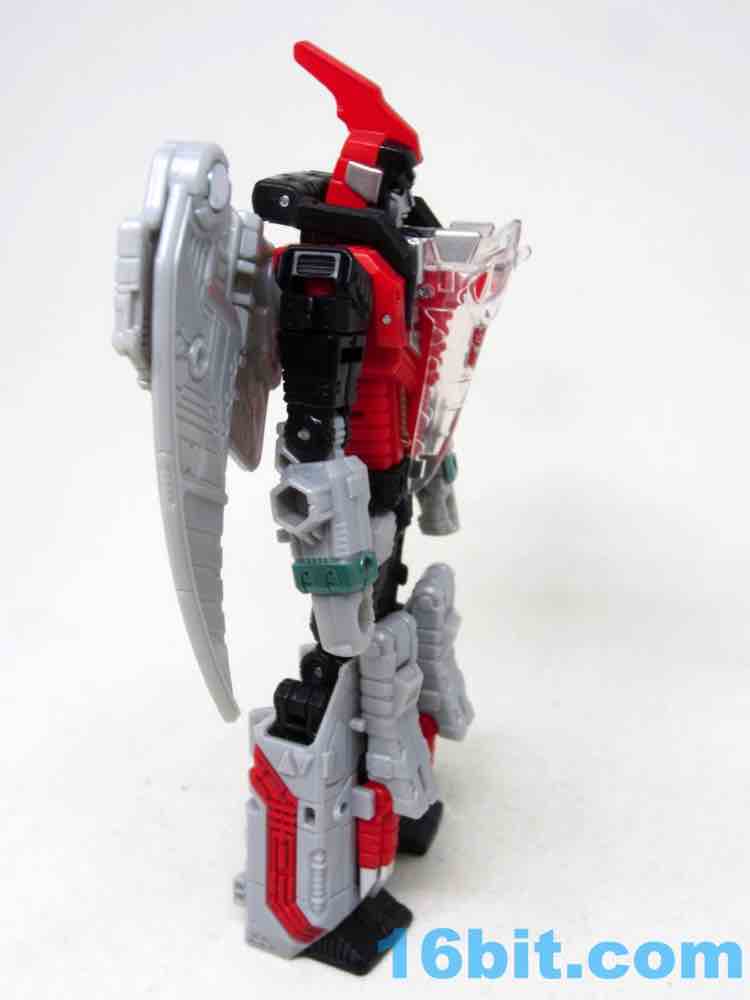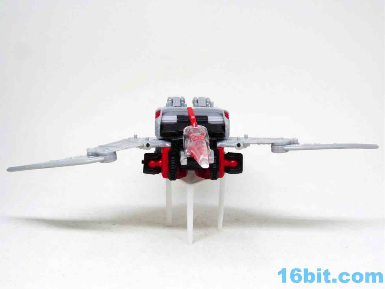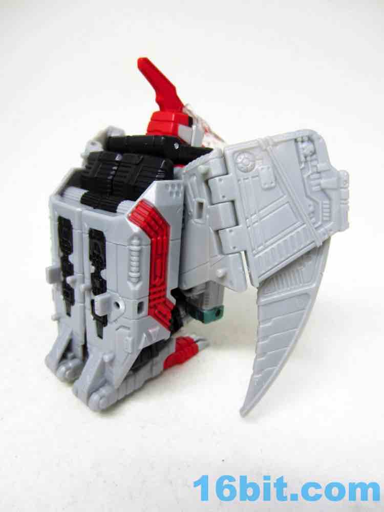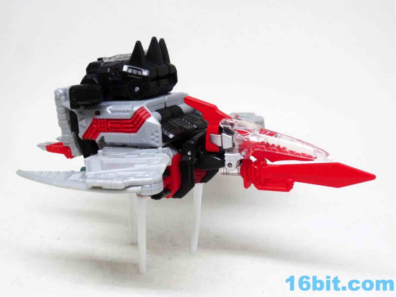 The flying creature mode is very similar to the original release - the grey is a little lighter and they dropped the gold head, but it's otherwise functionally identical. You can have it stand or "fly," with an articulated neck and jaw. The Prime Armor can fit on the back, and the sword stores under the jaw.