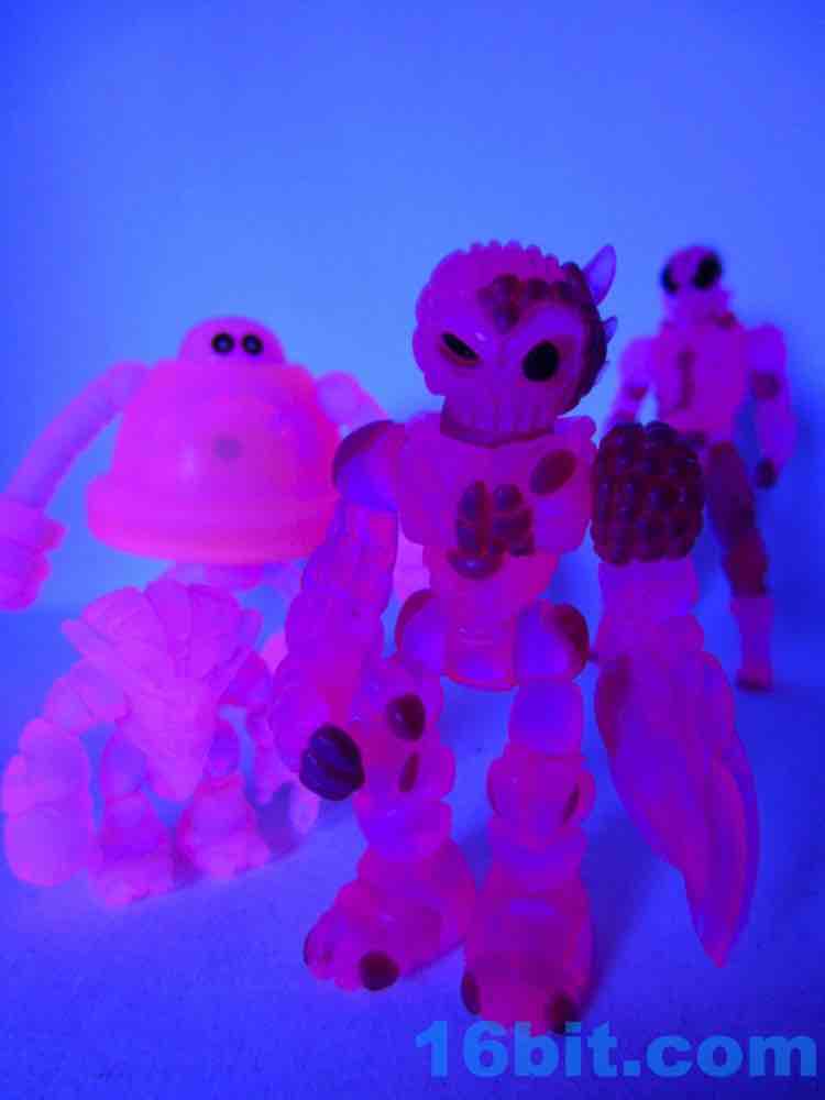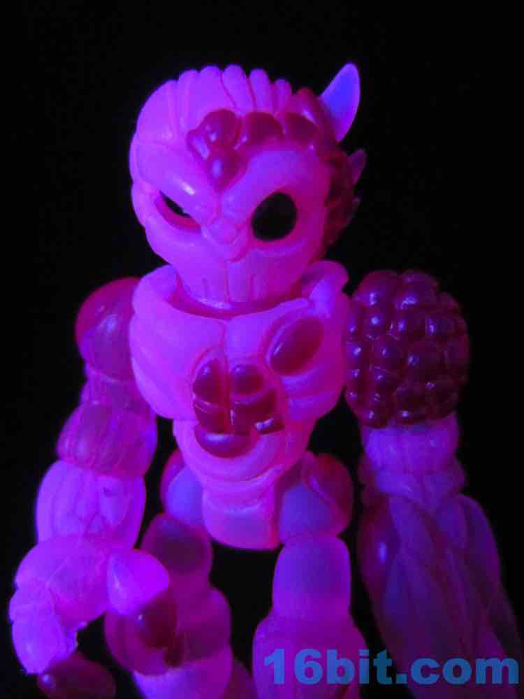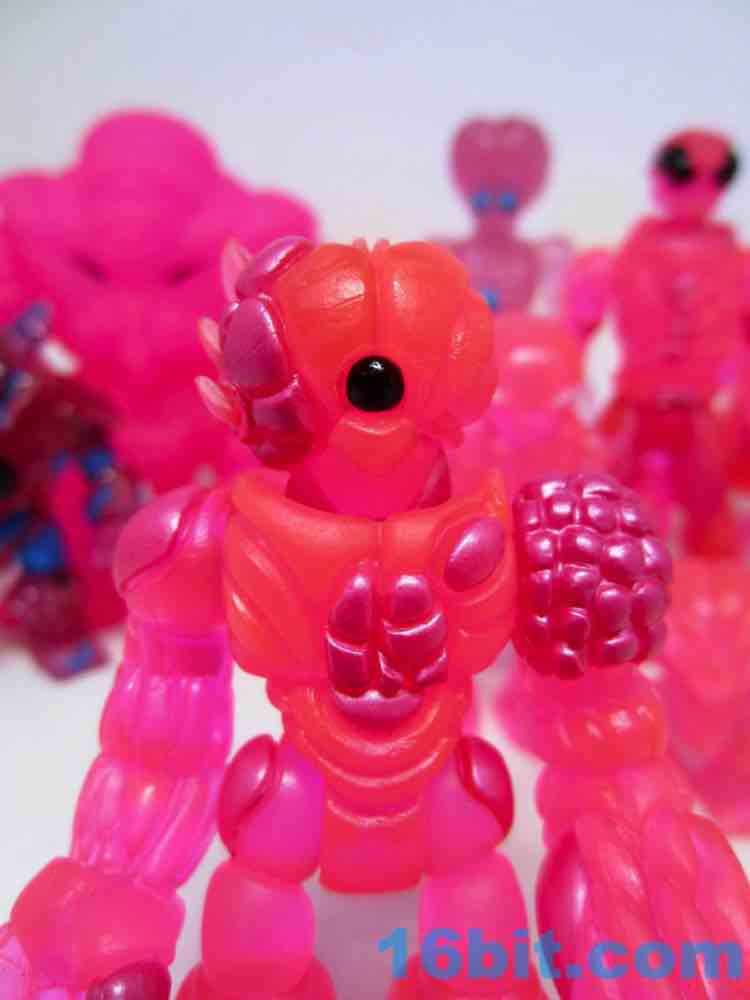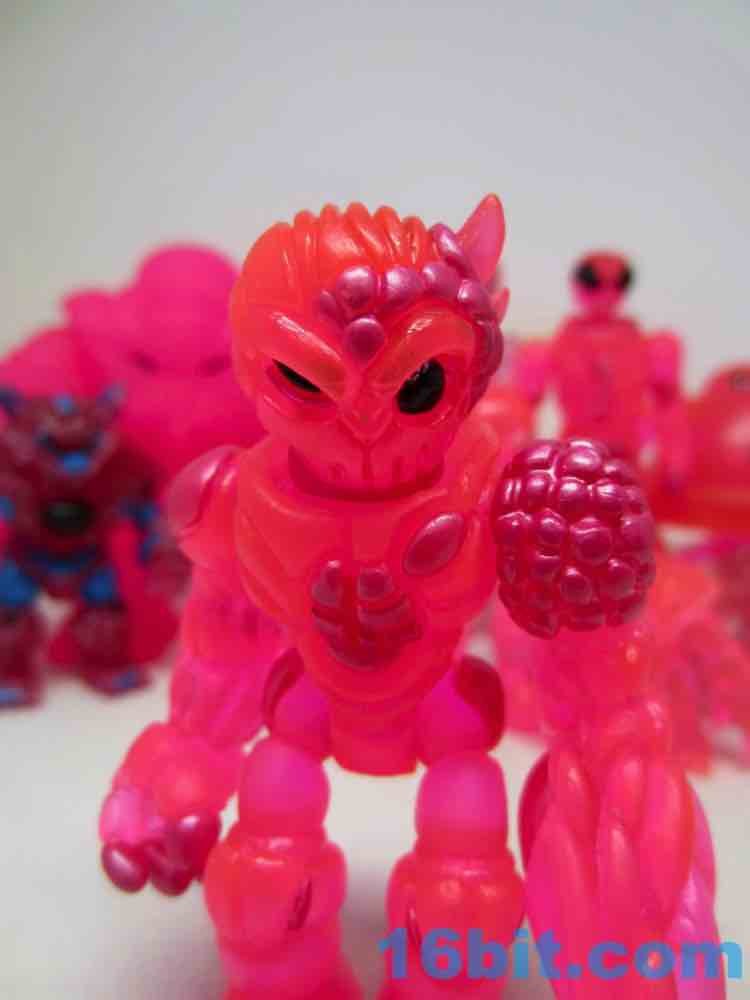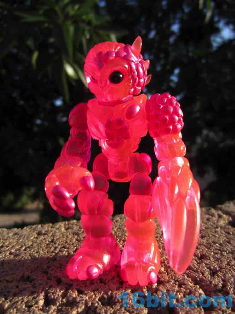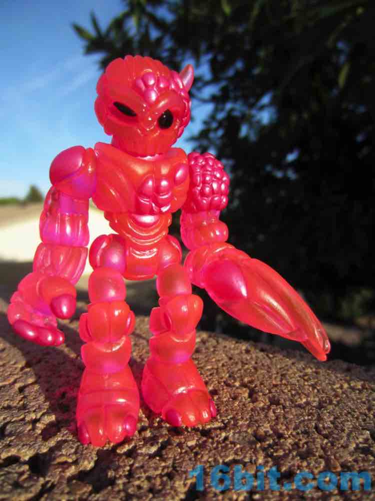 If the 2 3/4-inch Mutant Evolver Pheyaos Hyper Mordireus Fusion looks familiar, it should! Onell Design and RealxHead have been conspiring together on figures for years, most of which sell out in 30 seconds and I've never really had a shot at them. The default head matches Pheyaos Mini and Pheyaos Man, with an all-new Glyos-compatible body that really does match the style of the RealxHead soft vinyl figures you missed and can't afford. A bonus face on the back of the head looks a little bit like the Chaos Trooper, but what truly amazed me was the color match of the plastic. If memory serves the first Mordireus Pink figures were sold in the December 12, 2012 drop with the likes of Sarvos and Crayboth and again in September 2013 with