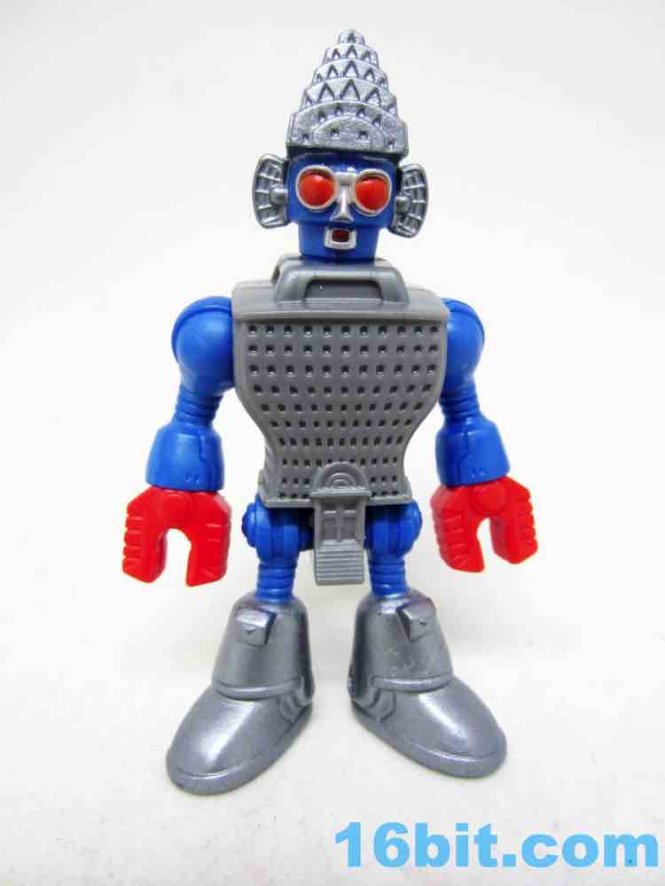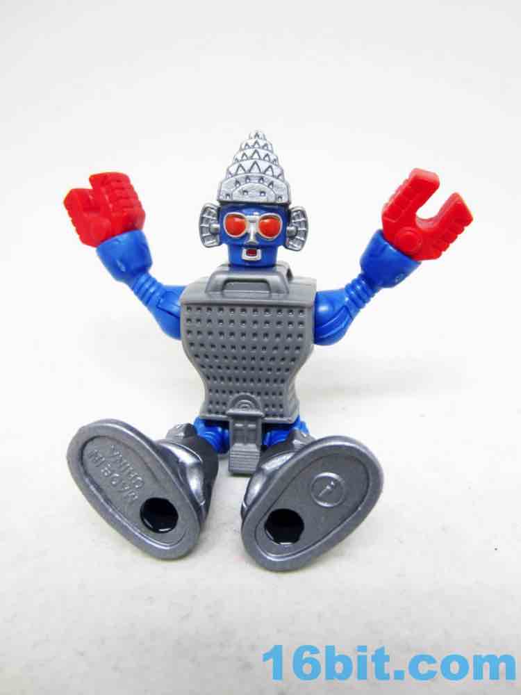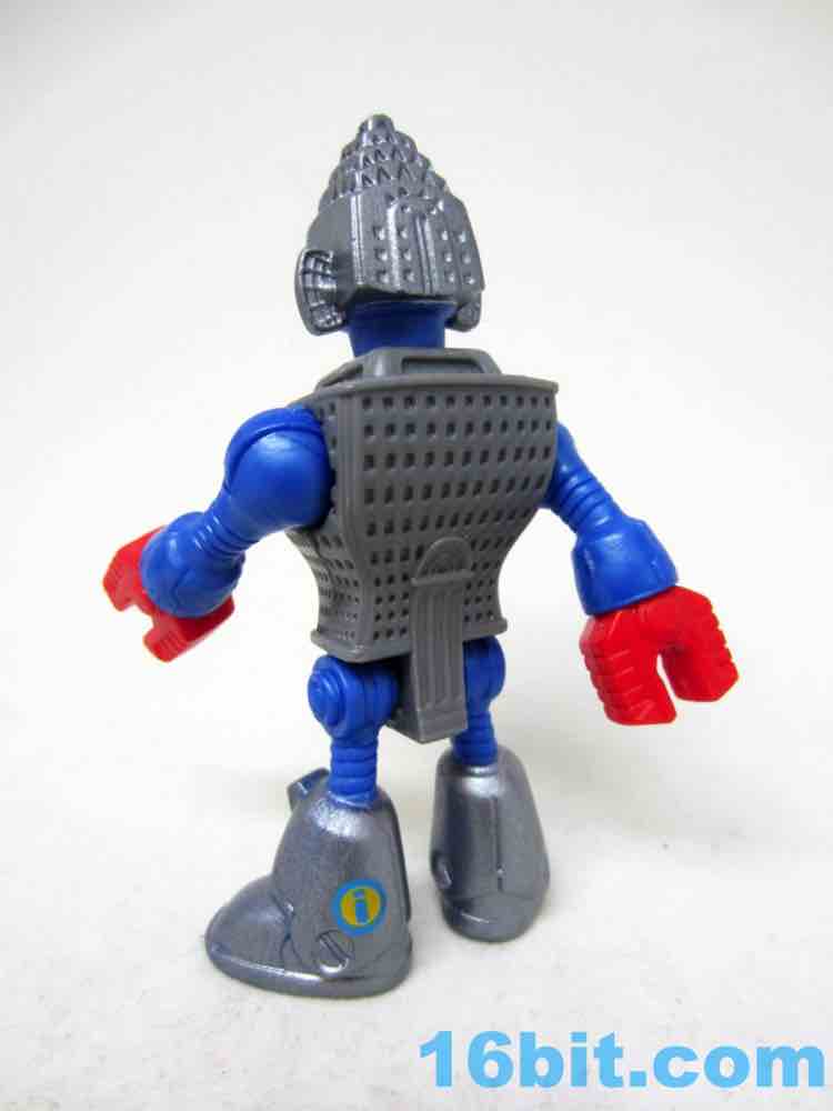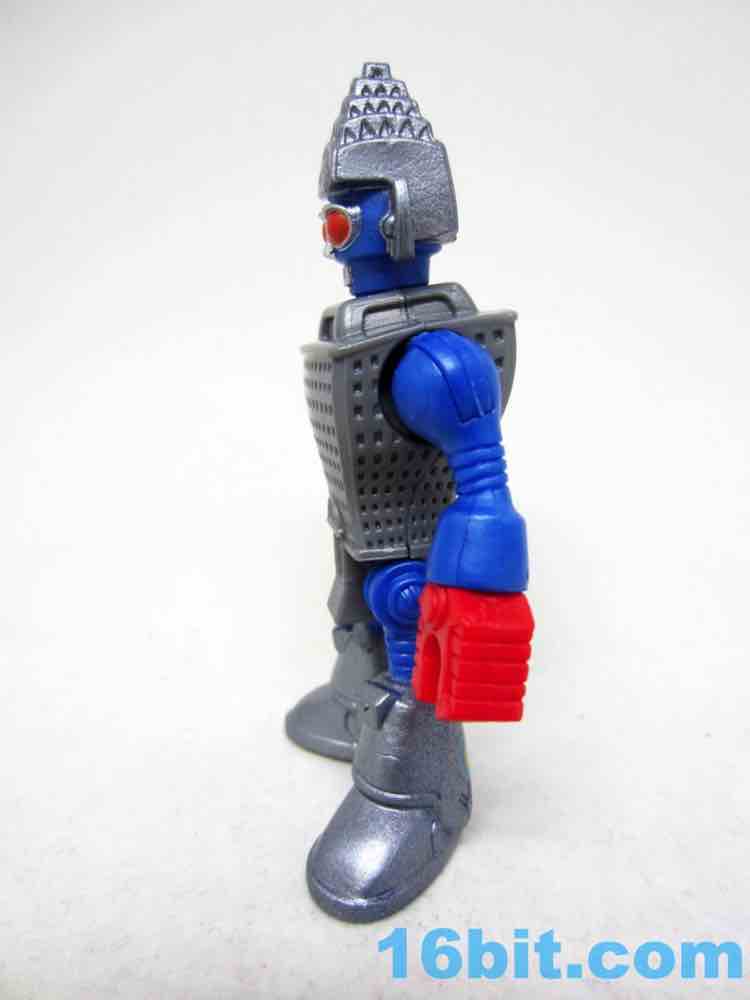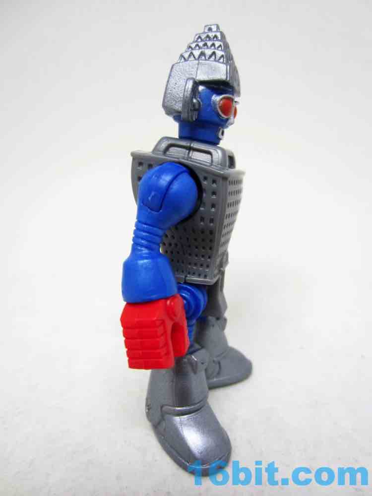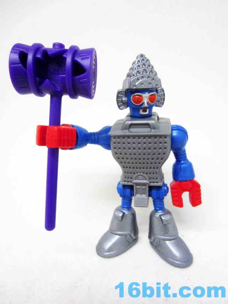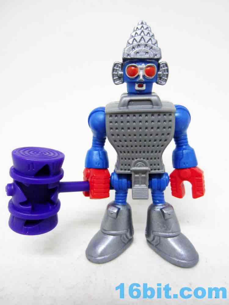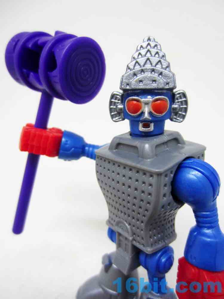 The 3-inch figure has a big hammer with a carved-in "pow" graphical hole on the side, which is arguably just as good as any accessory. The head matches the one in the movie somewhat closely, with similar colors and proportions plus added "ears" made of some sort of radar antenna-looking things. It's probably not unlike some "third party" toys wherein you can tell the inspiration, but it doesn't infringe with the specific idea since there were numerous changes in the layout and functionality. The figure has rotating red claw hands, ball-jointed shoulders, an articulated hip with joined legs, and a jointed neck. The detailing is pretty good, with lots of windows in the building and a pretty funny main door on the codpiece.