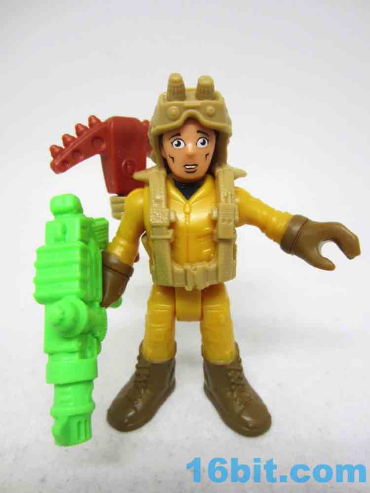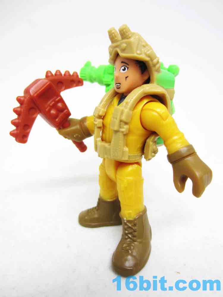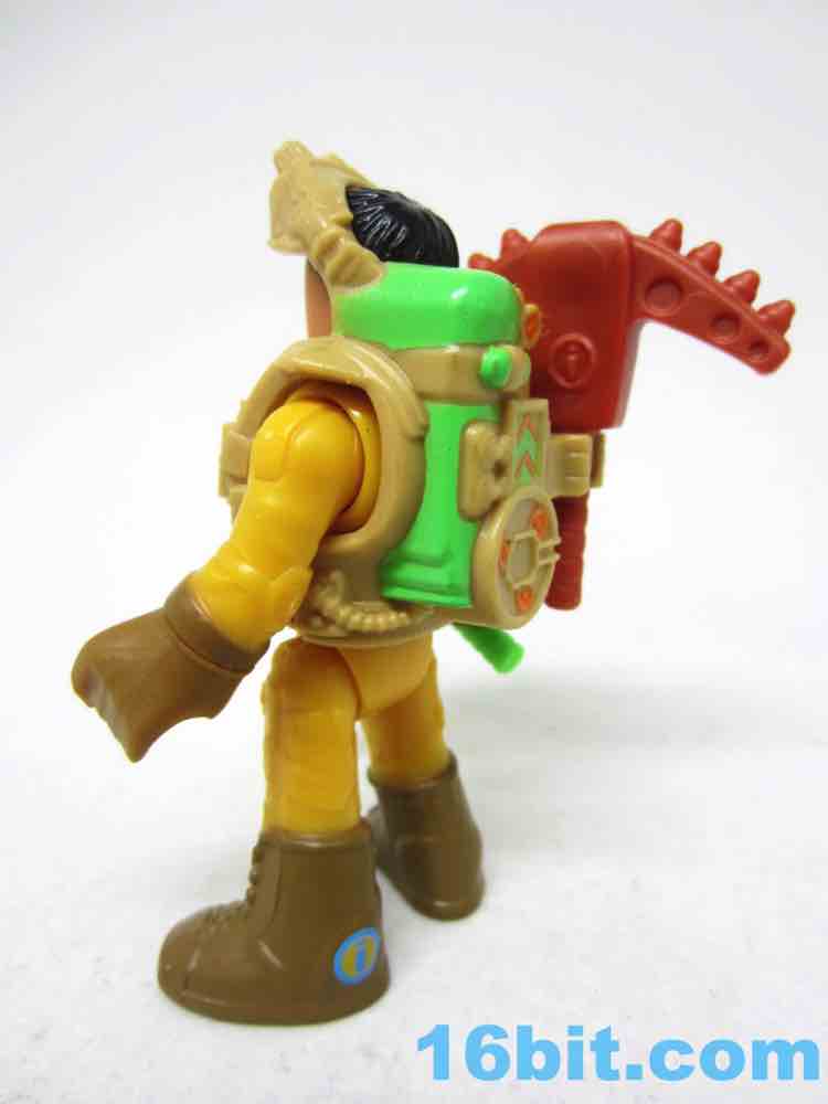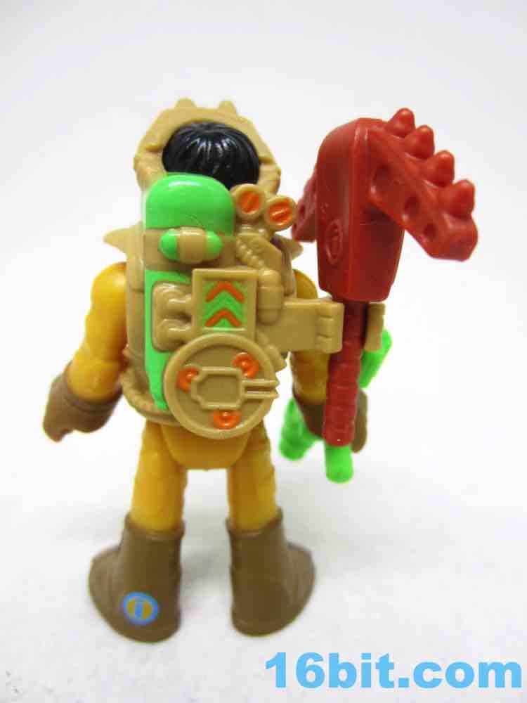 The 3-inch figure itself looks sort of like a rookie ghostbuster. He'a a little worried and the face seems a little thin with slicked (slimed?) down hair and no visible no-ghost markings of any kind. I'm a little surprised the Imaginext "i" was on the boot and not an arm band. Given its strangeness as a 1980s-themed-but-not-licensed character, which seems to be the norm in preschool lines, it's kind of great.