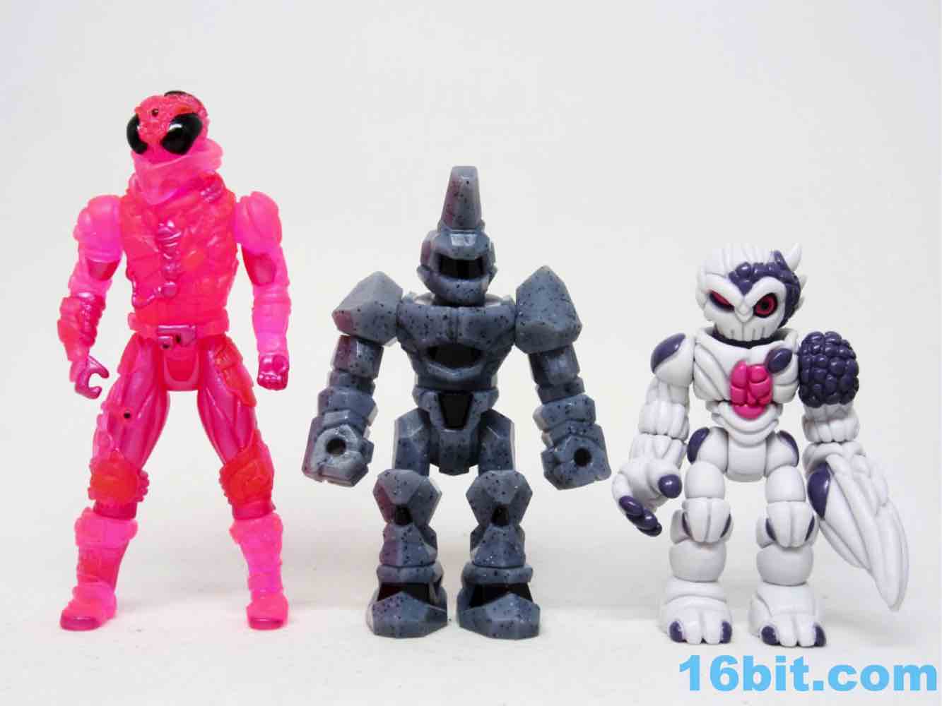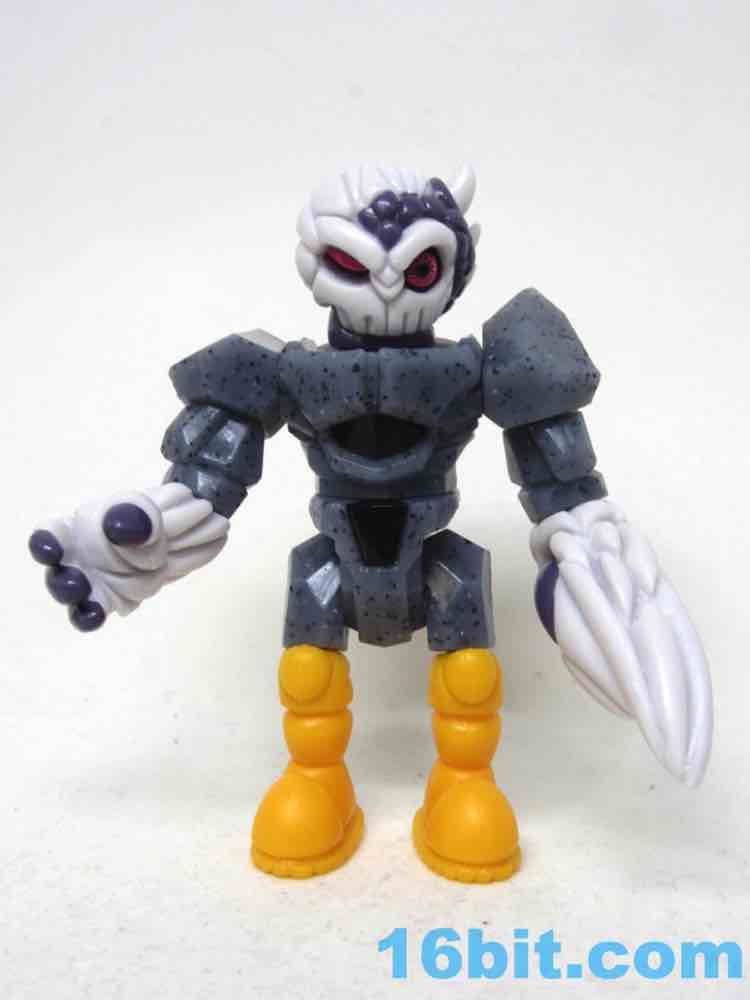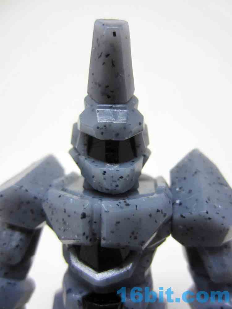 Standing 3 1/2-inches tall at the default horn, the figure sports 14 meaningful points of articulation and a rotating horn. You can swap it out for other Glyos parts, and for that reason it's quite customizable. Each joint pops apart, so you can yank off one head for another, or remove a fist and slap on a sword arm. The rocky sculpt takes the granite construction well, looking something like a toy made of a kitchen counter. I like this. Each forehead has a Glyos socket in it, so the horn or the plank can swivel around and drastically alter the figure's appearance and personality. If that weren't enough, the back of each head also looks like a head - so you can probably build a rather diverse army out of this single figure, just like that first Weaponeers of Monkaa action figure.