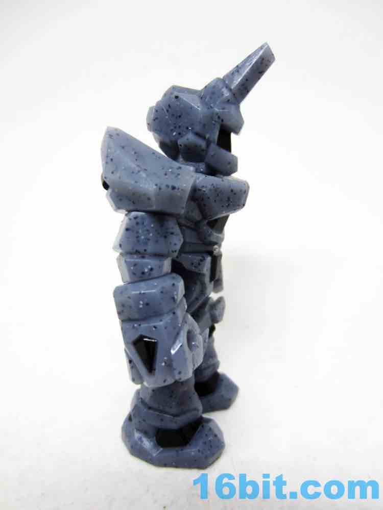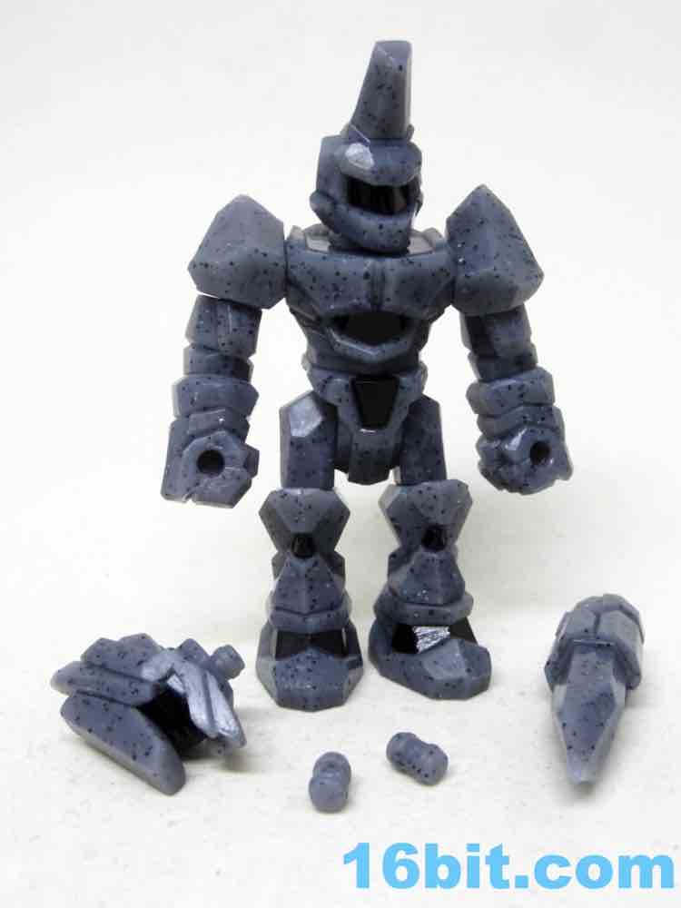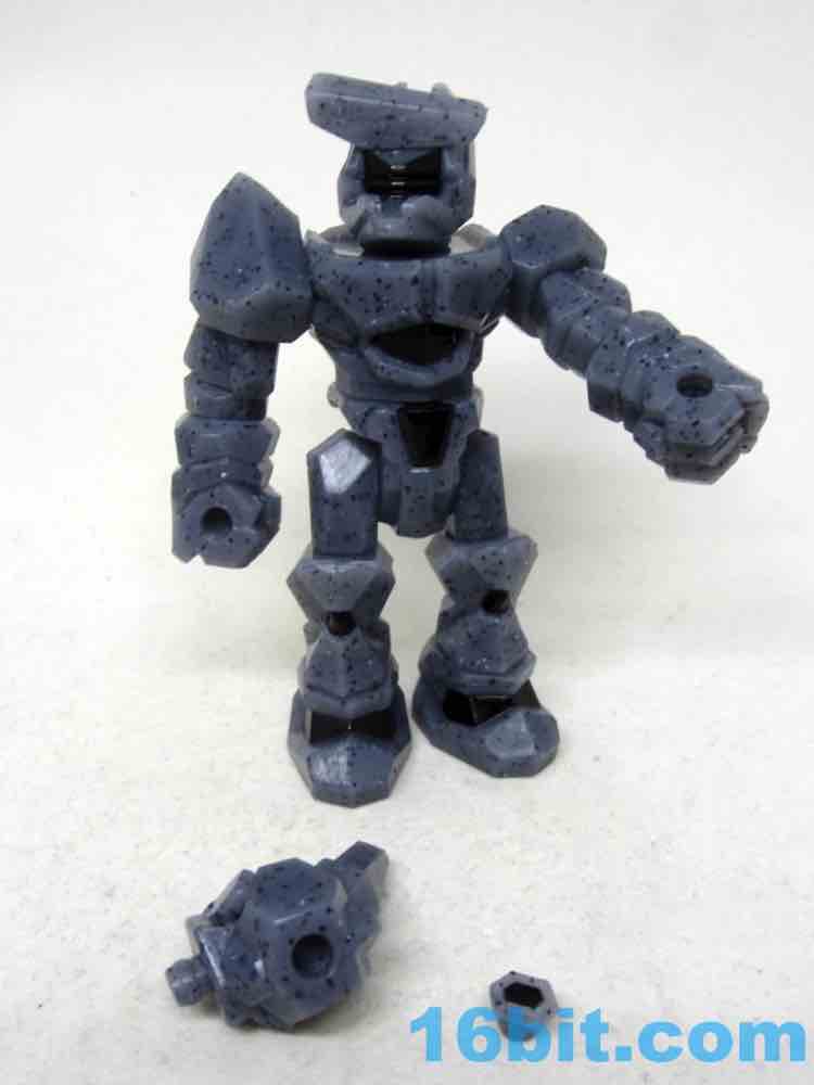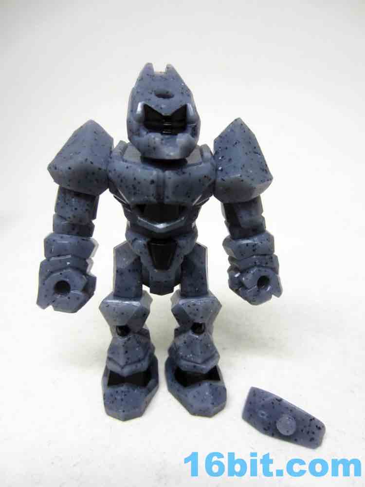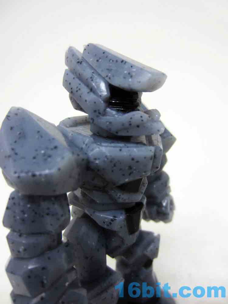Thanks to the backed-in speckles in the plastic, no two of these guys are going to look exactly alike. The grey plastic has been accented with paint in quite a few spots, like the hands and feet and head and torso. The shoulders can be flipped around too, The back of the horned head has a panel you can pop off too. The customization possibilities baked in to the design are almost daunting, with a marvelous default figure that you can choose to part out, tart up, or swap with other figures.