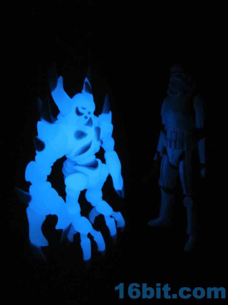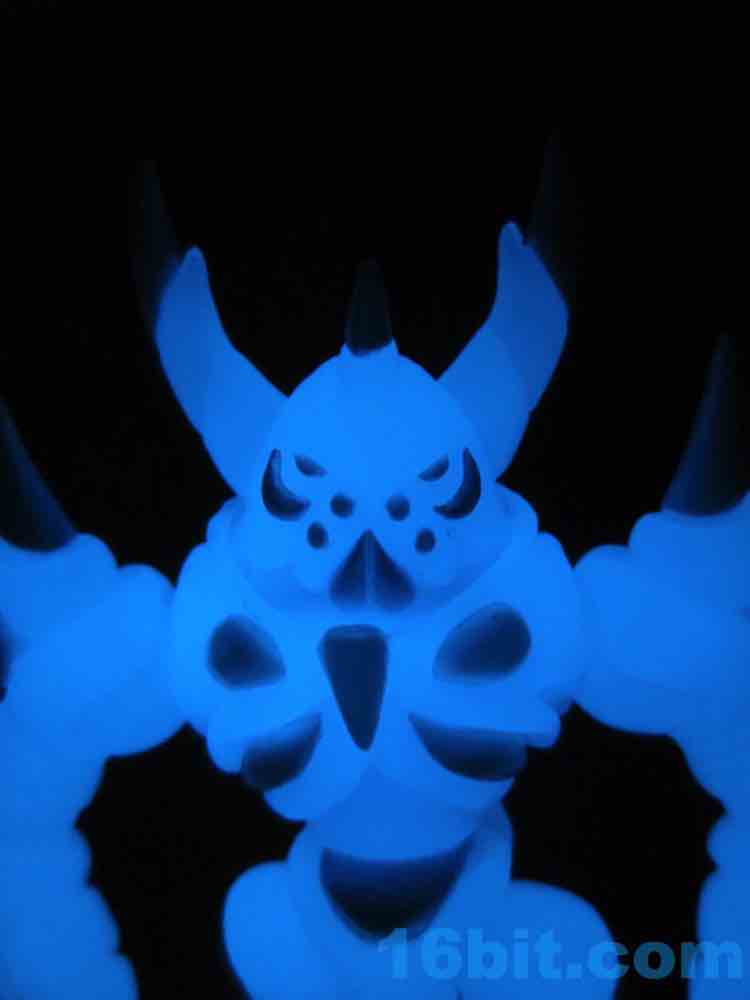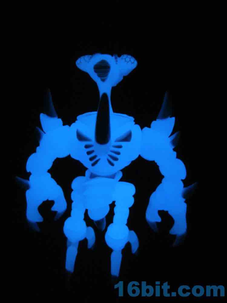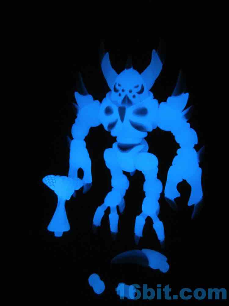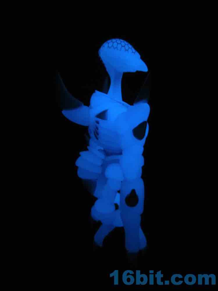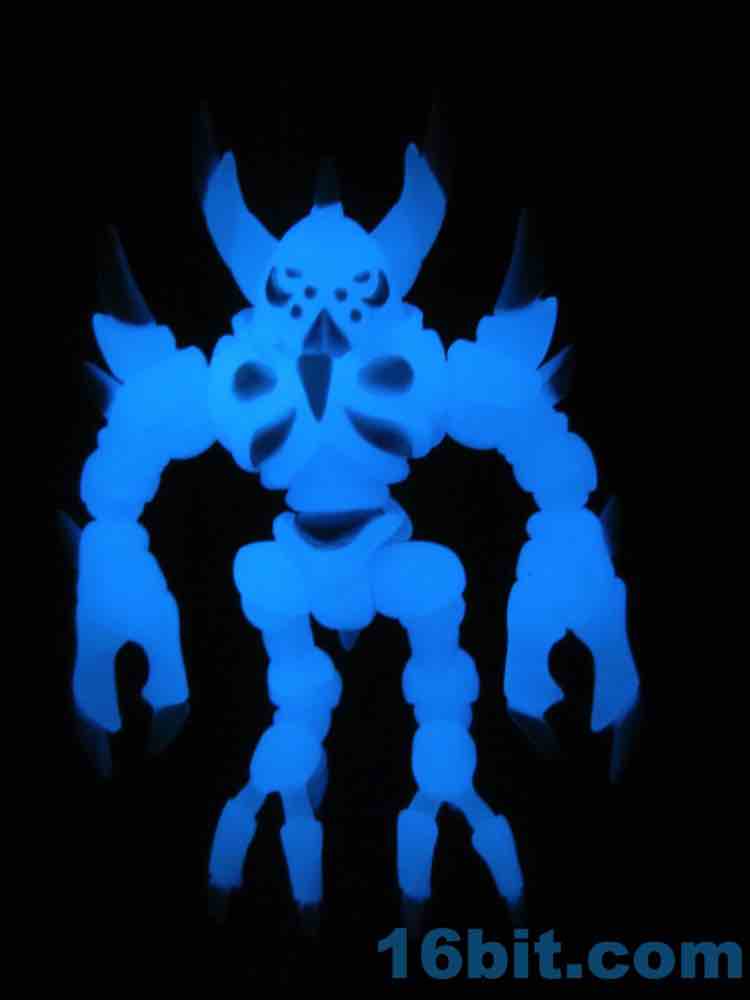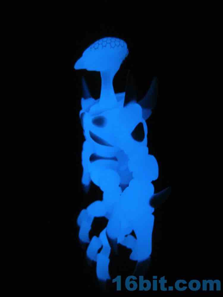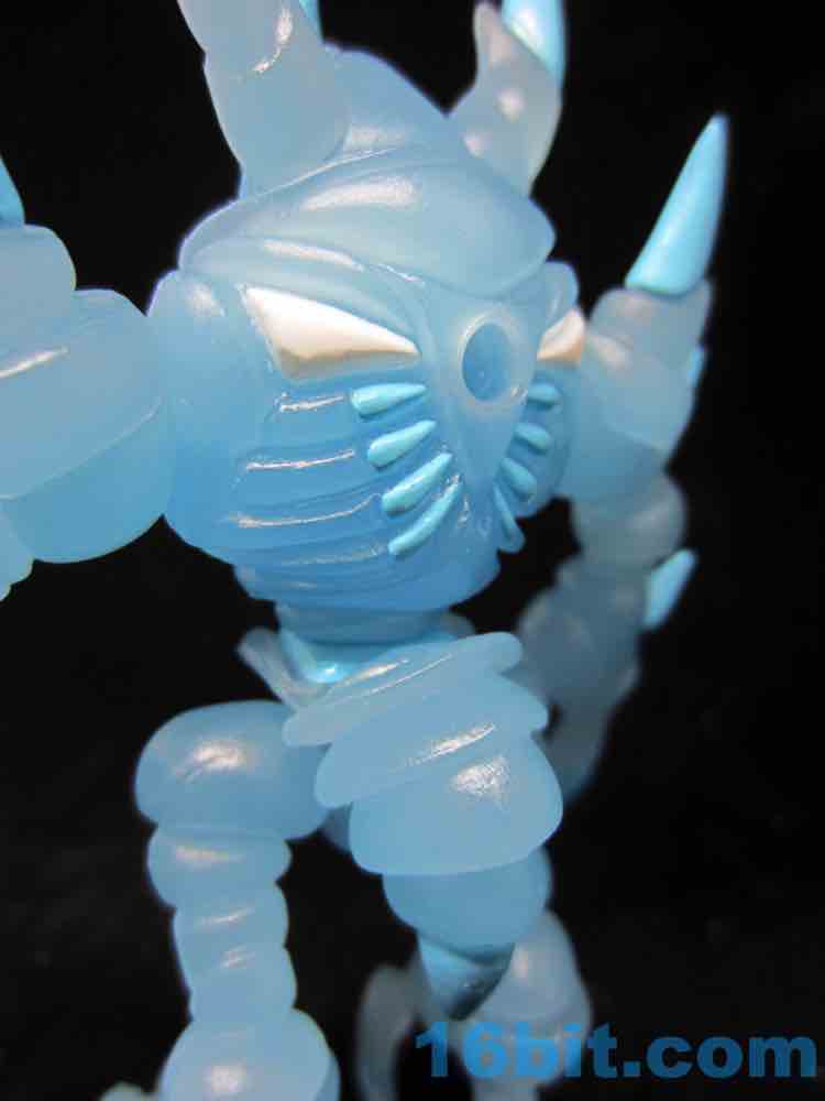 I snagged the blue glow-in-the-dark Cerulestar Nemesis from TheGodBeast and it was the very first officially released blue glow Glyos-compatible action figure, along with Kabuto Mushi. I had not previously snagged a Nemesis (I still want to get green glow) - so this seemed like a good place to get one. The translucent coloring has blue and white painted highlights that are very nouveau Boo Berry, which is amusing as Marty's "Cereal Monster" colored figures look a bit different than this one.