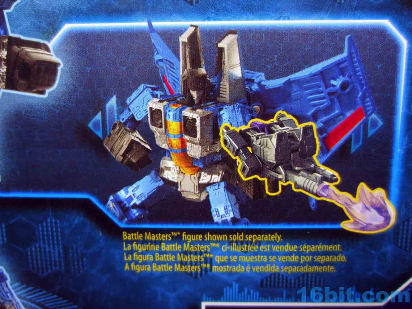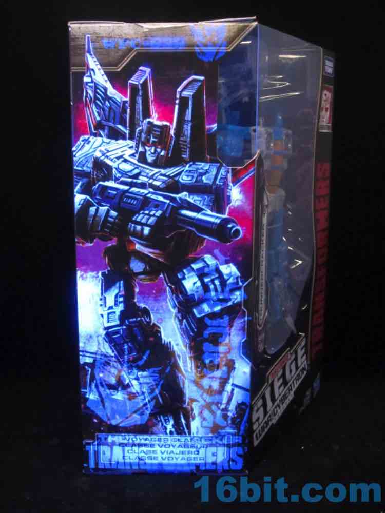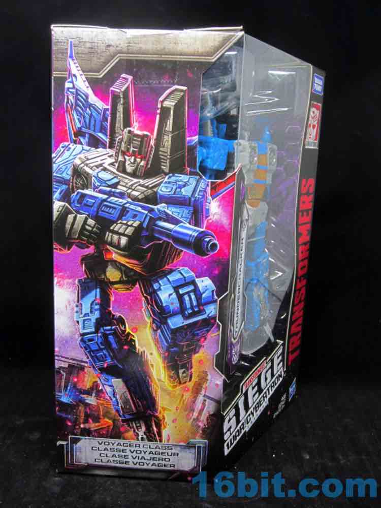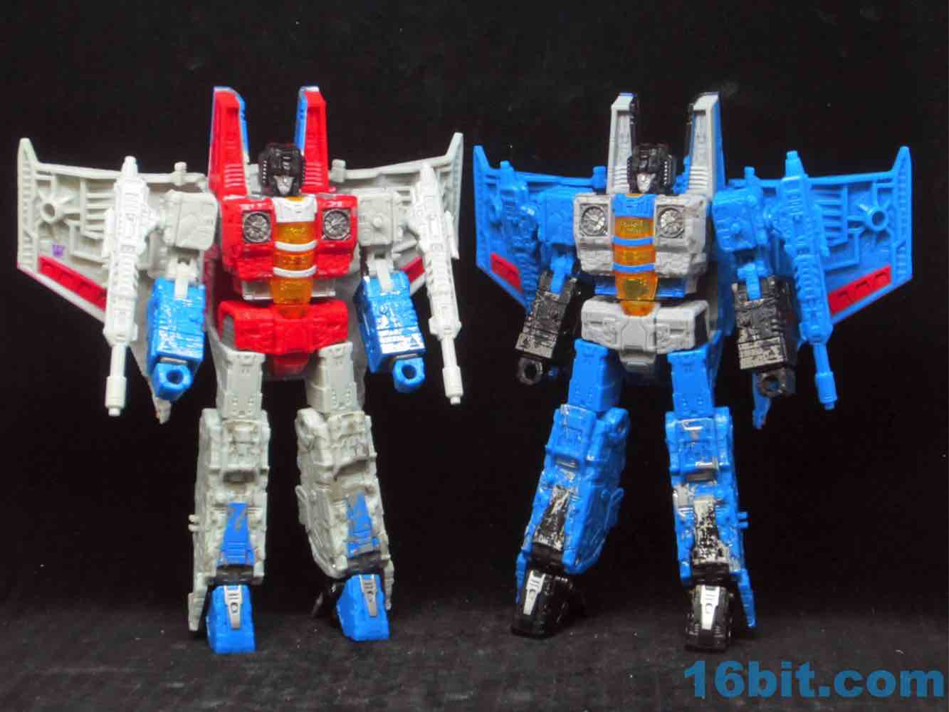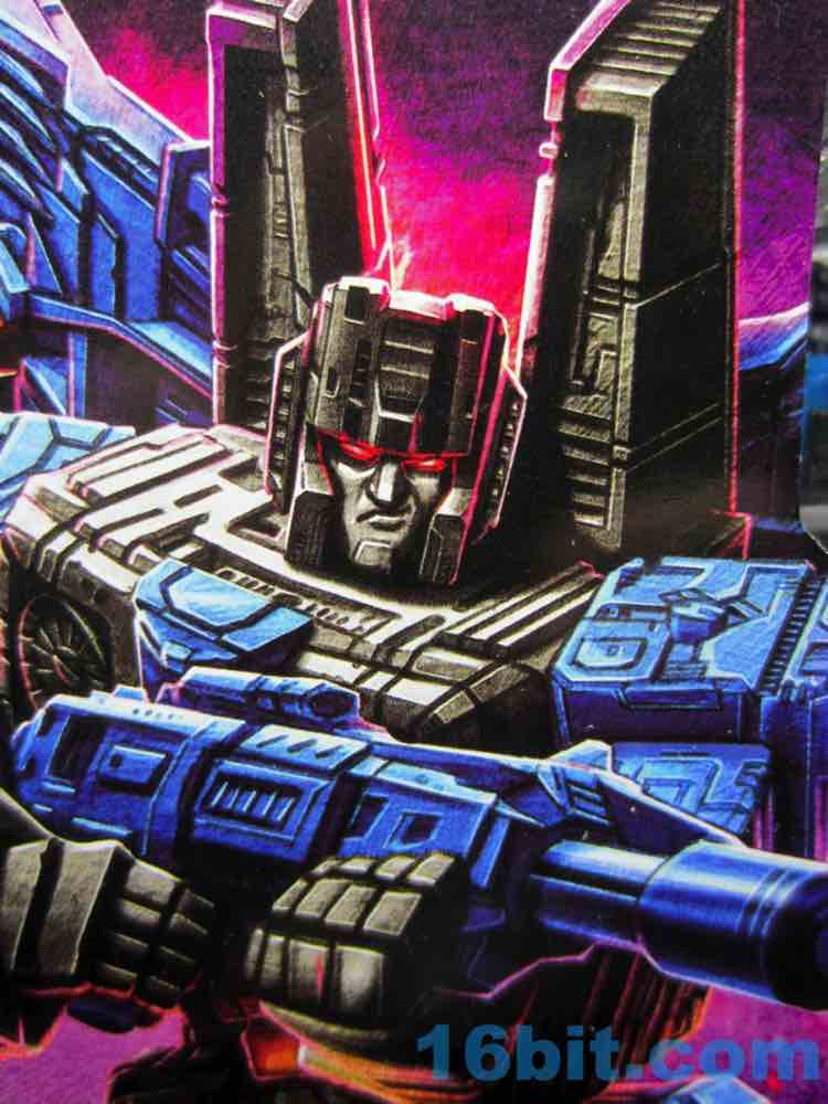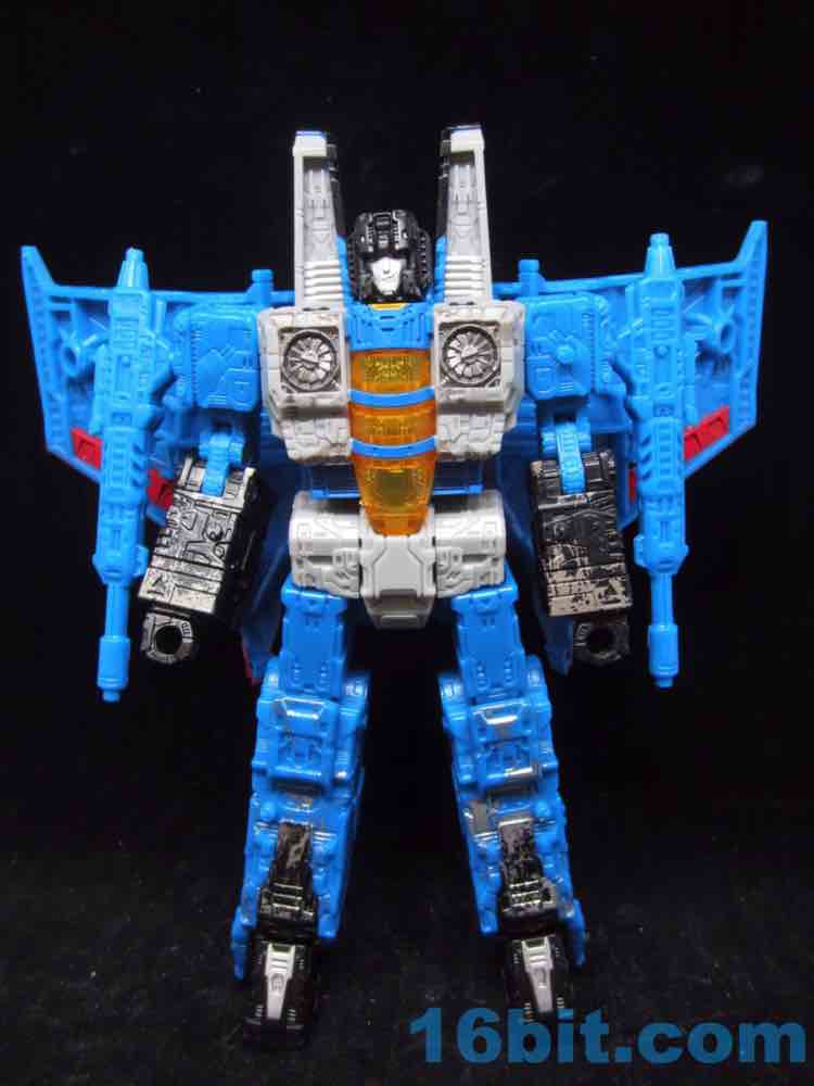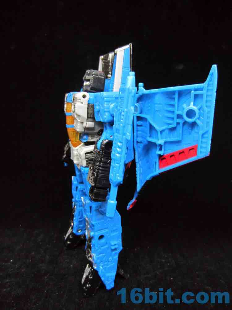 At a hair under 6 1/2-inches tall at the head, the figure is largely the Starscream repaint you expect. I doesn't have the Decepticon symbols on the fronts of the robot wings, but it does have proper G1 symbols on the back (also visible in plane mode.) The coloring looks great, and I'm very fond of the articulation and transformation. Rotating wrists still aren't a given in this line, so having double-jointed elbows and multiple hip and thigh joints makes it a lot of fun to pose. Also it's sturdy. And you get tilt ankles.