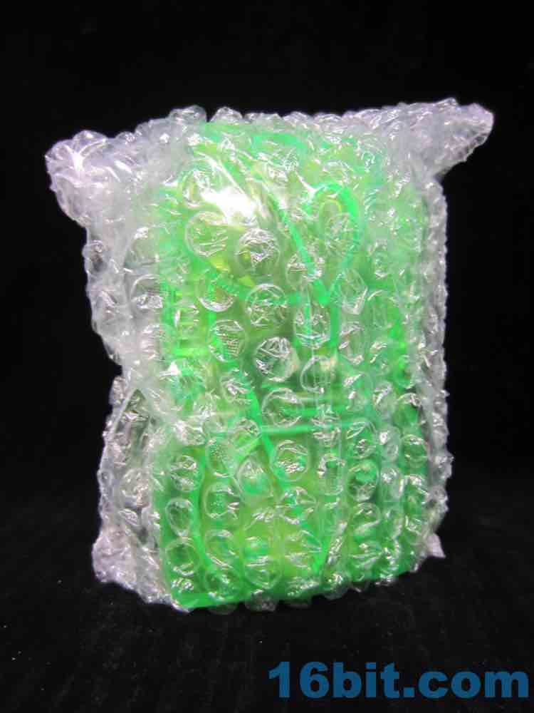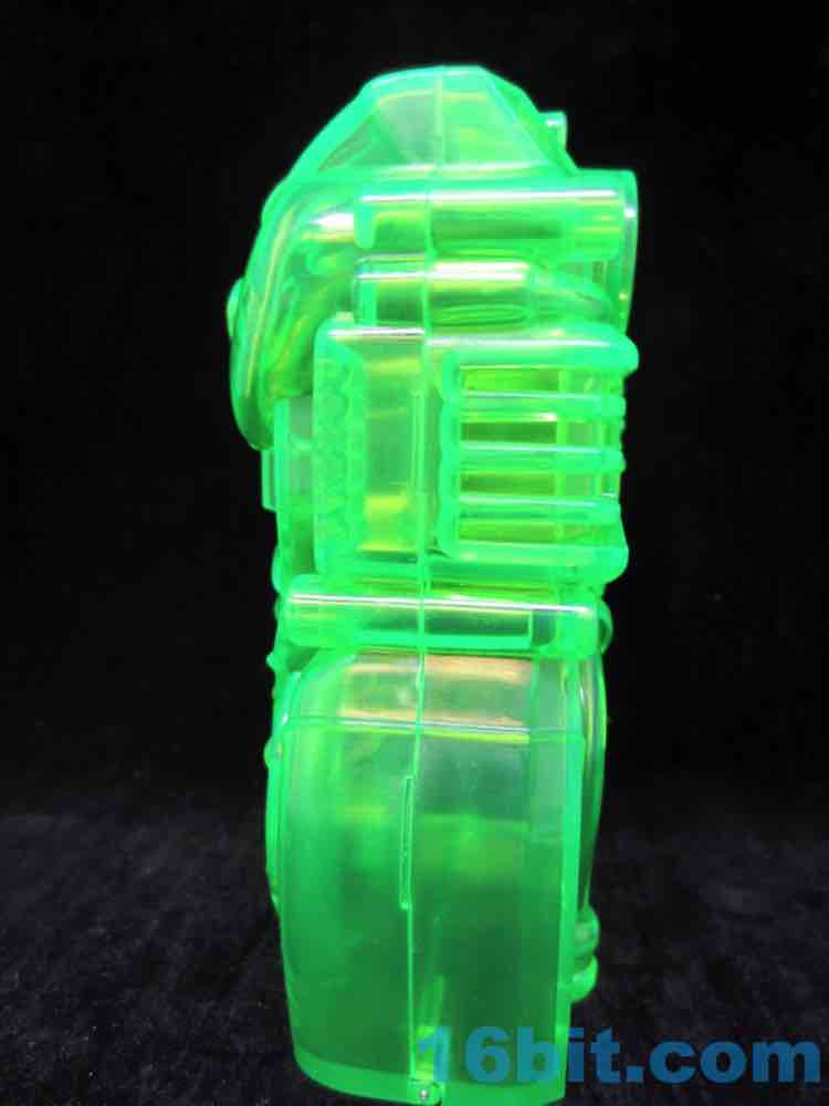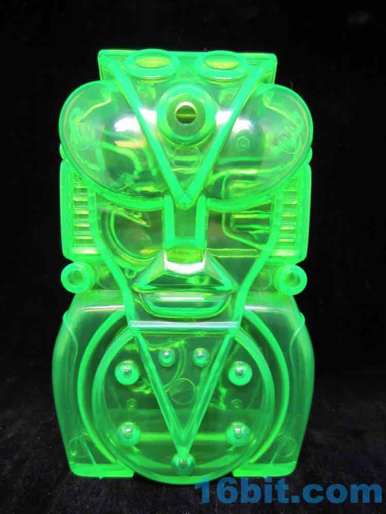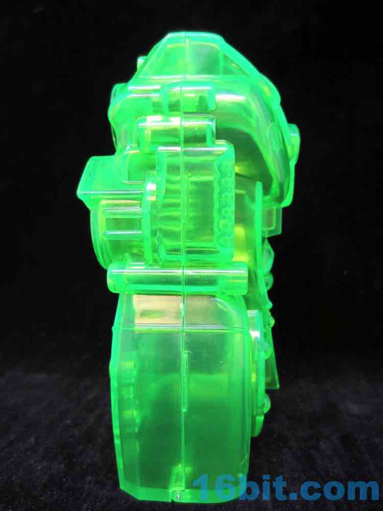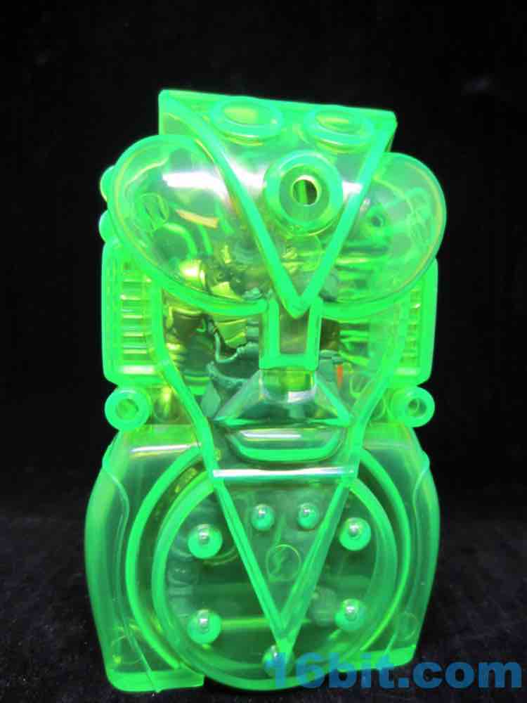 The green color closely matches previously released Glyos figures, particularly the "Lime" ones from Knights of the Slice. The plastic is nice and clear, with a tiny bit of distortion around the eyes.