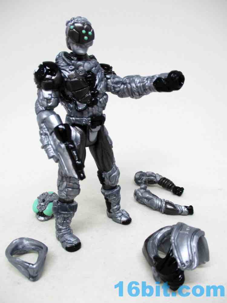 This figure applies Matt Doughty's "Renegade" stylings of strange cybernetic rebels with the Toy Pizza 3 3/4-inch action figure format, giving you a figure that tends to fit in well with his comrades despite being taller. There's a symbol on the shoulder that matches up with the others nicely, and the silver with grey-and-more-grey works nicely. I would argue the shoulder armor doesn't really fit well, but it's not like anyone is forcing you to use it.