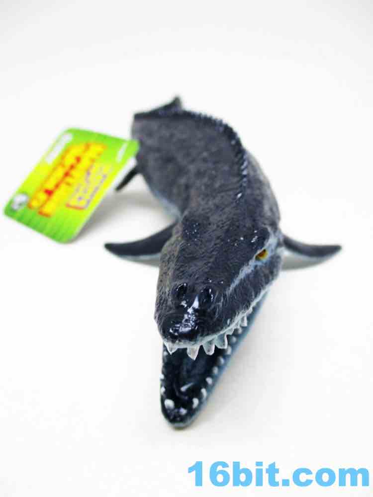 There are bins of surprisingly good dinosaurs like this one, measuring a decent size for the price. This 10-inch long sea creature is priced comparably to a Hot Wheels car and comes with a fairly generic "Nature World" tag with a UPC and no identifying information.
