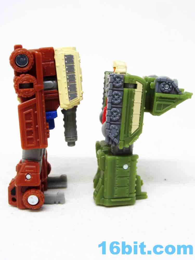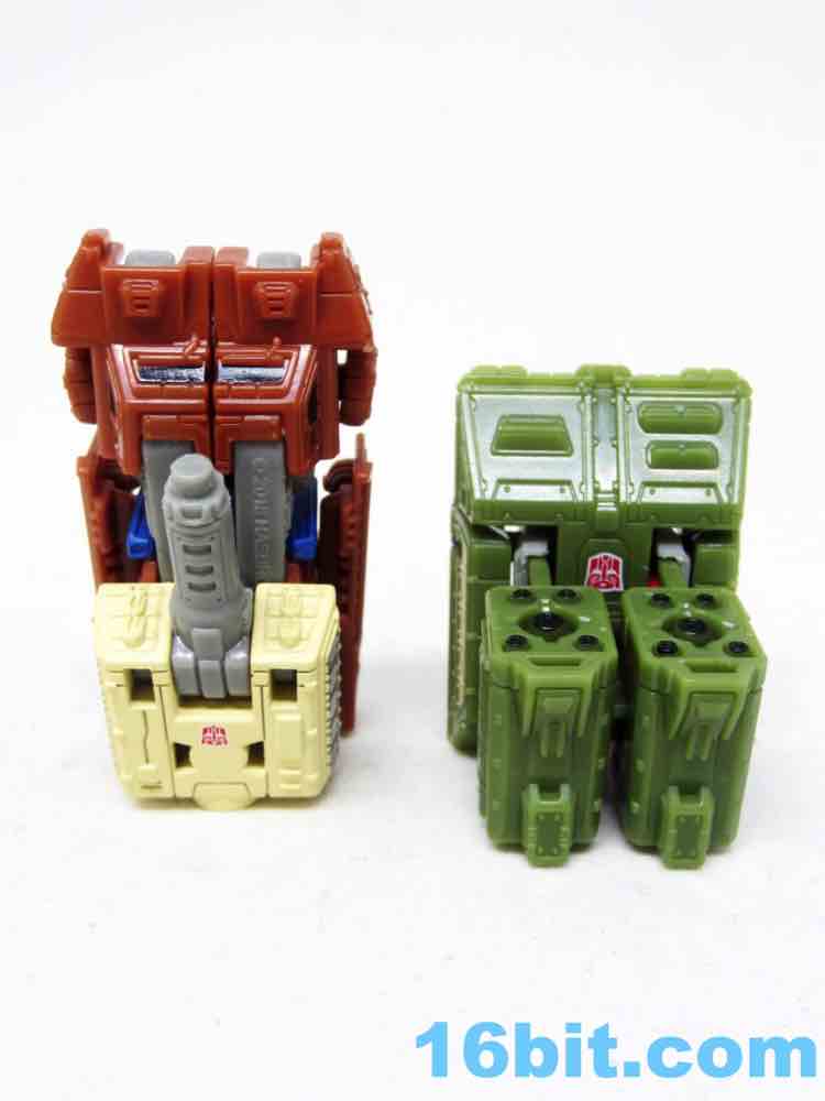 I was a little excited to see Micromasters on the docket, but I didn't get many as a kid - Transformers was ancient by the time of the first big downsizing and characters like Autobot Topshot and Flak never made the TV show or comics in any meaningful way. With no faction symbols they were a little more generic, but surprisingly sturdy - the new ones are not as sturdy but they have added blaster modes. The originals are a little more colorful and have less of a range of motion, but are functionally very similar in most respects.