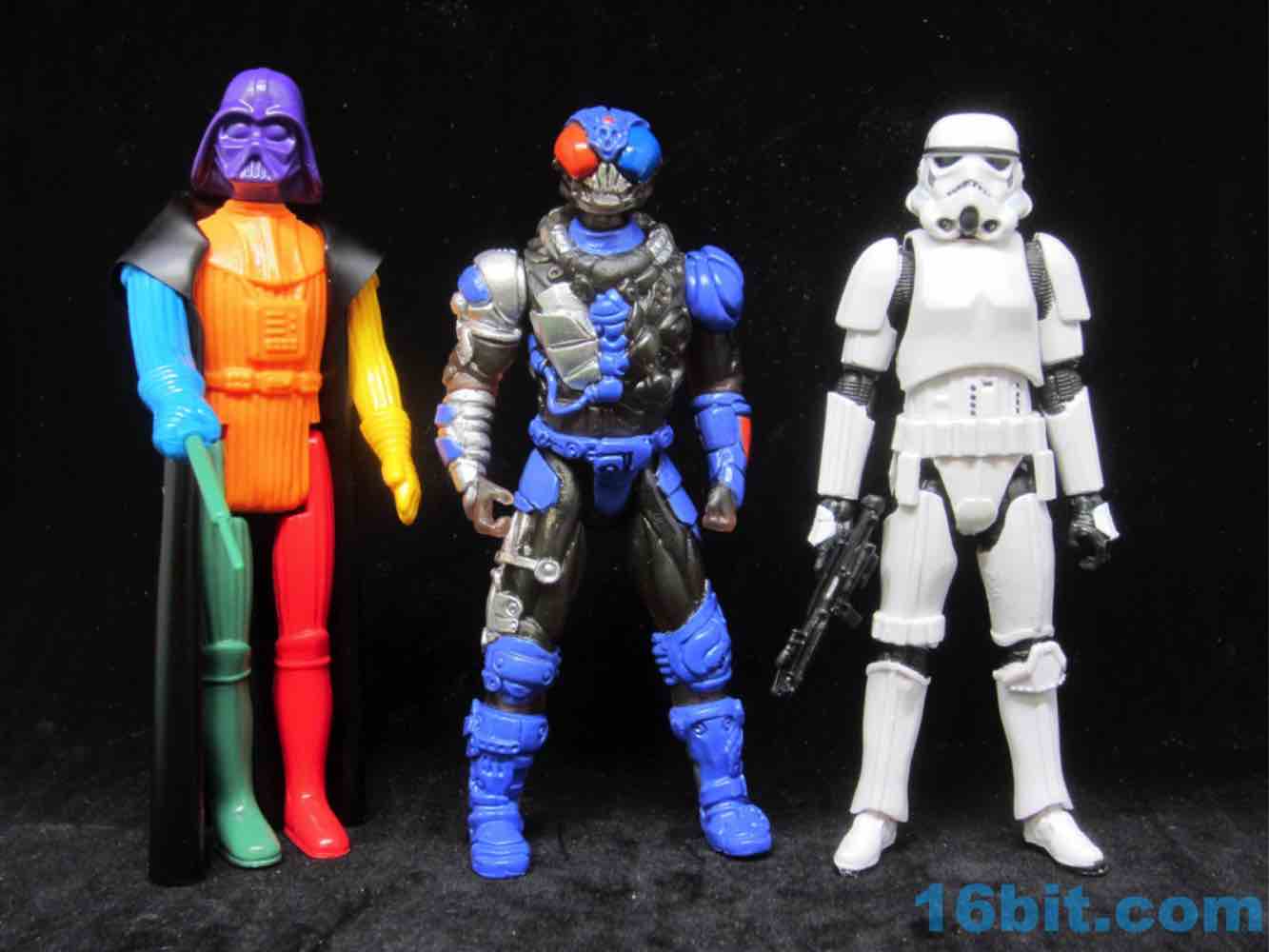 I don't own too many Toy Pizza figures, but I like the 3 3/4-inch figures a bunch. The Rift Killer Cola Action Figure enough to want the mold again - cola-colored clear brown plastic is wrapped in silver, red, and a couple of shades of blue that may recall Pepsi and RC Cola packaging. It also provides a nice counterbalance to the Nuka T-51 Power Armor [FOTD #2,061] as far as continuing the cola wars goes.