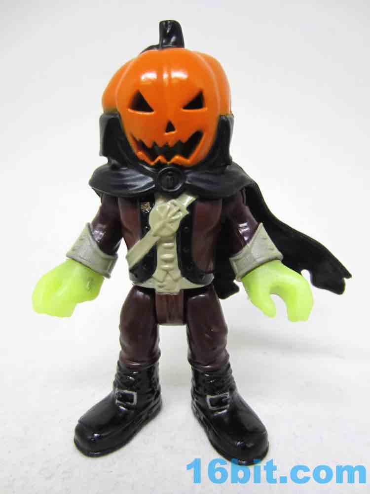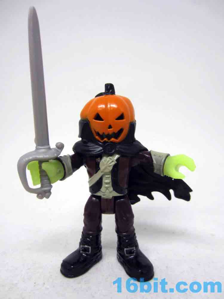 I stumbled on a lot of clearance Imaginext earlier this year, and sat on the Headless Horseman for Halloween. It's a ghost, with a pumpkin head. It glows. It was inspired by an important early piece of American literature that schoolkids learned back when I was young. Maybe they still do? First released a few years ago and possibly languishing in drug or grocery stores near you, this 3-inch figure has a big pumpkin head and glowing parts - in other words, it's ideal for the season of begging for candy.