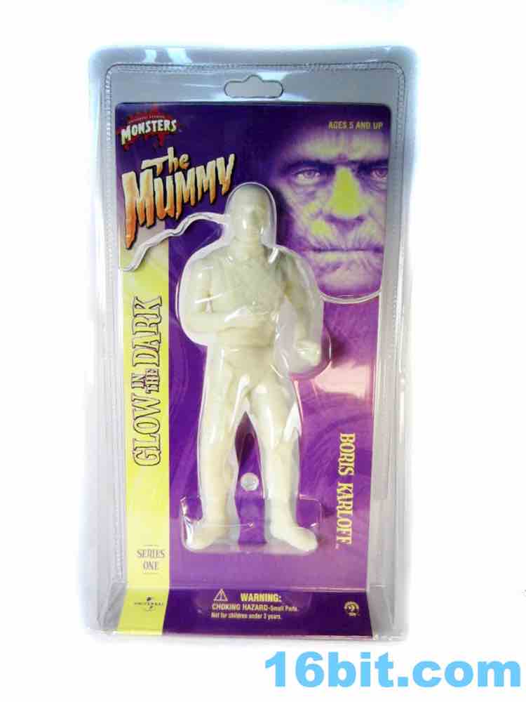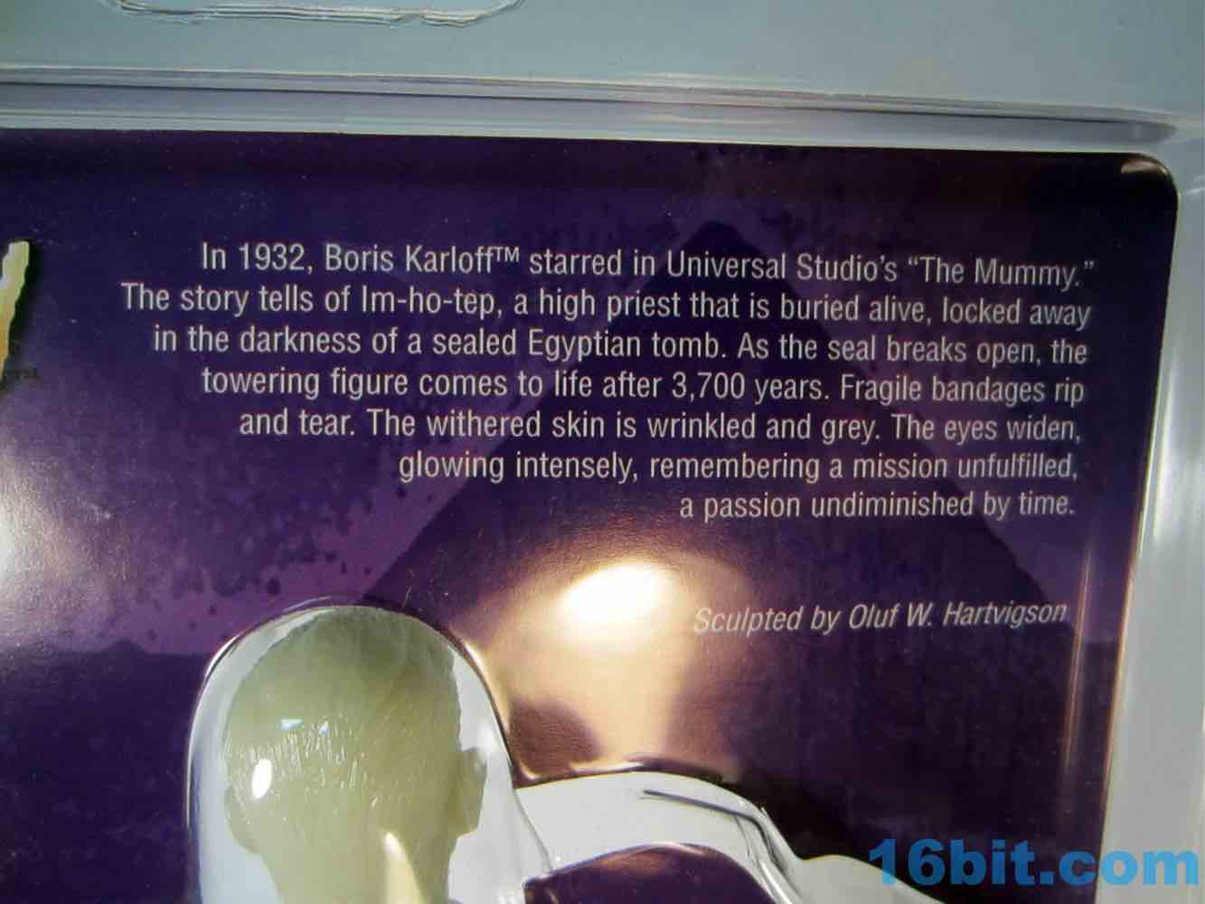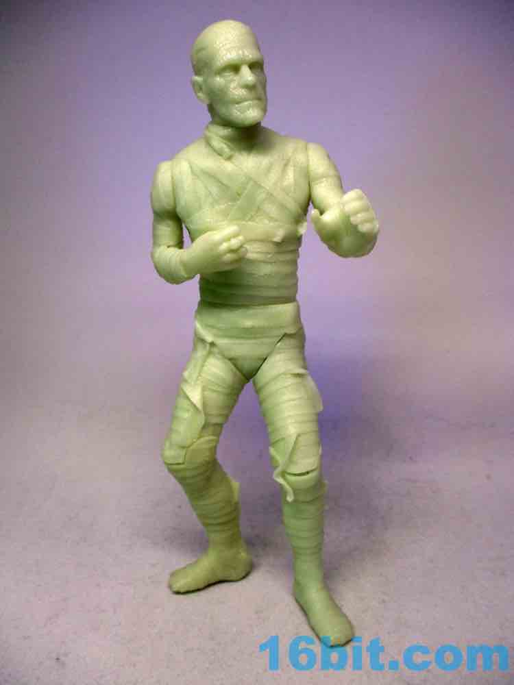 Before I worked at Entertainment Earth, I won this Boris Karloff The Mummy Glow in the Dark action figure at their Comic-Con booth in a trivia contest round 2003 or 2004. I believe it was "Who was the actor that was in the Lord of the Rings radio drama and the recent movies?" I had the painted version of The Mummy, so he stayed in his packaging for over 10 years before I finally opened this one up. It's the same great sculpt as the Sideshow Toy action figure that was sold in Target stores - and truly, those were amazing values in the late 1990s - but it has no paint, no accessories, and clamshell packaging. I like it.