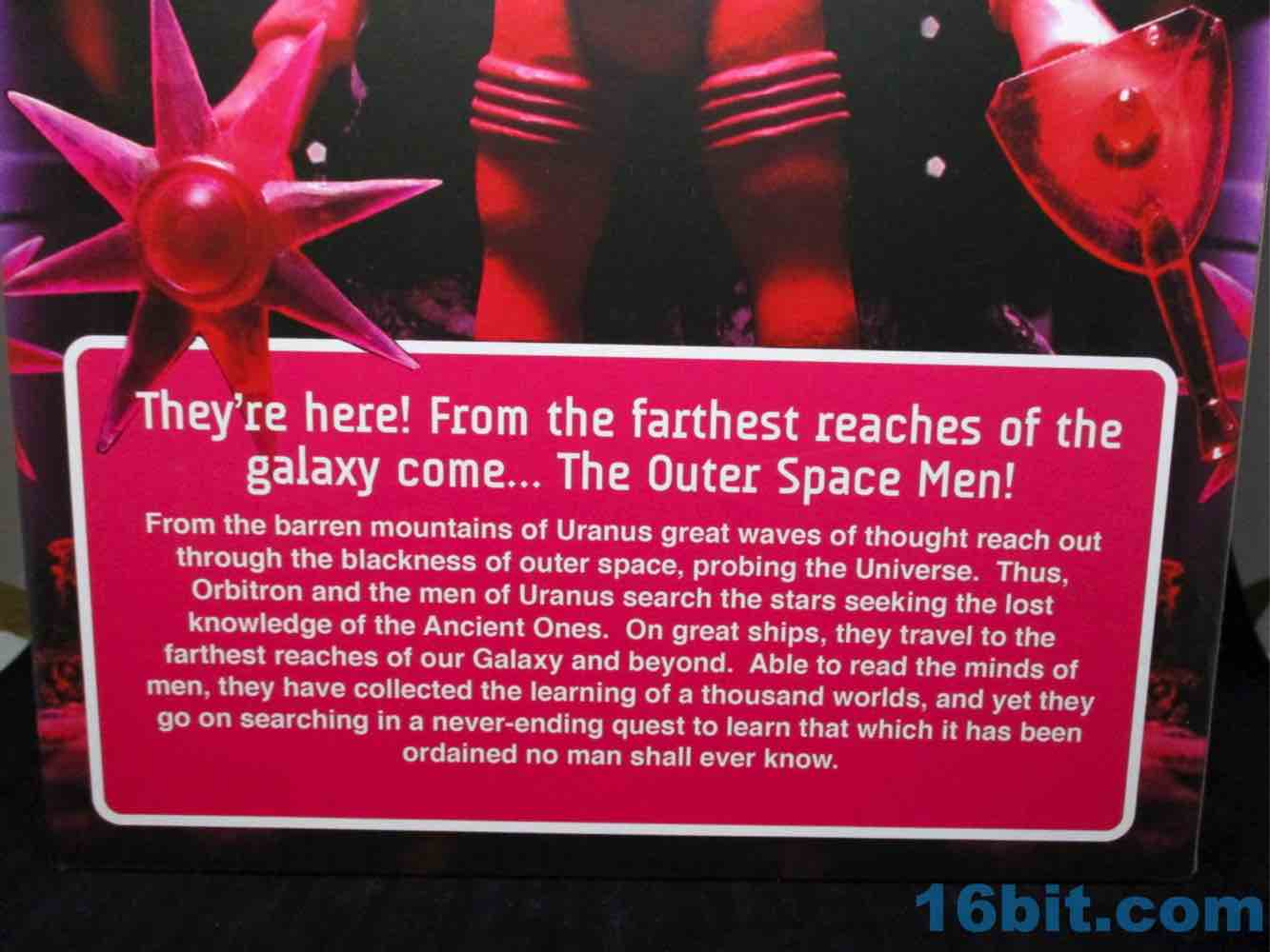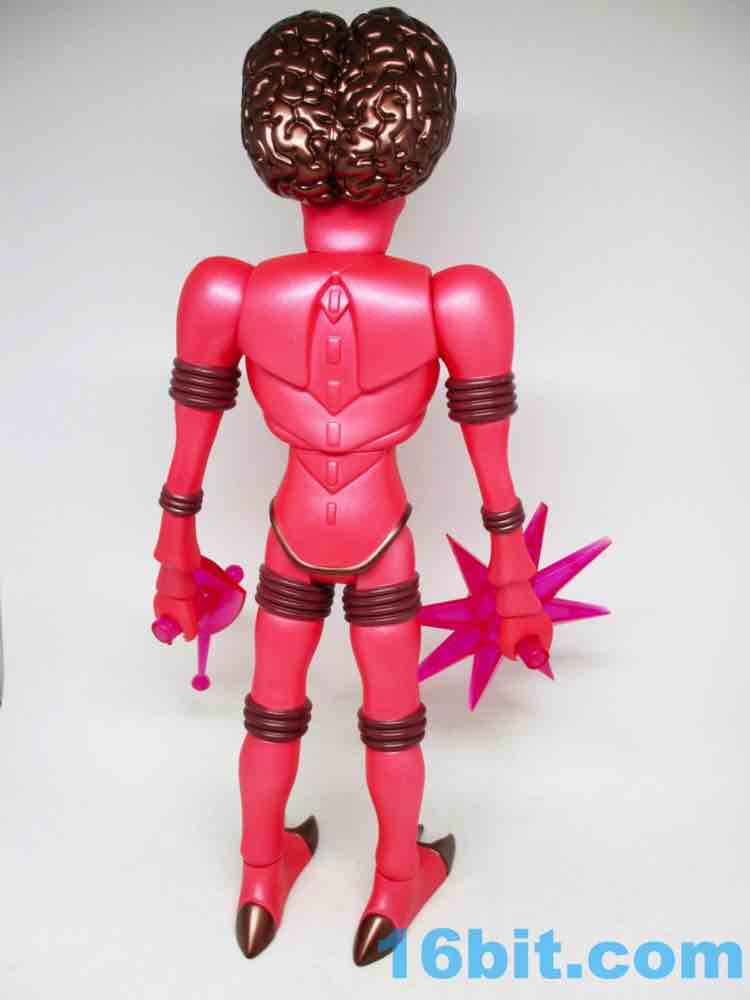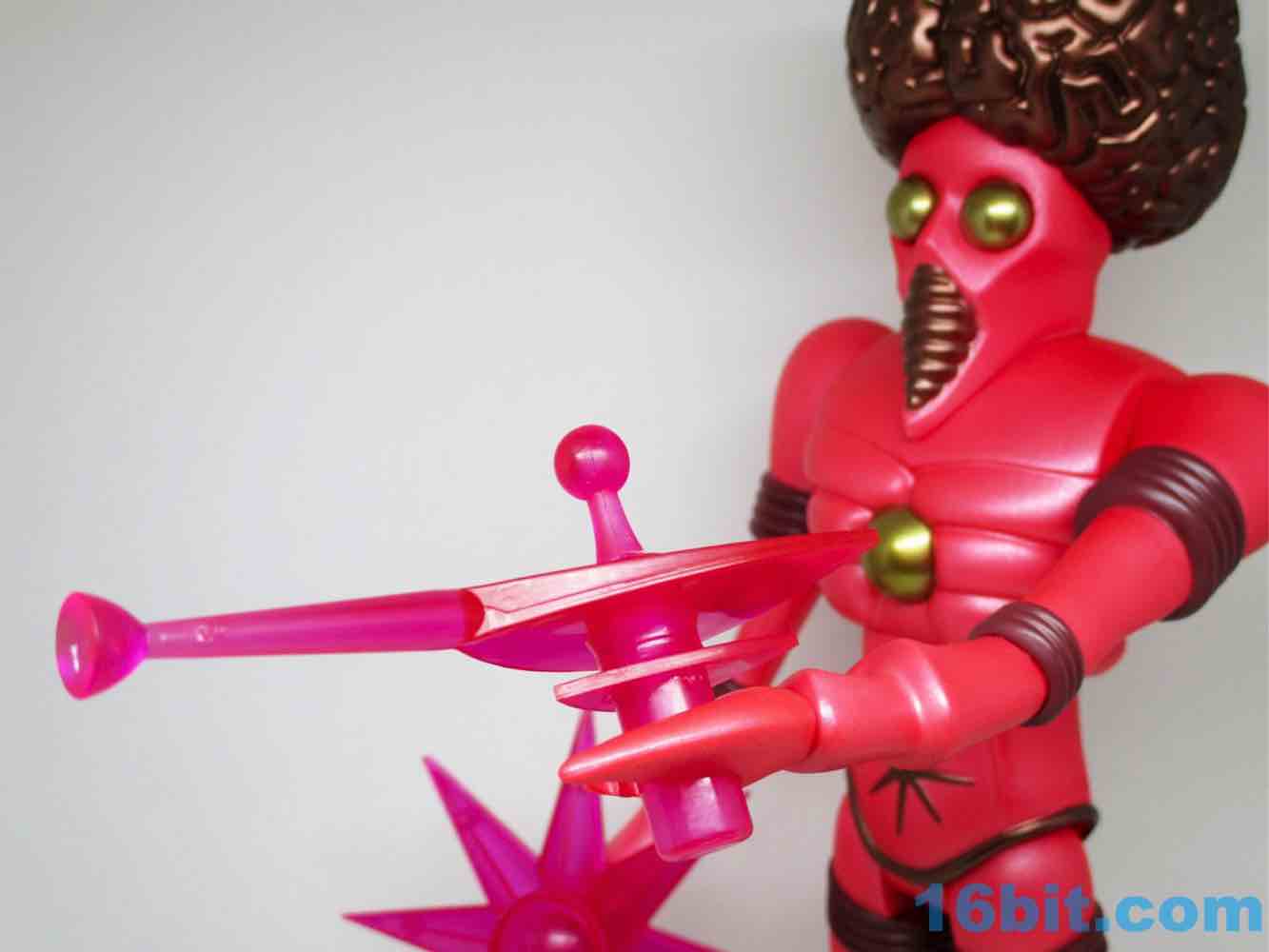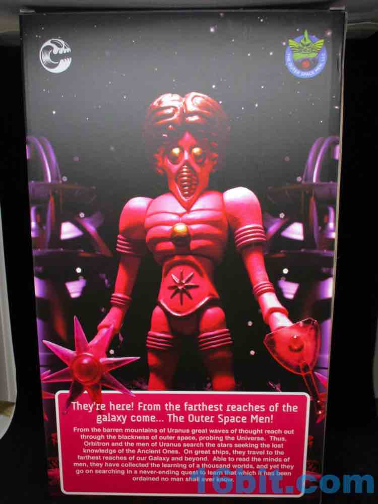 One thing that was pointed out to me that I had initially missed is that these are similar-but-not-identical to the smaller figures. There are minor deco and color differences between this 12 3/4-inch behemoth and the Four Horsemen Outer Space Men Infinity Edition Orbitron Action Figure [FOTD #640] from 2013. For starters, it's bigger and there are always batch changes between colors, but team OSM intentionally altered the deco in subtle ways so it isn't the same as the 1969 original or the smaller figures. Orbitron's skin has a metallic, almost glittery tint to it. Weapons are a bit more magenta on the bigger figure.