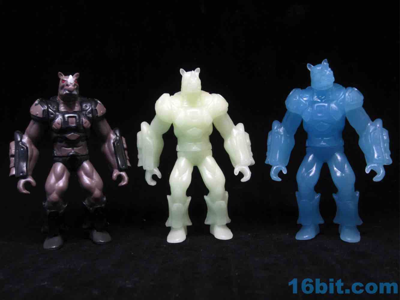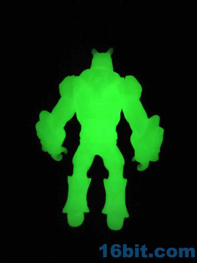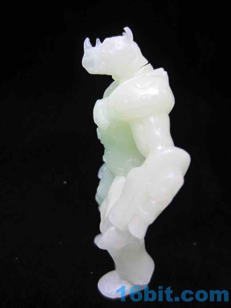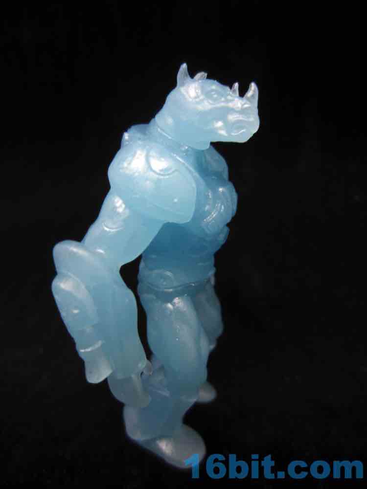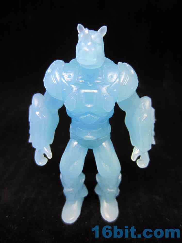 The molds are the same as you may have bought five years ago, with four points of articulation on the Rhino and a fifth for the Scorpion's tails. The heads pop off, as do the arms, as do the legs as a single unit at the waist. The modernized Battle Beasts-ish figure has the same detail as before, but most glow plastic tend to such out the detail thanks to the properties of glowing PVC. It's a little translucent, a little milky, and the light doesn't reflect off as well as on opaque or painted figures. As such, you're basically buying this figure because it's going to glow in an impressive way.