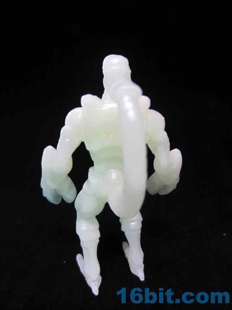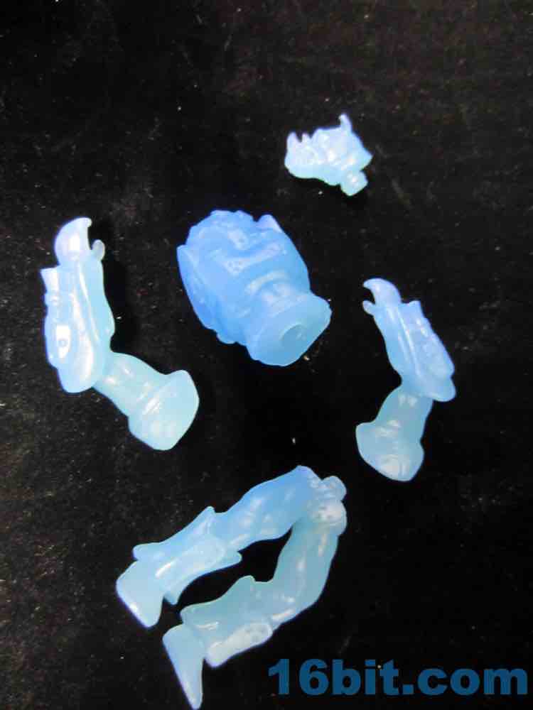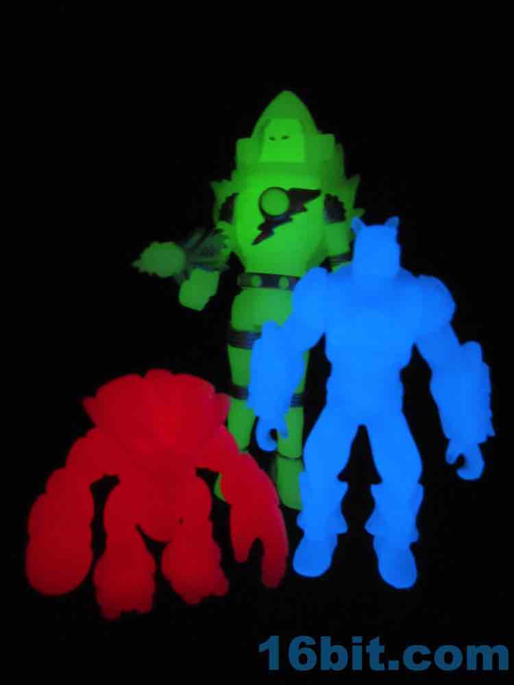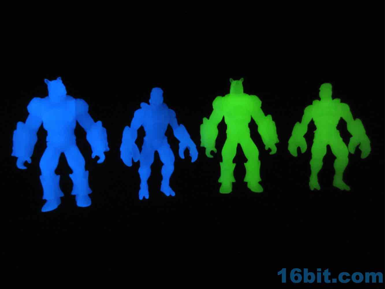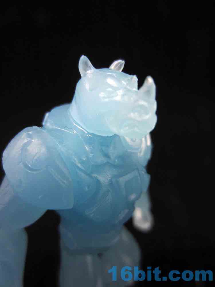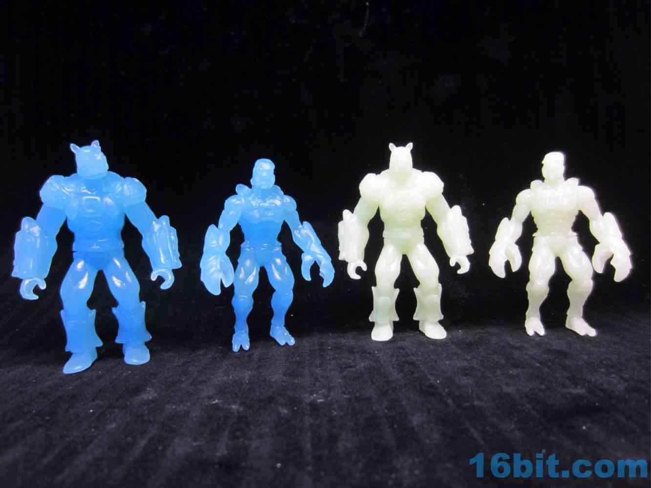Not only was it the first-ever glow-in-the-dark Rise of the Beasts figures, but it may well be the very first (that I saw, anyway) mass-produced glow-in-the-dark blue glow PVC Glyos figures. (Or maybe I missed one somewhere.) There was a blue glow Z.O.M.B.I.E. set [FOTD #751] from October Toys, but the plastic was much less saturated and the glow showed up best under direct black light only. These new guys are obviously blue, a milky-blue color that may remind you of those early GameBoy Advance consoles.