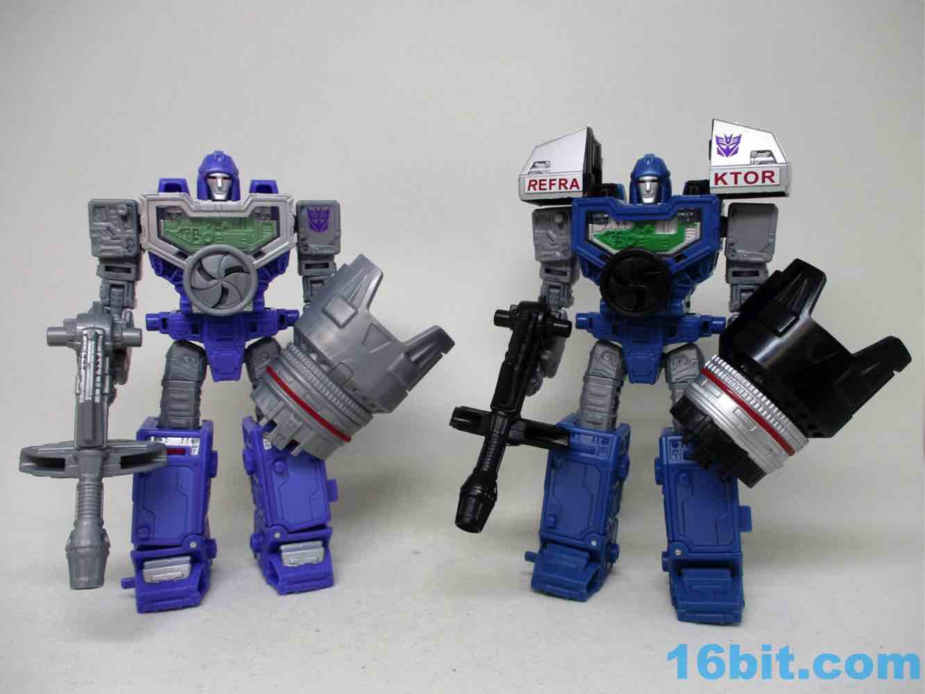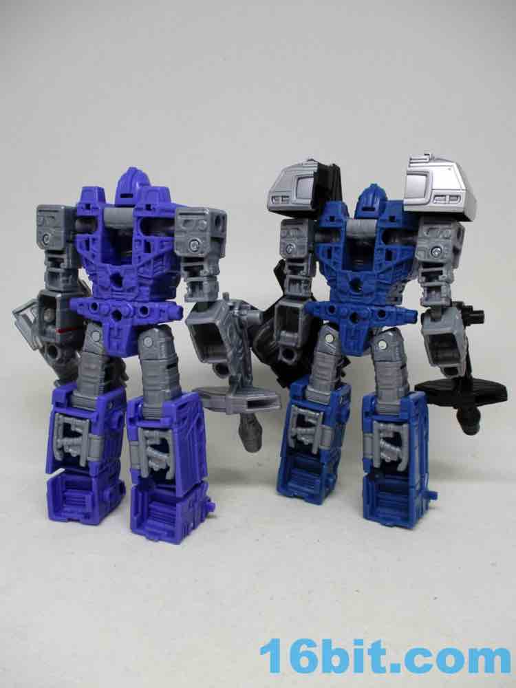Each element of Refraktor is colored differently to match the individual characters Spectro (red chest), Spyglass (the darker purple one with the yellow chest), and Viewfinder (the lighter purple one with the green chest and shoulder kibble). The core toy is the same throughout - they just have different add-on kibble and colors to distinguish them. The original G1 toys also had some unique heads and other elements, but the new one doesn't really. The base figure is also shared with basic Refraktor and since we already reviewed him, all you need to know is that this is just as good with more and different colors.