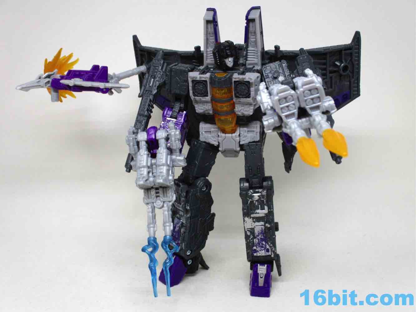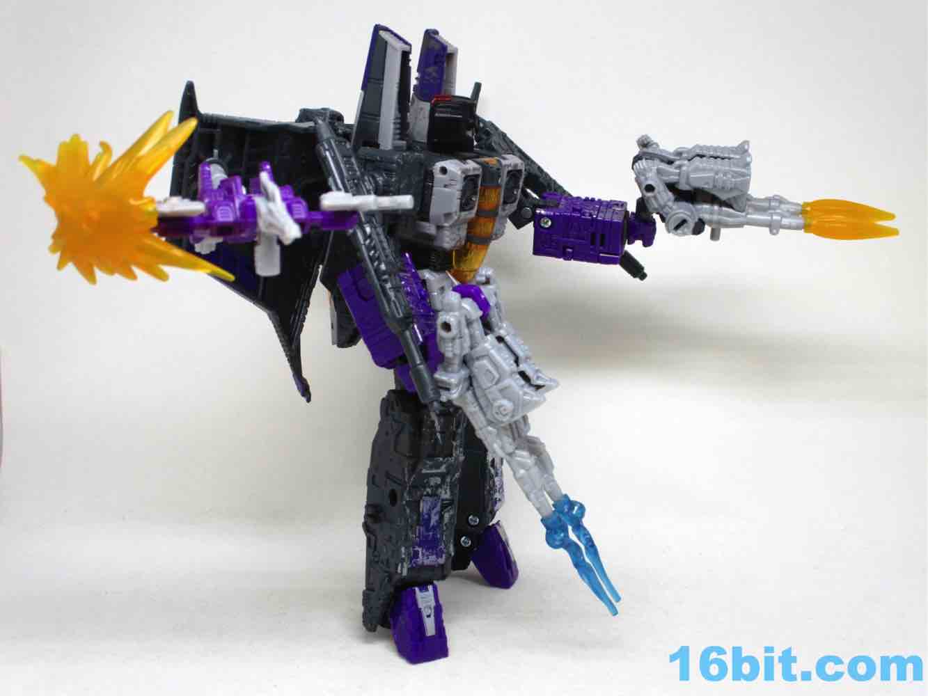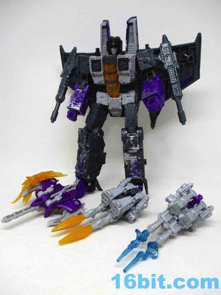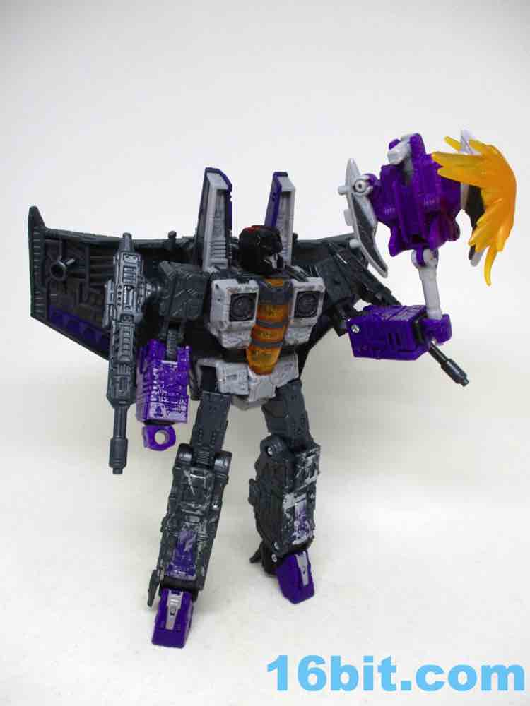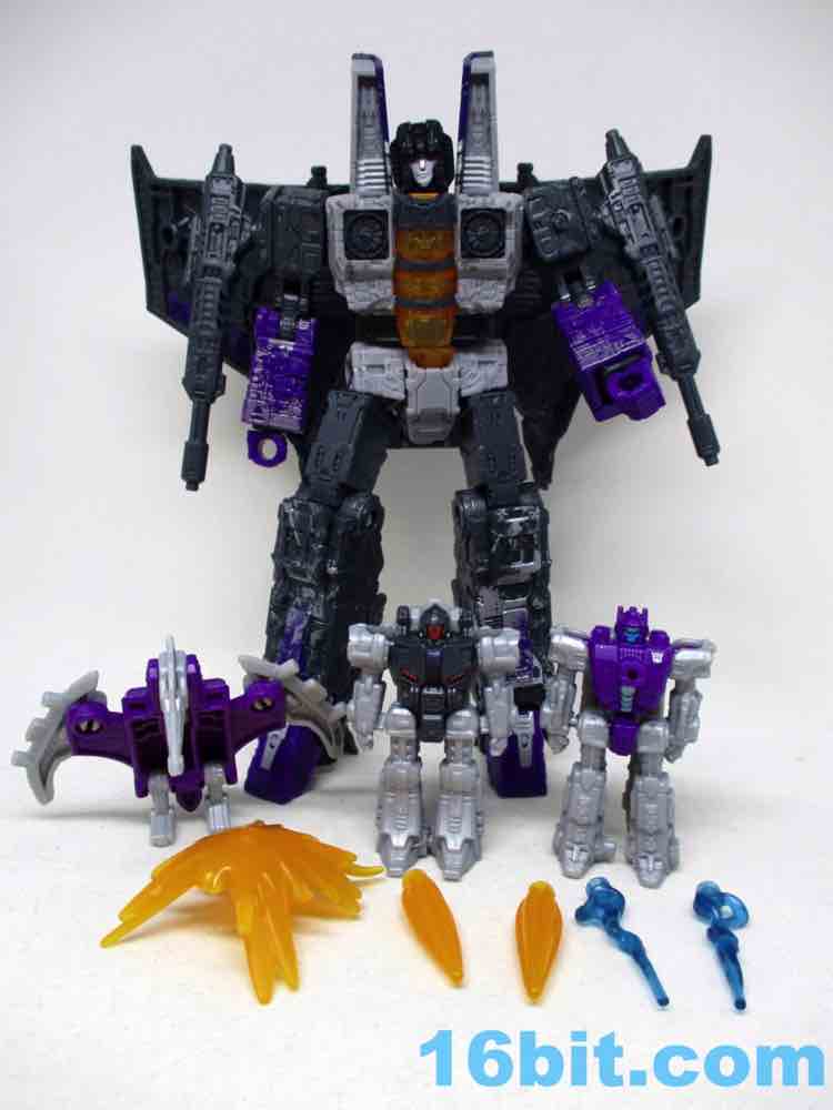 It's a decent set of weirdness, although I'd probably have preferred an update of Siege/Cog/Brunt instead of three little guns, considering Skywarp has but two hands. The overall set is gorgeous, with bright color blasts and wonderfully bright purples to bring the otherwise dark toy package to life. The clear red eyes on Skywarp light up nicely, and the transformation seems to be smooth on all four molds. I can recommend this set, but I'd recommend it even more if it went on sale. It's worth your while if you're so inclined, particularly if you're all-in on Siege seekers.
