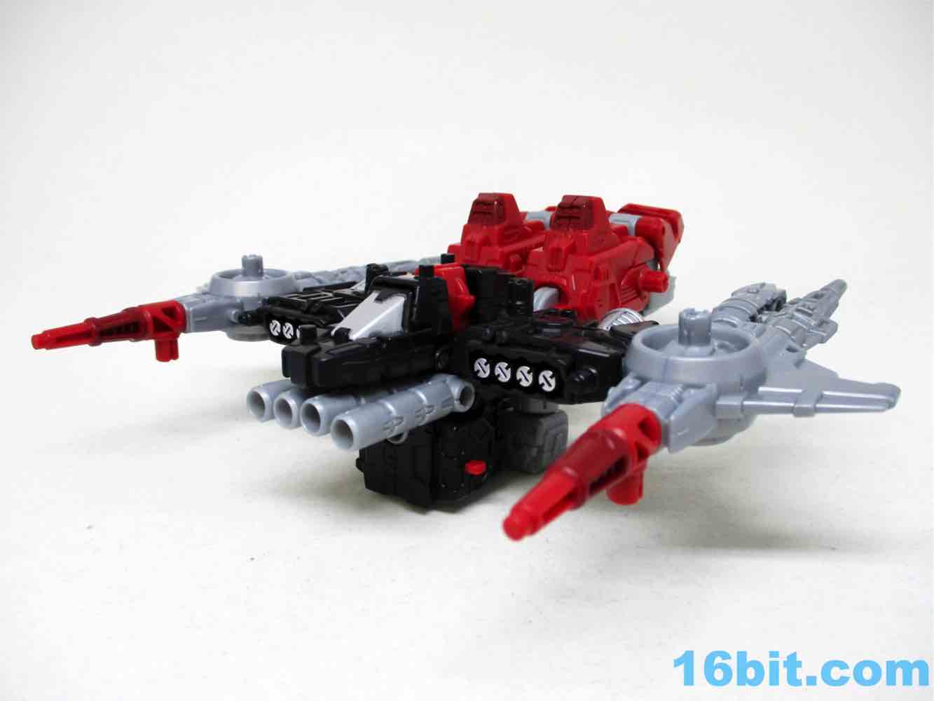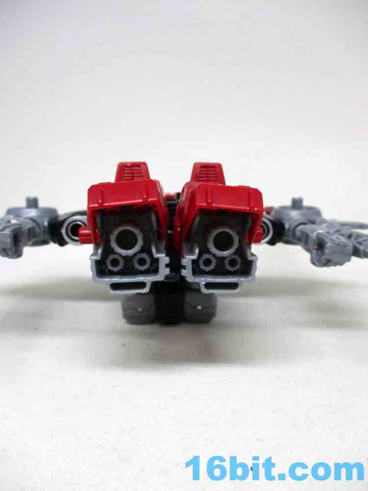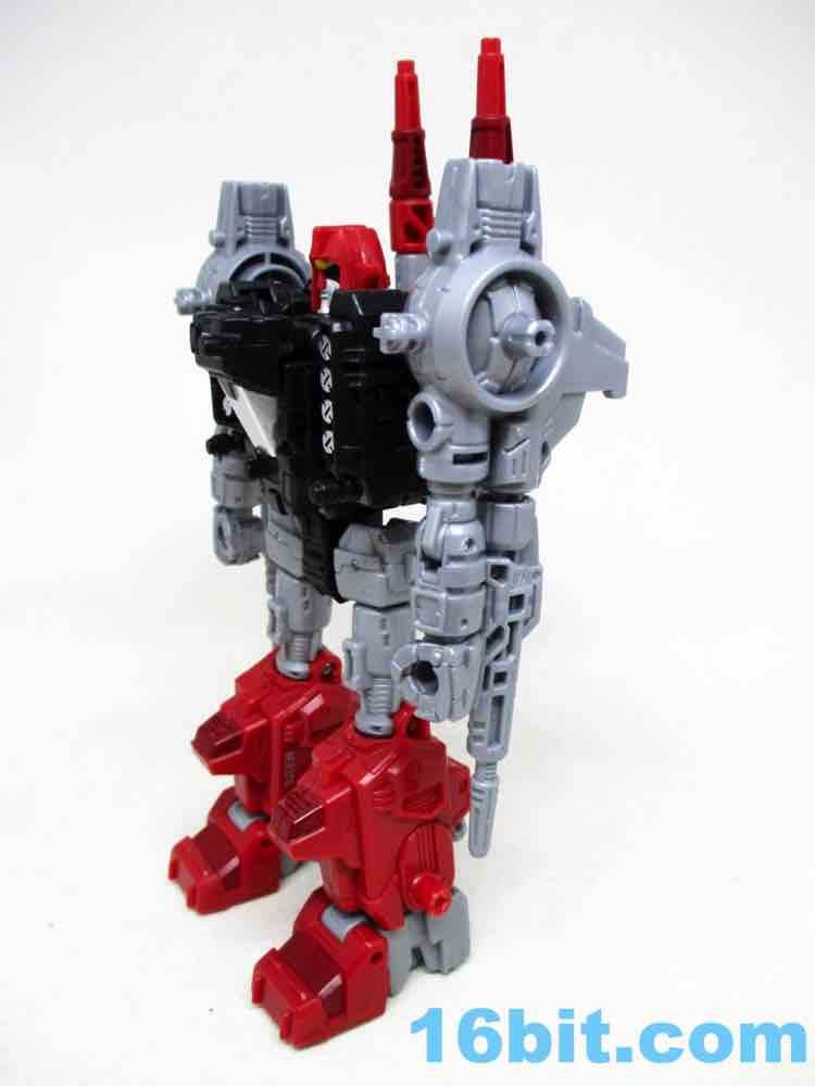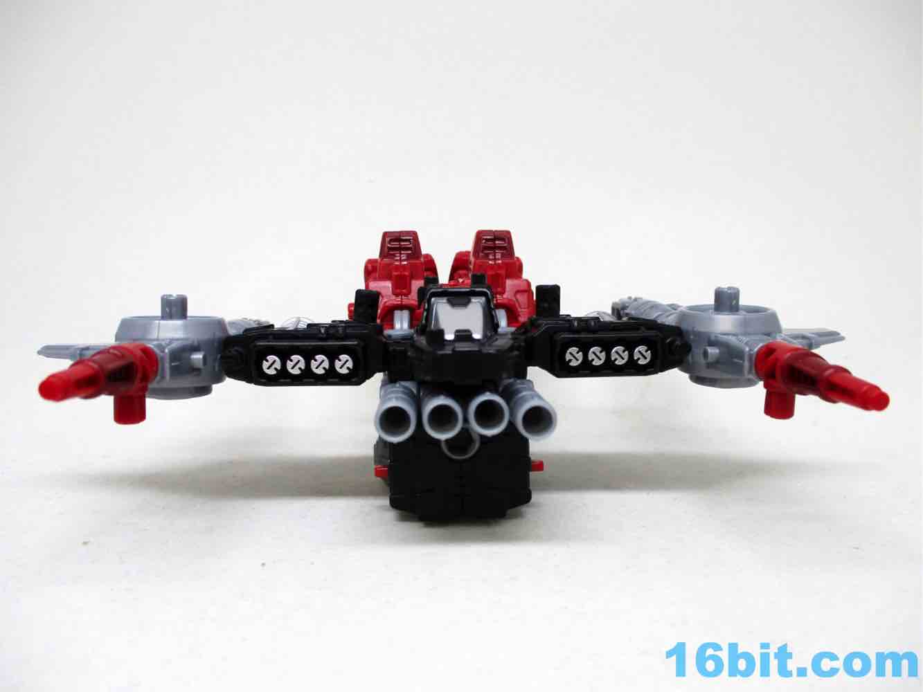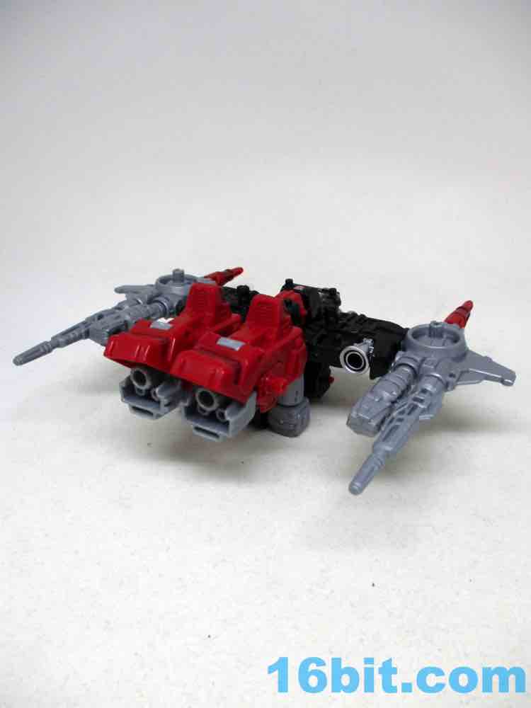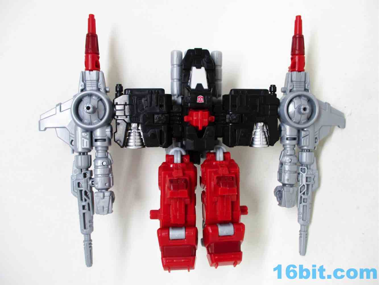 Transforming the toy involves some of the aforementioned dismemberment, with arms becoming wings and the torso being ripped in half in order to make the space ship mode. It's not as much of a proper transformation so much as a reconfiguration, which is a neat idea but one that could probably be executed in a fascinating way if that were more of the idea. That's true of all of this category - trying to remember exactly how to take it apart is kind of annoying, making them in between a proper transforming robot and a construction kit. It's not complicated with reference photos, but it does make it a bit harder to instinctively know if you're doing this properly.