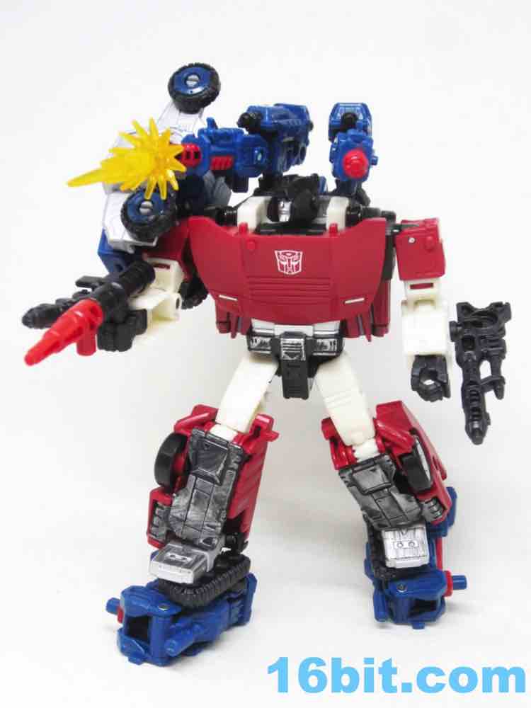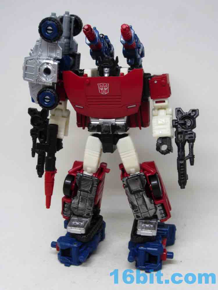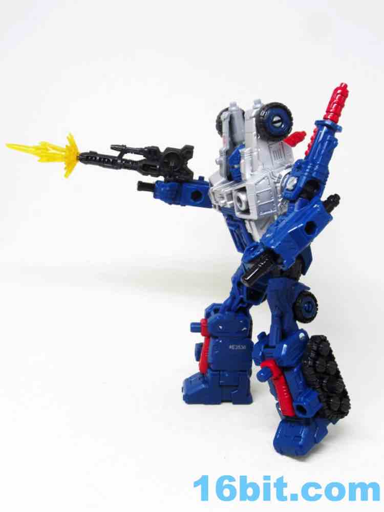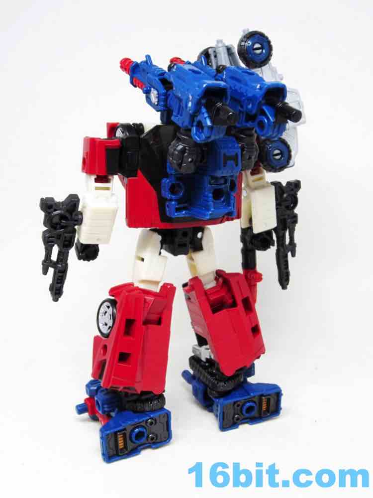 Transformation from robot to the combined vehicle mode is some of the least interesting we've ever seen at this scale or price point. Pop out the arms, plug them into the chest. Plug the guns into the shins. Rotate the robot head back. You're done. A few more twists and turns are needed to make the various armor configurations or the two mini-vehicles, but it's not exactly involved. In any sense, to get Hasbro's modes you would need to consult the instructions because it's kind of a "mode because I say it is" not unlike some of the more peculiar third modes of the late 1990s Beast era. It's not something your instincts would discover, necessarily.