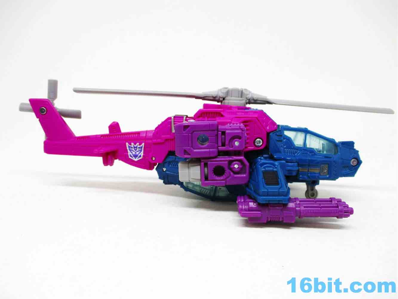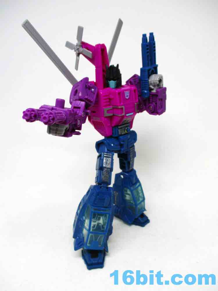 This was a tricky transformation - I had to pick up the instructions pretty quickly. The unusual feet resulted in numerous twists and turns, with one of the shins having to be tucked under the chopper body just-so. And it barely works, I had to massage it in place to make it fit right. The chest and back propeller require a pretty fascinating level of gymnastics for a deluxe toy, with this coming off as decades beyond the complexity you got out of Alpha Bravo (and Vortex and Blades) a few years ago. That was a simple toy - this is one that requires some patience. Kudos to the designers for coming up with a wildly different transformation, complete with a landing skid to boot.