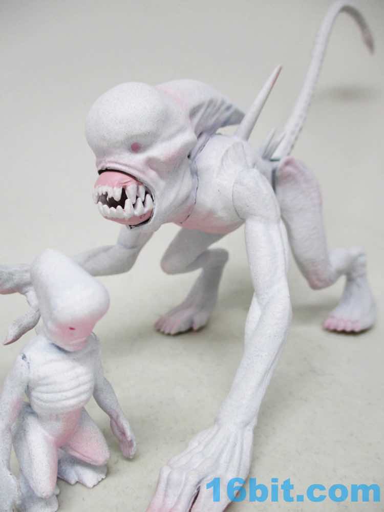 A very 1990s action figure accessory was the sidekick buddy figure - perhaps you remember Fish Stix, or Peter Puppy, or Nog. These little figures tended to have no articulation and be minimally decorated, so your Facehugger would be good but not amazing. NECA decided to do its Baby Neomorph with a lot of paint - the textured pale grey figure has pink highlights and strange red eyes. As I'm fairly sure the newborn bloodbursters lacked eyes, this is a weird change that's very much in line with 1990s action figures. It doesn't have to be completely accurate, it just has to be close. The figure has no articulation, but was made from a few parts fused together. Even moreso than its larger companion, this one is too nicely designed to pass for a 1990s release.