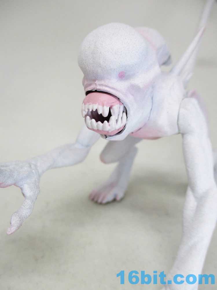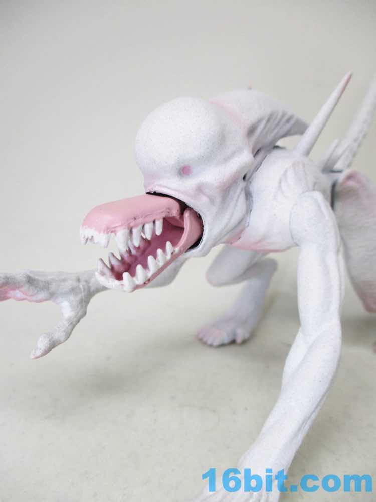 The figure is posed in a three-point stance, reminding me a little bit of the Bull, Panther, Wild Boar, Rhino, and Night Cougar Aliens. They're a little scrunched up, but not as much as this guy - they fit a lot of figure in a small space. Much like those older figures, you also get a weird tail and some nasty looking spikes on its back and feels like a less chunky version of the 1990s Xenomorph toys. The mechanism in the mouth feels a little fragile, but the figure itself seems like it could stand up to a little more abuse. It's a very good design.